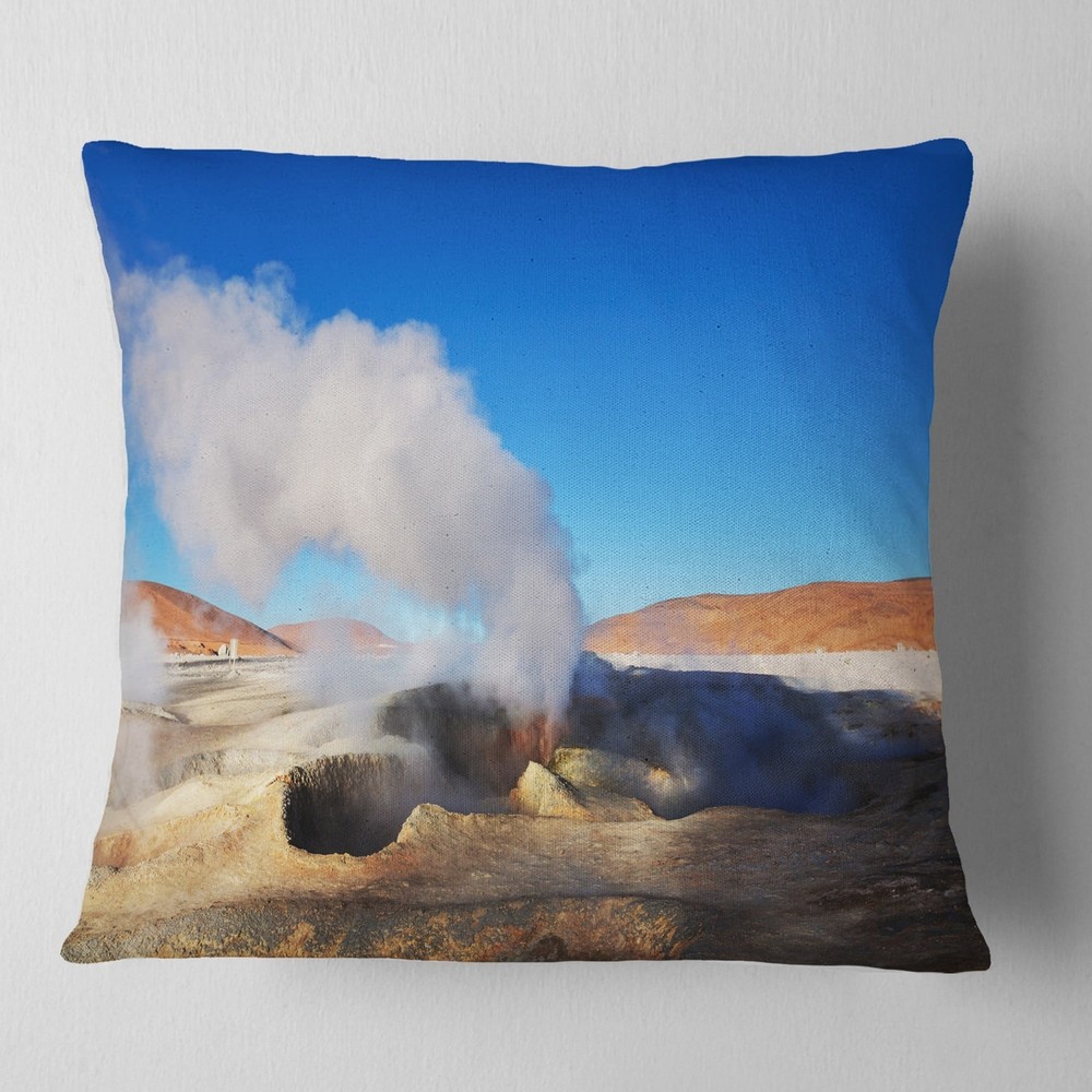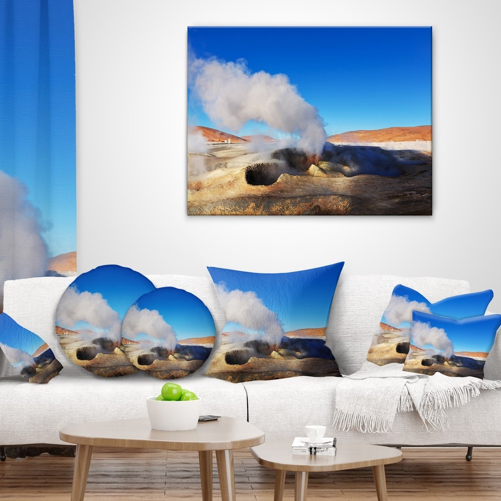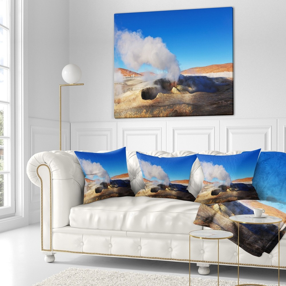 Decorative Throw Pillows for Couch Bed Sofa with Zip CoversAn easy, fun way to add a pop of color or bring new life to any room in your home or office is with these beautiful Landscape throw pillows. Dress up your bed, sofa or lounger with this decorative design art pillows. Perfect as Farmhouse bedroom décor, lounge décor Traditional living room décor. It adds a fun accent to any room. Throw pillows really do work wonders: they can transform any room from uninviting discomfort to warm and welcoming. And they really do go almost anywhere - arrange a couple on the couch or sofa, place one in your overstuffed chair for extra coziness, toss a couple on the bed and prop yourself up for a great read.These Landscapes pillow is printed using High Color Density Italian inks to create a vibrantly Free Shipping Over $49.99* Details Designart 'Geyser Sol De Manana Bolivia' Landscape Printed Throw Pillow Product Description: Decorative Throw Pillows for Couch Bed Sofa with Zip Covers An easy, fun way to add a pop of color or bring new life to any room in your home or office is with these beautiful Landscape throw pillows. Dress up your bed, sofa or lounger with this decorative design art pillows. Perfect as Farmhouse bedroom décor, lounge décor Traditional living room décor. It adds a fun accent to any room. Throw pillows really do work wondersthey can transform any room from uninviting discomfort to warm and welcoming. And they really do go almost anywhere - arrange a couple on the couch or sofa, place one in your overstuffed chair for extra coziness, toss a couple on the bed and prop yourself up for a great read. These Landscapes pillow is printed using High Color Density Italian inks to create a vibrantly colored, sharp artwork. Features: Perfect accent to any furniture piece Basic shapes with a modern graphic design twist Printed on 100% light weight polyester Cushion filled with 100% polyester fill Wrinkle resistant fabric Zip Closure so you can remove the pillow from its' cover Down-like comfort - Odorless 100% Hypoallergenic Machine Wash Cold Separately, Gently Cycle Only, No bleach, hang to dry Print on Demand with High Density Italian Ink Available in Several sizes Attribute :Farmhouse, Traditional, Fine Art Giclee Subject Landscapes, Country Charrm, photography