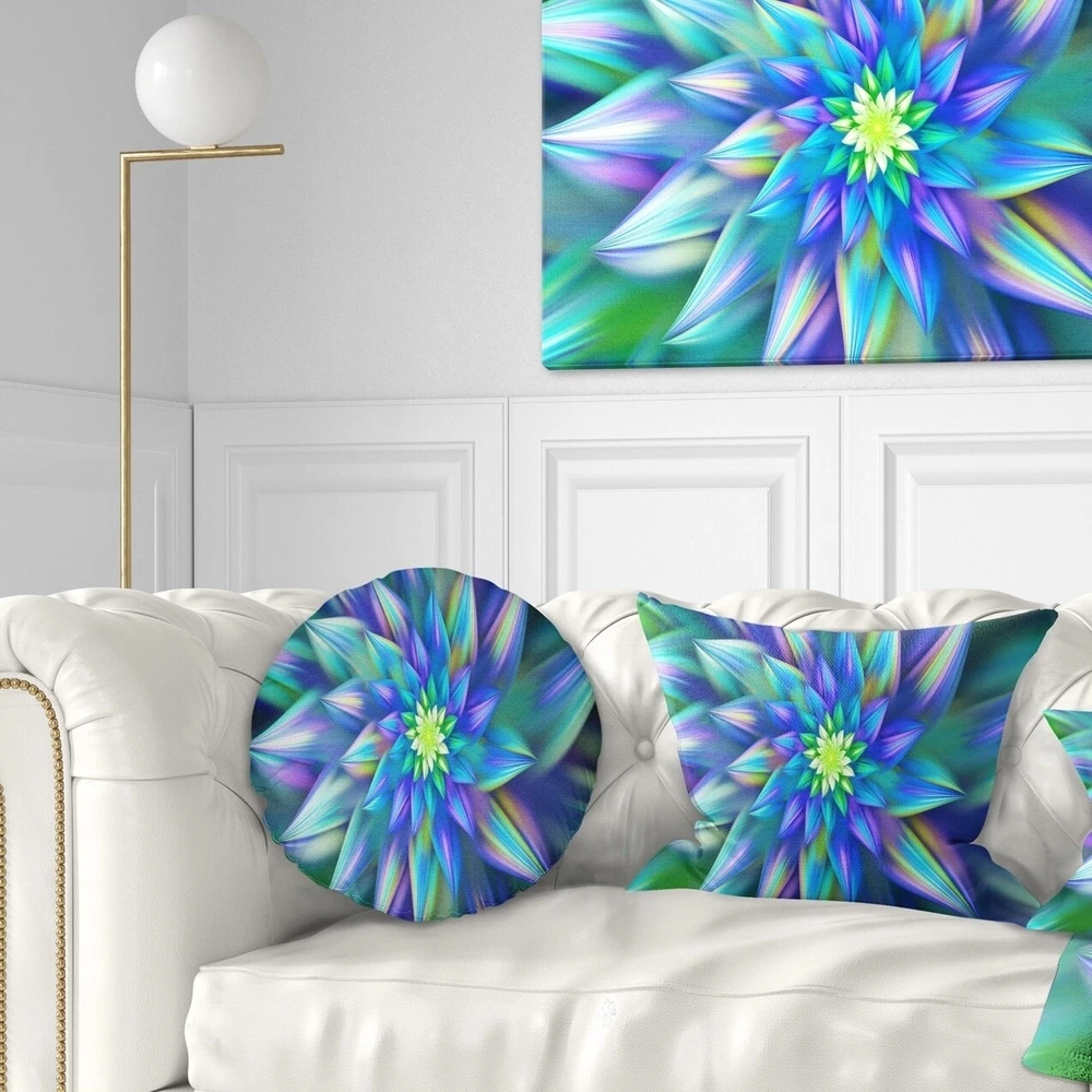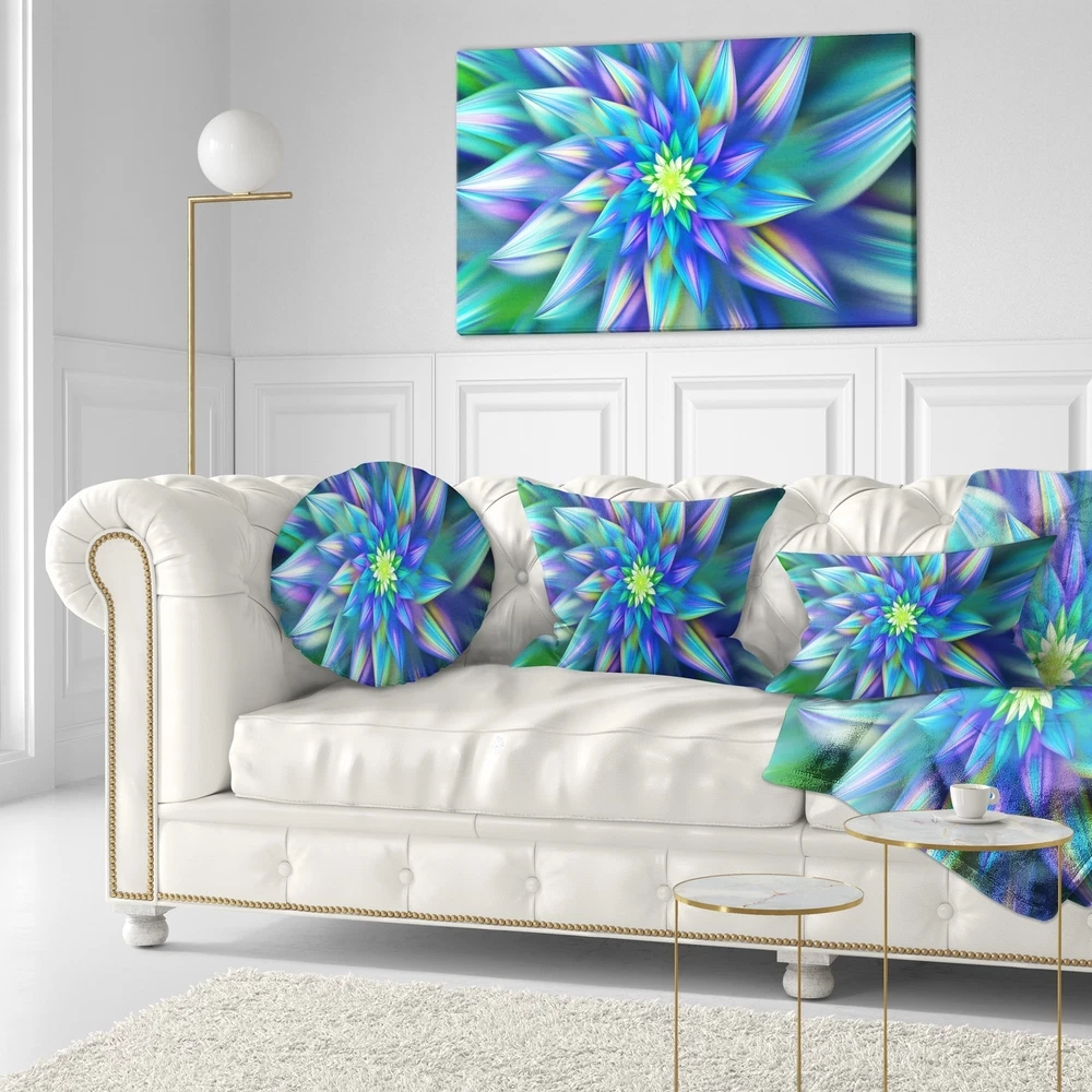 Decorative Throw Pillows for Couch Bed Sofa with Zip CoversAn easy, fun way to add a pop of color or bring new life to any room in your home or office is with these beautiful Floral throw pillows. Dress up your bed, sofa or lounger with this decorative design art pillows. Perfect as Farmhouse bedroom décor, lounge décor Traditional living room décor. It adds a fun accent to any room. Throw pillows really do work wonders: they can transform any room from uninviting discomfort to warm and welcoming. And they really do go almost anywhere - arrange a couple on the couch or sofa, place one in your overstuffed chair for extra coziness, toss a couple on the bed and prop yourself up for a great read.These Floral pillow is printed using High Color Density Italian inks to create a vibrantly colored, Free Shipping Over $49.99* Details Designart 'Huge Light Blue Fractal Flower' Floral Throw Pillow Product Description: Decorative Throw Pillows for Couch Bed Sofa with Zip Covers An easy, fun way to add a pop of color or bring new life to any room in your home or office is with these beautiful Floral throw pillows. Dress up your bed, sofa or lounger with this decorative design art pillows. Perfect as Farmhouse bedroom décor, lounge décor Traditional living room décor. It adds a fun accent to any room. Throw pillows really do work wondersthey can transform any room from uninviting discomfort to warm and welcoming. And they really do go almost anywhere - arrange a couple on the couch or sofa, place one in your overstuffed chair for extra coziness, toss a couple on the bed and prop yourself up for a great read. These Floral pillow is printed using High Color Density Italian inks to create a vibrantly colored, sharp artwork. Features: Perfect accent to any furniture piece Basic shapes with a modern graphic design twist Printed on 100% light weight polyester Cushion filled with 100% polyester fill Wrinkle resistant fabric Zip Closure so you can remove the pillow from its' cover Down-like comfort - Odorless 100% Hypoallergenic Machine Wash Cold Separately, Gently Cycle Only, No bleach, hang to dry Print on Demand with High Density Italian Ink Available in Several sizes Attribute :Farmhouse, Traditional, Modern Subject Floral, Landscapes, Country Charm