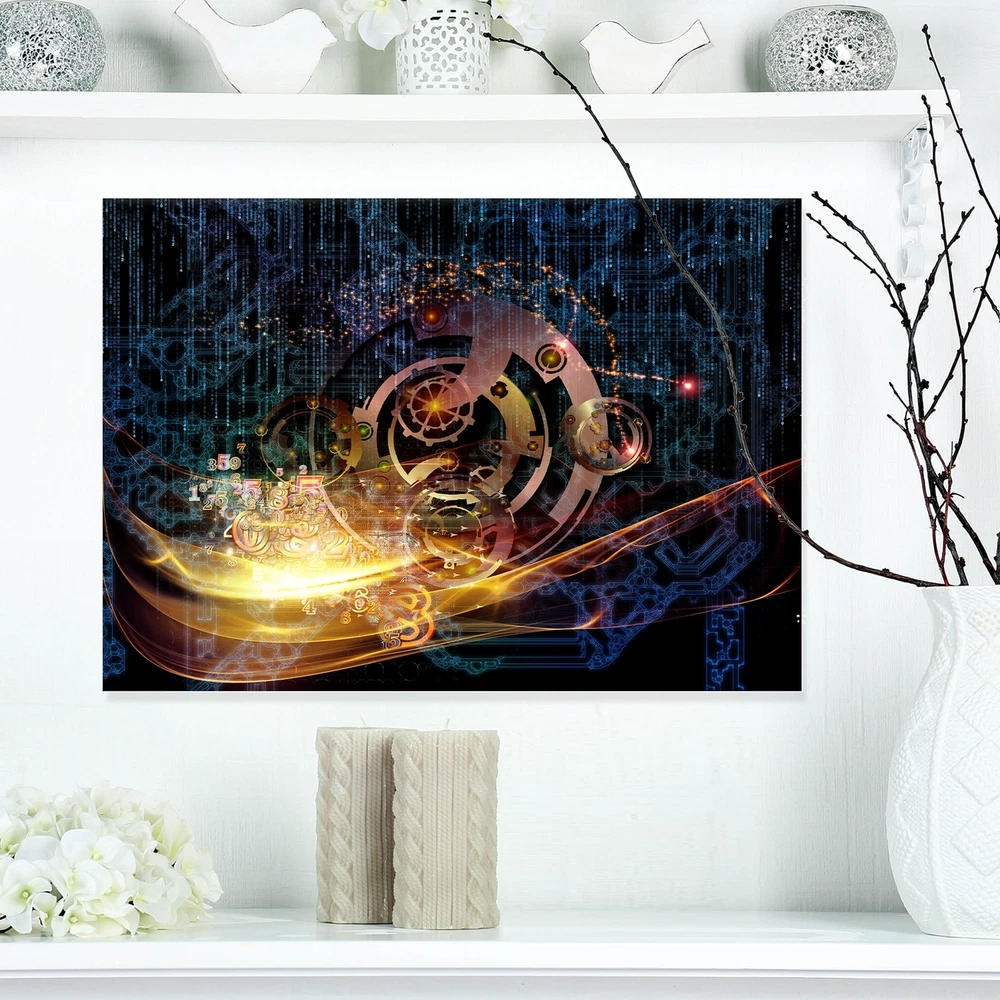 This Large Contemporary Canvas Art is printed using the highest quality fade resistant ink on canvas. Every one of our fine art giclee canvas prints is printed on premium quality cotton canvas, using the finest quality inks which will not fade over time. Each giclee print is stretched tightly over a 1 inch wood sub frame ensuring the canvas is taught and does not buckle. This canvas art print is gallery-wrapped (the design continues on the sides) , giving it a real art gallery feel. All of our canvas prints are carefully packaged with bubble wrap, fragile labeling and sturdy boxes to ensure a safe delivery. Every canvas print arrives ready to hang on the wall, with the hanging kits included. Orientation: Horizontal, Landscape, RectangleSubject: AbstractType: Fine Art Giclee, Fine Art, Free Shipping Over $49.99* Details Designart "Lights of Gears" Abstract Digital Art Canvas Print Product Description: This Large Contemporary Canvas Art is printed using the highest quality fade resistant ink on canvas. Every one of our fine art giclee canvas prints is printed on premium quality cotton canvas, using the finest quality inks which will not fade over time. Each giclee print is stretched tightly over a 1 inch wood sub frame ensuring the canvas is taught and does not buckle. This canvas art print is gallery-wrapped (the design continues on the sides) , giving it a real art gallery feel. All of our canvas prints are carefully packaged with bubble wrap, fragile labeling and sturdy boxes to ensure a safe delivery. Every canvas print arrives ready to hang on the wall, with the hanging kits included. OrientationHorizontal, Landscape, Rectangle SubjectAbstract TypeFine Art Giclee, Fine Art, Canvas Art StyleModern, Abstract, Framed Art FramedFramed ArtistUnknown SizeMedium, Large, Small Factory sealed boxes cannot be returned if opened.