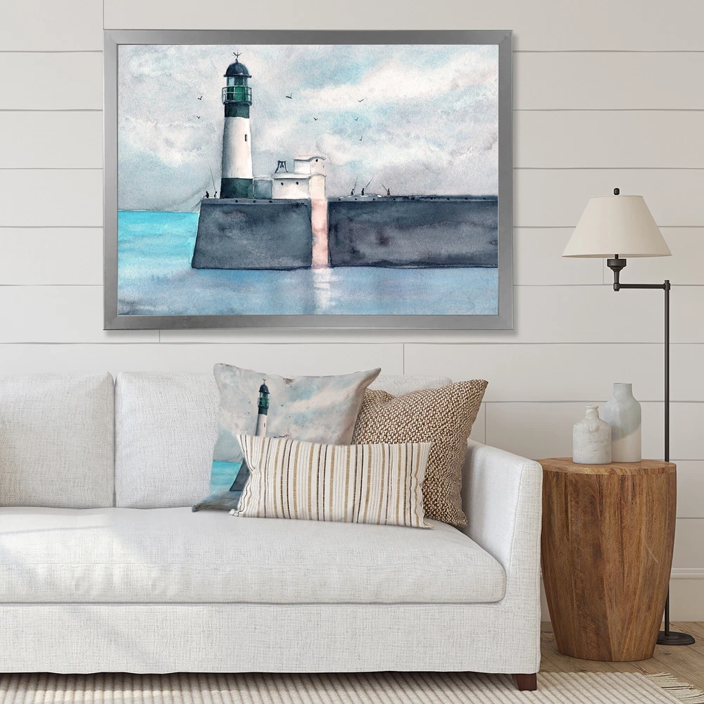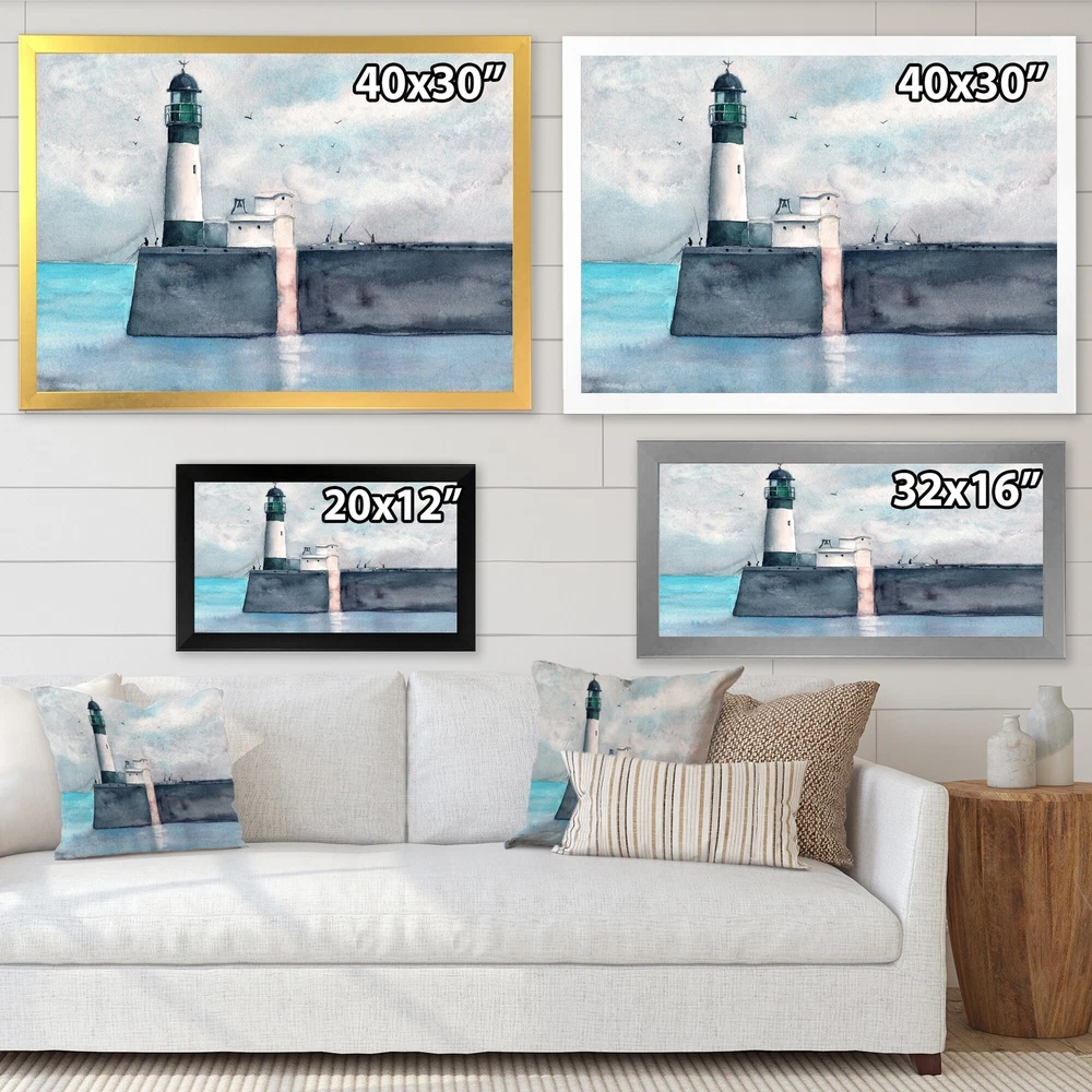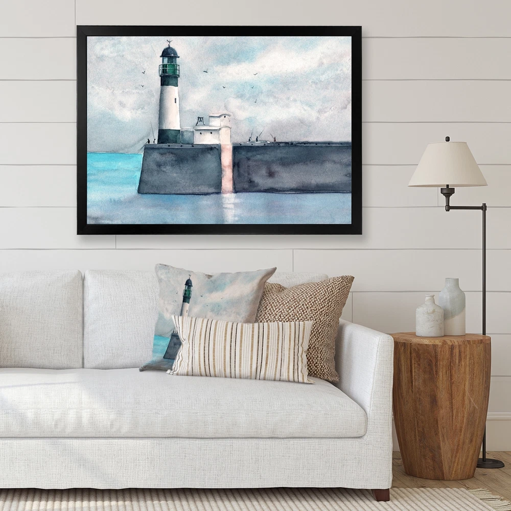 This beautiful Long Pier With A Lighthouse Framed wall Art is printed using the highest quality fade resistant ink on canvas. Every one of our Framed Giclee Prints is printed on premium quality canvas, using the finest quality inks which will not fade over time and then mounted and framed on a 1.5 inch wide frame.This framed art print is available in many different color frames. All of our framed art prints are carefully packaged with corner protectors, fragile labeling, and sturdy boxes to ensure a safe delivery. Every framed art arrives ready to hang on the wall, with the hanging kit included.Features:- Style : Nautical & Coastal- Subject : Landscapes- Color : Black- Premium quality cotton canvas mounted.- Available in several frame colors. - Arrives with instructions and hanging kit Free Shipping Over $49.99* Details Designart "Long Pier With A Lighthouse" Nautical & Coastal Framed Art Print Product Description: This beautiful Long Pier With A Lighthouse Framed wall Art is printed using the highest quality fade resistant ink on canvas. Every one of our Framed Giclee Prints is printed on premium quality canvas, using the finest quality inks which will not fade over time and then mounted and framed on a 1.5 inch wide frame. This framed art print is available in many different color frames. All of our framed art prints are carefully packaged with corner protectors, fragile labeling, and sturdy boxes to ensure a safe delivery. Every framed art arrives ready to hang on the wall, with the hanging kit included. Features: - Style Nautical & Coastal - Subject Landscapes - Color Black - Premium quality cotton canvas mounted. - Available in several frame colors. - Arrives with instructions and hanging kit
