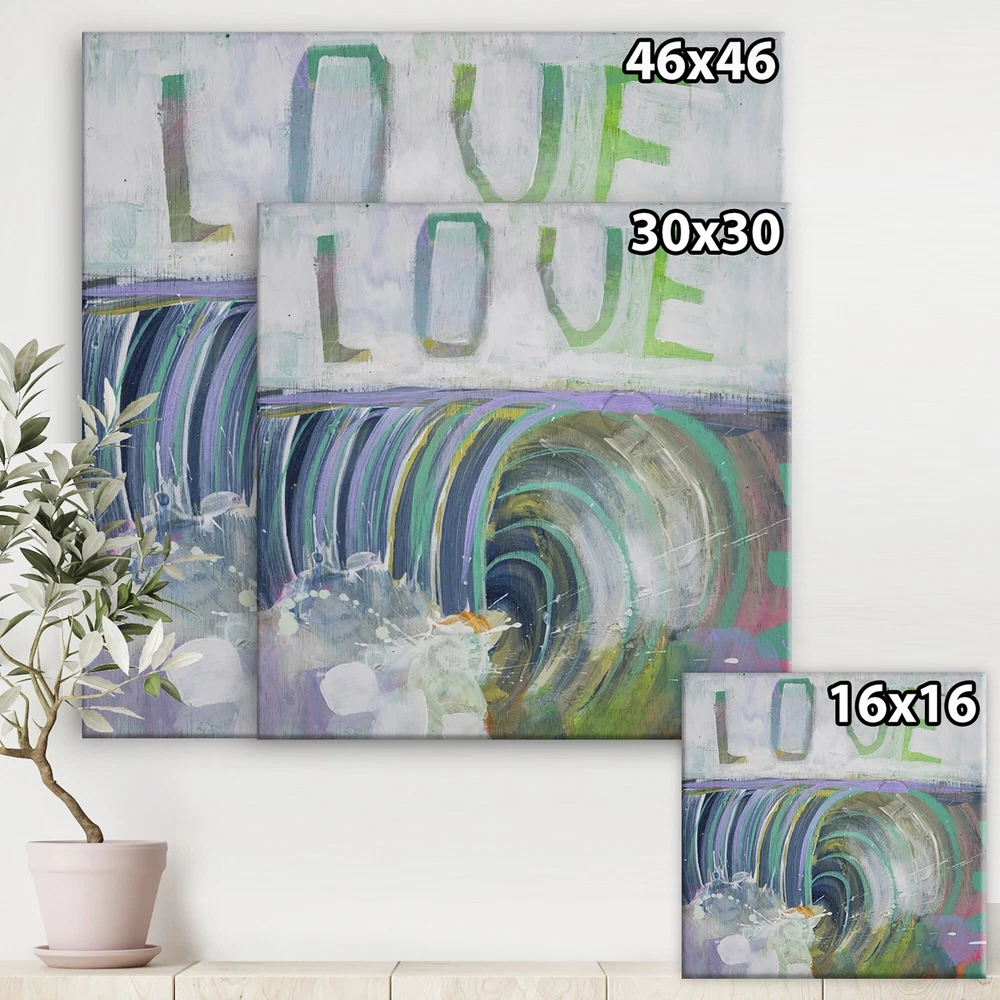 Designart "Love Wave Watercolor" Nautical & Coastal Canvas