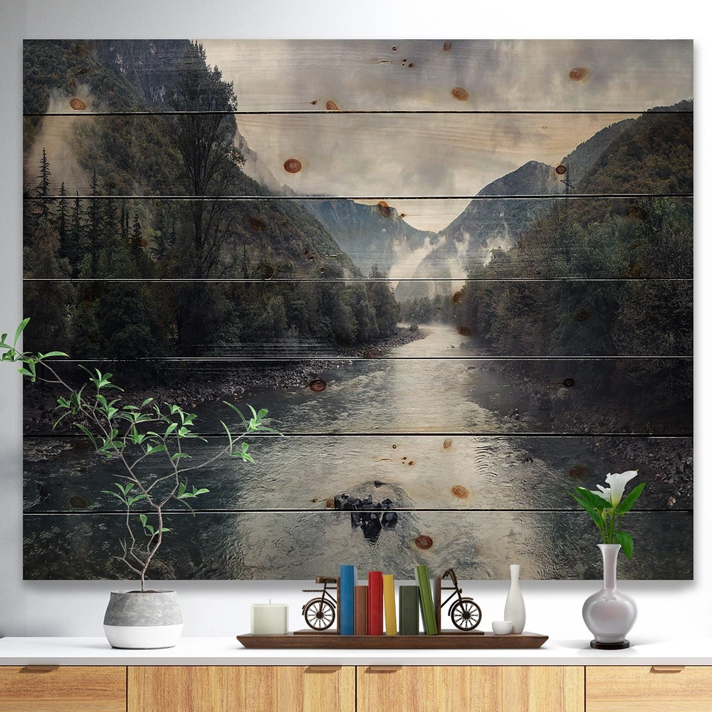 Alas, a modern take on wood wall art. Once typically a wall art piece found only in rustic or farmhouse style decor settings, this Sea & Shore wood wall art will easily fit into even the most contemporary of designs.Using the highest quality 6 Color Canon UV Ink, this Nautical & Coastal wood wall art incorporates several aspects of fine design into one stunning piece. With its slightly visible wood grain appearing through the colors and sleekly finished edges, it is a wonderful choice for any room in your home or office, being it a traditional or modern space. As each piece of wood has natural grain differences from the next, each of these wood wall arts is a truly unique addition to your space.Each Wood wall art is 100% handmade in Canada on Natural pine wood, using the highest quality Free Shipping Over $49.99* Details Designart 'Mountain River with Fog and Rain' Modern Seascape Print on Natural Product Description: Alas, a modern take on wood wall art. Once typically a wall art piece found only in rustic or farmhouse style decor settings, this Sea & Shore wood wall art will easily fit into even the most contemporary of designs. Using the highest quality 6 Color Canon UV Ink, this Nautical & Coastal wood wall art incorporates several aspects of fine design into one stunning piece. With its slightly visible wood grain appearing through the colors and sleekly finished edges, it is a wonderful choice for any room in your home or office, being it a traditional or modern space. As each piece of wood has natural grain differences from the next, each of these wood wall arts is a truly unique addition to your space. Each Wood wall art is 100% handmade in Canada on Natural pine wood, using the highest quality ink which will not fade over time. Available in 3 Differents sizes 20x15, 40x30, 46x36 - OrientationHorizontal - SubjectSea & Shore TypeWood Wall Art, Fine Art, Wood Fine Art, Print on Plaque - Arrives ready to hang on the wall with hanging kit included - MaterialMade with 100% natural pine wood - StyleNautical & Coastal- Number of Pieces1 - SizeMedium, Large, Small - ColorGreen