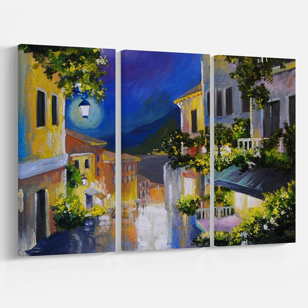 This beautiful Landscape Canvas Art is printed using the highest quality fade resistant ink on canvas. Every one of our fine art giclee canvas prints is printed on premium quality cotton canvas, using the finest quality inks which will not fade over time. Each giclee print is stretched tightly over a 1 inch wood sub frame ensuring the canvas is taught and does not buckle. This canvas art print is gallery-wrapped (the design continues on the sides) , giving it a real art gallery feel. All of our canvas prints are carefully packaged with plastic protection, fragile labeling and sturdy boxes to ensure a safe delivery. Every canvas print arrives ready to hang on the wall, with the hanging kits included.- Style : Nautical & Coastal- Subject : Sea & Shore, Nautical- Color : Blue- This canvas Free Shipping Over $49.99* Details Designart "Night City near Sea" Landscape Canvas Art Print - 36x28 - 3 Panels Product Description: This beautiful Landscape Canvas Art is printed using the highest quality fade resistant ink on canvas. Every one of our fine art giclee canvas prints is printed on premium quality cotton canvas, using the finest quality inks which will not fade over time. Each giclee print is stretched tightly over a 1 inch wood sub frame ensuring the canvas is taught and does not buckle. This canvas art print is gallery-wrapped (the design continues on the sides) , giving it a real art gallery feel. All of our canvas prints are carefully packaged with plastic protection, fragile labeling and sturdy boxes to ensure a safe delivery. Every canvas print arrives ready to hang on the wall, with the hanging kits included. - Style Nautical & Coastal - Subject Sea & Shore, Nautical - Color Blue - This canvas giclee print is gallery-wrapped (the design continues on the sides) , giving it a real art gallery feel. - Premium quality cotton canvas. - Arrives ready to hang on the wall - Easy to Hang
