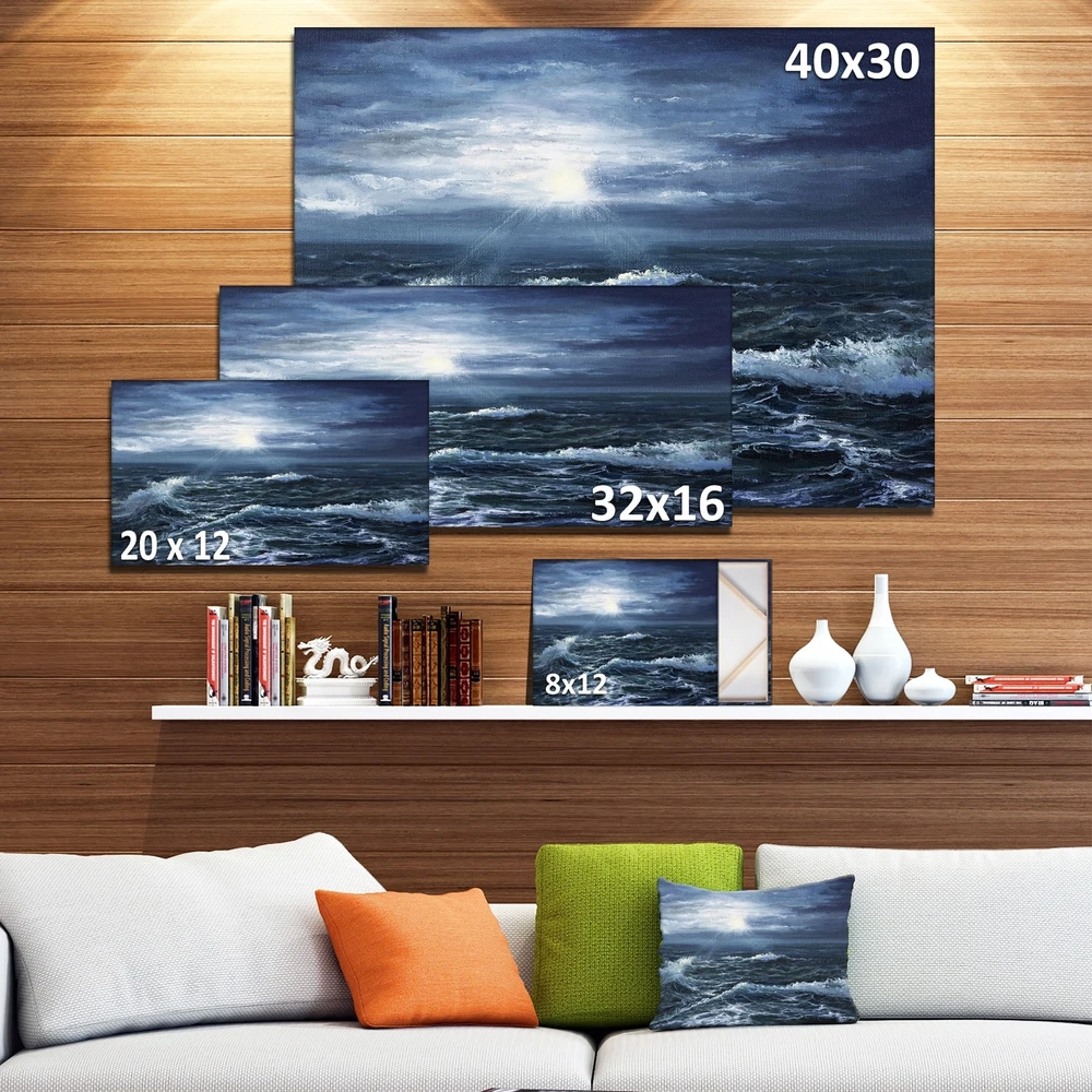 This beautiful art is printed using the highest quality fade resistant ink on canvas. Every one of our fine art giclee canvas prints is printed on premium quality cotton canvas, using the finest quality inks which will not fade over time. Each giclee print is stretched tightly over a 1 inch wood sub frame ensuring the canvas is taught and does not buckle. This canvas giclee print is gallery-wrapped (the design continues on the sides) , giving it a real art gallery feel. Premium quality cotton canvas. Arrives ready to hang on the wall Easy to Hang Free Shipping Over $49.99* Details Designart "Ocean Waves in Dartk Sky" Nautical Print on Wrapped Canvas Product Description: This beautiful art is printed using the highest quality fade resistant ink on canvas. Every one of our fine art giclee canvas prints is printed on premium quality cotton canvas, using the finest quality inks which will not fade over time. Each giclee print is stretched tightly over a 1 inch wood sub frame ensuring the canvas is taught and does not buckle. This canvas giclee print is gallery-wrapped (the design continues on the sides) , giving it a real art gallery feel. Premium quality cotton canvas. Arrives ready to hang on the wall Easy to Hang