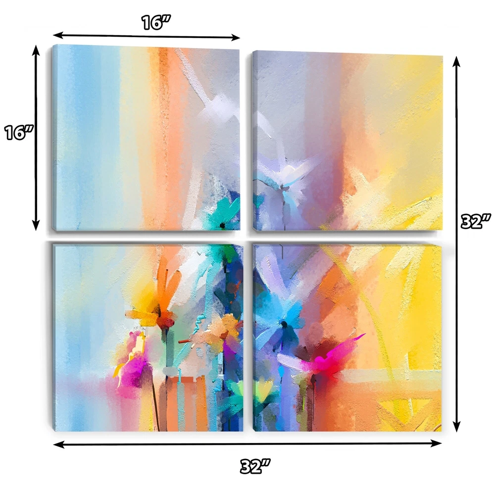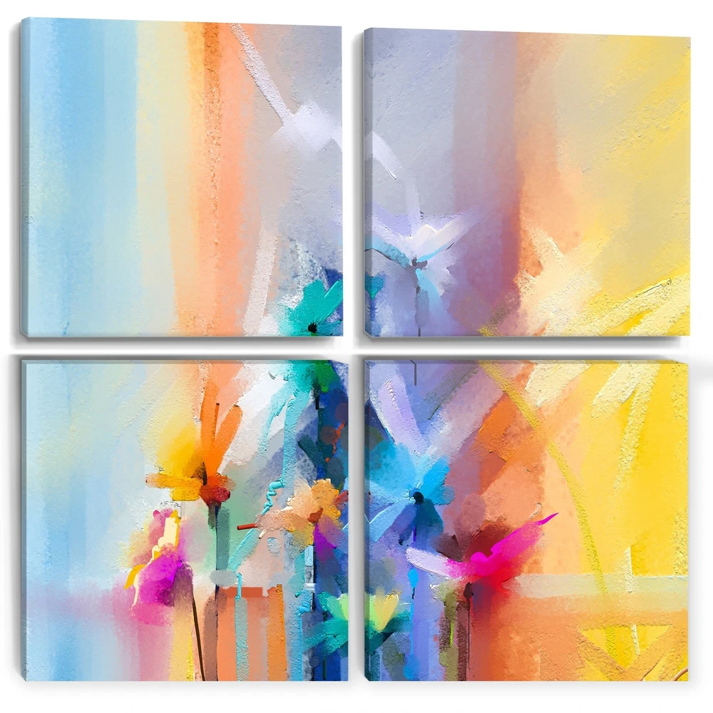 This beautiful Painted Pastel Flowers In Yellow Red And Blue II Multipanels canvas art is printed using the highest quality fade-resistant ink on canvas. Every one of our fine art giclee canvas prints is printed on premium quality cotton canvas, using the finest quality inks which will not fade over time. Each giclee print is stretched tightly over a 1-inch wood subframe ensuring the canvas is taught and does not buckle. This canvas art print is gallery-wrapped (the design continues on the sides), giving it a real art gallery feel. All of our canvas prints are carefully packaged with plastic protection, fragile labeling, and sturdy boxes to ensure safe delivery. Every canvas print arrives ready to hang on the wall, with the hanging kits included.- Style : Modern & Contemporary- Subject : Free Shipping Over $49.99* Details Designart "Painted Pastel Flowers In Yellow Red And Blue II" Floral Canvas Wall Product Description: This beautiful Painted Pastel Flowers In Yellow Red And Blue II Multipanels canvas art is printed using the highest quality fade-resistant ink on canvas. Every one of our fine art giclee canvas prints is printed on premium quality cotton canvas, using the finest quality inks which will not fade over time. Each giclee print is stretched tightly over a 1-inch wood subframe ensuring the canvas is taught and does not buckle. This canvas art print is gallery-wrapped (the design continues on the sides), giving it a real art gallery feel. All of our canvas prints are carefully packaged with plastic protection, fragile labeling, and sturdy boxes to ensure safe delivery. Every canvas print arrives ready to hang on the wall, with the hanging kits included. - Style Modern & Contemporary - Subject Abstract - Color Yellow - This canvas giclee print is gallery-wrapped (the design continues on the sides) , giving it a real art gallery feel. - Premium quality cotton canvas. - Arrives ready to hang on the wall - Easy to Hang