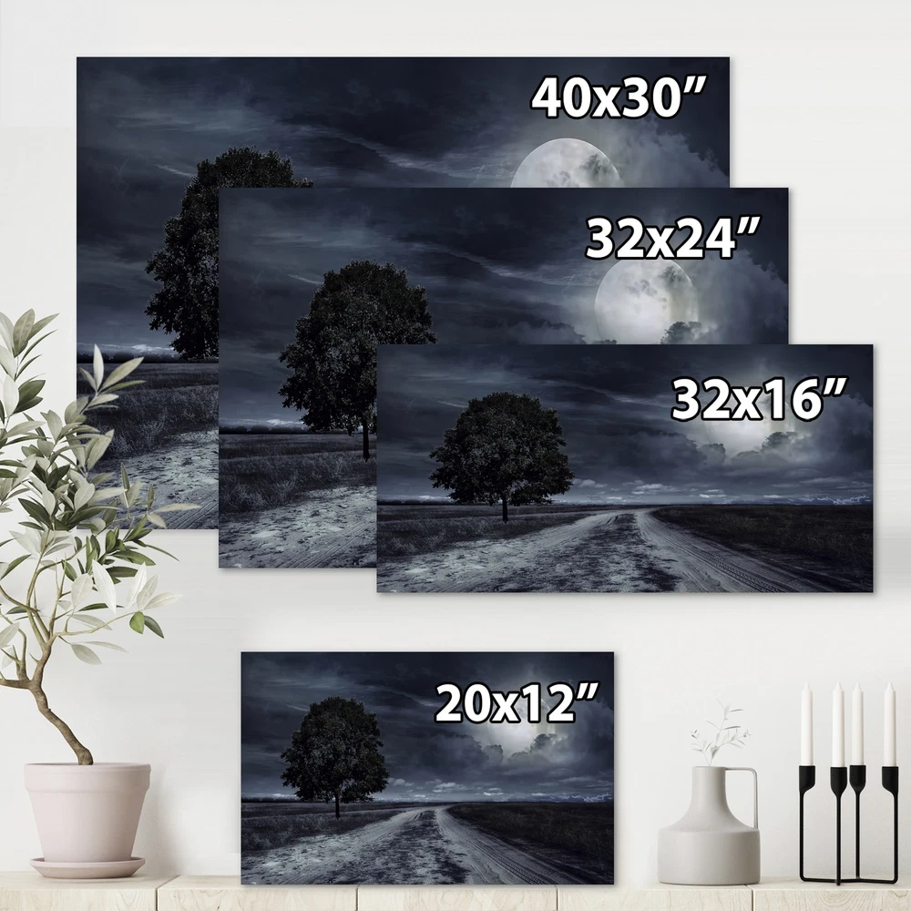 This beautiful Nautical & Coastal Canvas Art is printed using the highest quality fade resistant ink on canvas. Every one of our fine art giclee canvas prints is printed on premium quality cotton canvas, using the finest quality inks which will not fade over time. Each giclee print is stretched tightly over a 1 inch wood sub frame for small size prints or a 1.5 inch wood sub frame for large size prints (40x30 36x36 ...) ensuring the canvas is taught and does not buckle. This canvas art print is gallery-wrapped (the design continues on the sides) , giving it a real art gallery feel. All of our canvas prints are carefully packaged with plastic protection, fragile labeling and sturdy boxes to ensure a safe delivery. Every canvas print arrives ready to hang on the wall, with the hanging kits Free Shipping Over $49.99* Details Designart "Paved Road Under A Full Moon" Nautical & Coastal Canvas Wall Art Product Description: This beautiful Nautical & Coastal Canvas Art is printed using the highest quality fade resistant ink on canvas. Every one of our fine art giclee canvas prints is printed on premium quality cotton canvas, using the finest quality inks which will not fade over time. Each giclee print is stretched tightly over a 1 inch wood sub frame for small size prints or a 1.5 inch wood sub frame for large size prints (40x30 36x36 ...) ensuring the canvas is taught and does not buckle. This canvas art print is gallery-wrapped (the design continues on the sides) , giving it a real art gallery feel. All of our canvas prints are carefully packaged with plastic protection, fragile labeling and sturdy boxes to ensure a safe delivery. Every canvas print arrives ready to hang on the wall, with the hanging kits included. - Style Nautical & Coastal,Country - Subject Landscapes, Photography - Color Black,White - This canvas giclee print is gallery-wrapped (the design continues on the sides) , giving it a real art gallery feel. - Premium quality cotton canvas. - Arrives ready to hang on the wall - Easy to Hang