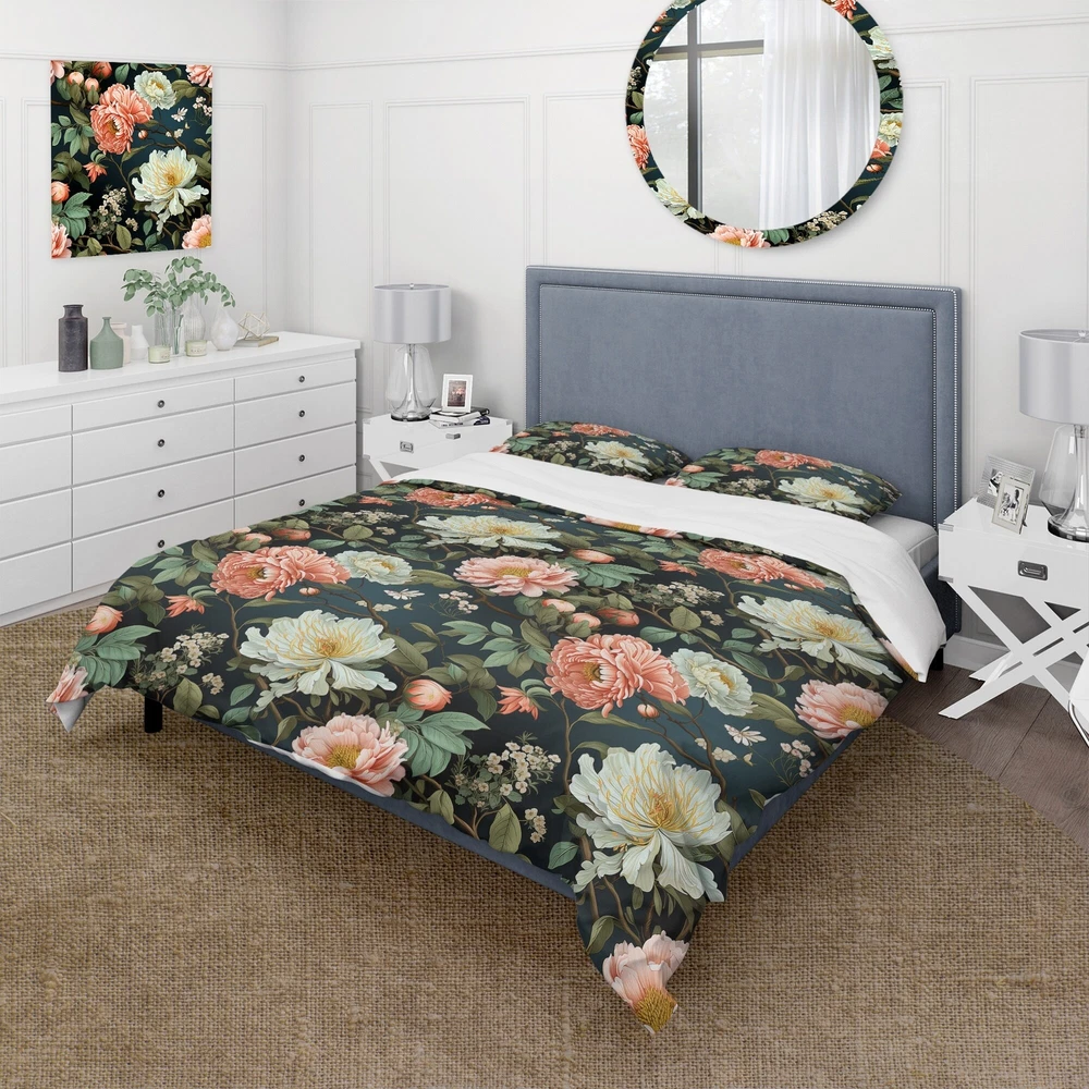 There is just nothing better than a beautiful, inviting comfortable bed after a long day. This Floral bed set is created using the richest colors stemming from high density Italian ink and the softest fabrics making it the perfect way to spruce up your bedroom, while keeping it ultra-comfortable. This luxurious Pink And Green Shades Garden Delight bed design is made with 100% microfiber polyester, making it ultra-soft to ensure you sleep comfortably all night long. This Cottage set includes 1 Bed Cover and 2 Shams and is available in twin, queen and king sizes.This Bedding Set is easily integrated into your already decorated space.What's Included? - Duvet Cover - Shams - Pillow Cases not included but can be buy separately - Comforter Insert NOT INCLUDEDFeatures - Free Shipping Over $49.99* Details Designart "Pink And Green Shades Garden Delight " Green Cottage Bedding Set With Product Description: There is just nothing better than a beautiful, inviting comfortable bed after a long day. This Floral bed set is created using the richest colors stemming from high density Italian ink and the softest fabrics making it the perfect way to spruce up your bedroom, while keeping it ultra-comfortable. This luxurious Pink And Green Shades Garden Delight bed design is made with 100% microfiber polyester, making it ultra-soft to ensure you sleep comfortably all night long. This Cottage set includes 1 Bed Cover and 2 Shams and is available in twin, queen and king sizes. This Bedding Set is easily integrated into your already decorated space. What's Included? - Duvet Cover - Shams - Pillow Cases not included but can be buy separately - Comforter Insert NOT INCLUDED Features - Printed using High Density Italian Ink making the colors extra vibrant. - Made from ultra-soft, lightweight 100% microfiber polyester. Wrinkle resistant fabric. Down-like comfort, odorless. - The Cottage bed set includes one bed cover and two standard pillow shams to create a complete and stylish look. - The elegant and soft colors are both trendy and fun to brighten and update your bedroom. - Made in Canada - Decorative Wall Art and throw pillows to match this set are available but sold separately. - Actual comforter inserts and pillow inserts are not included. This set includes the two pillow shams and comforter cover only. King Dimensions: - 1 Duvet Cover104 inches wide x 88 inches long - 2 King Shams20 inches wide x 36 inches long Queen Dimensions: - 1 Duvet Cover88 inches wide x 88 inches long - 2 Standard Shams16 inches wide x 26 inches long Twin Dimensions: - 1 Duvet Cover68 inches wide x 88 inches long - 1 Standard Sham16 inches wide x 26 inches long Product Details - MaterialPolyester. - PatternFloral - ColorPink; Green - StyleCottage; traditional - ReversibleNo Directions: Fabric Care InstructionsMachine wash on cold gentle cycle. Wash separately on first wash. Use only non- chlorine bleach when needed. Tumble dry low. Remove promptly.