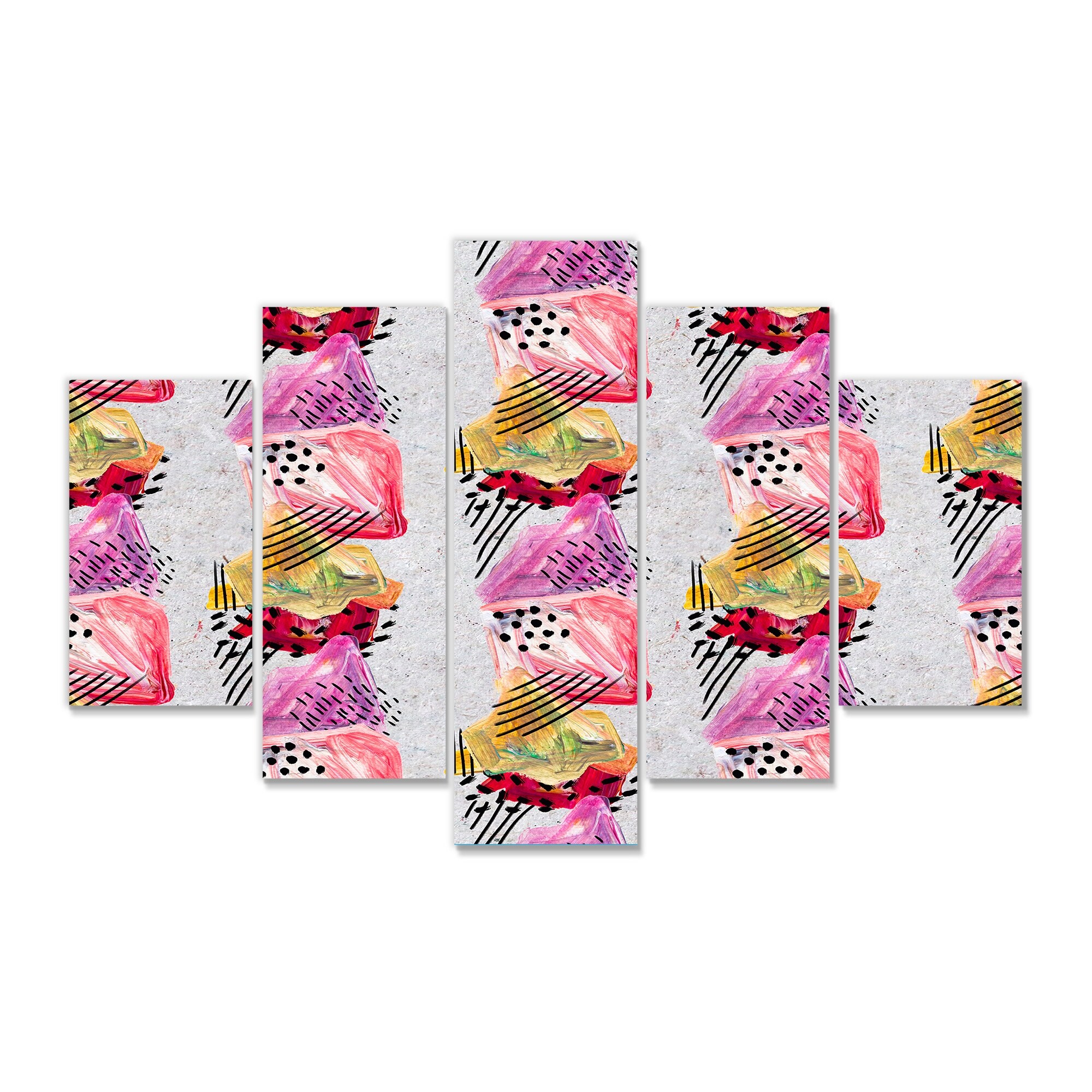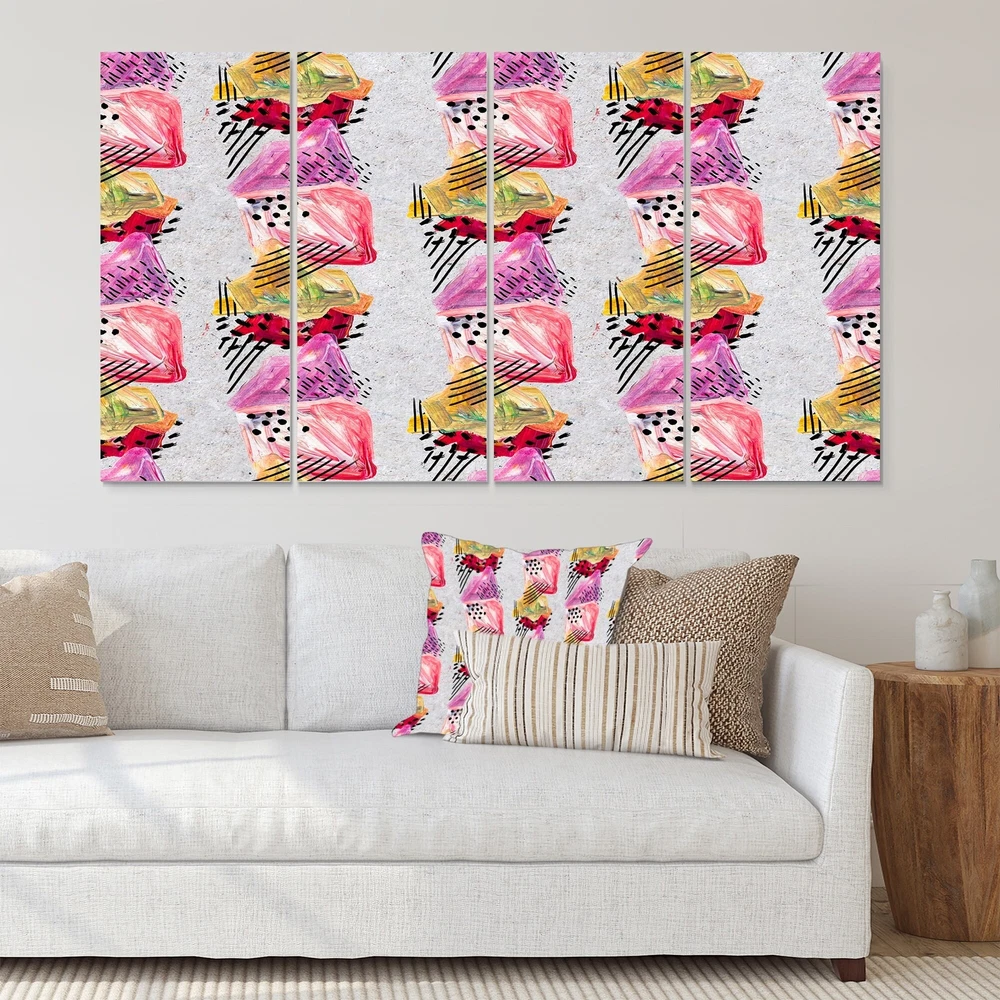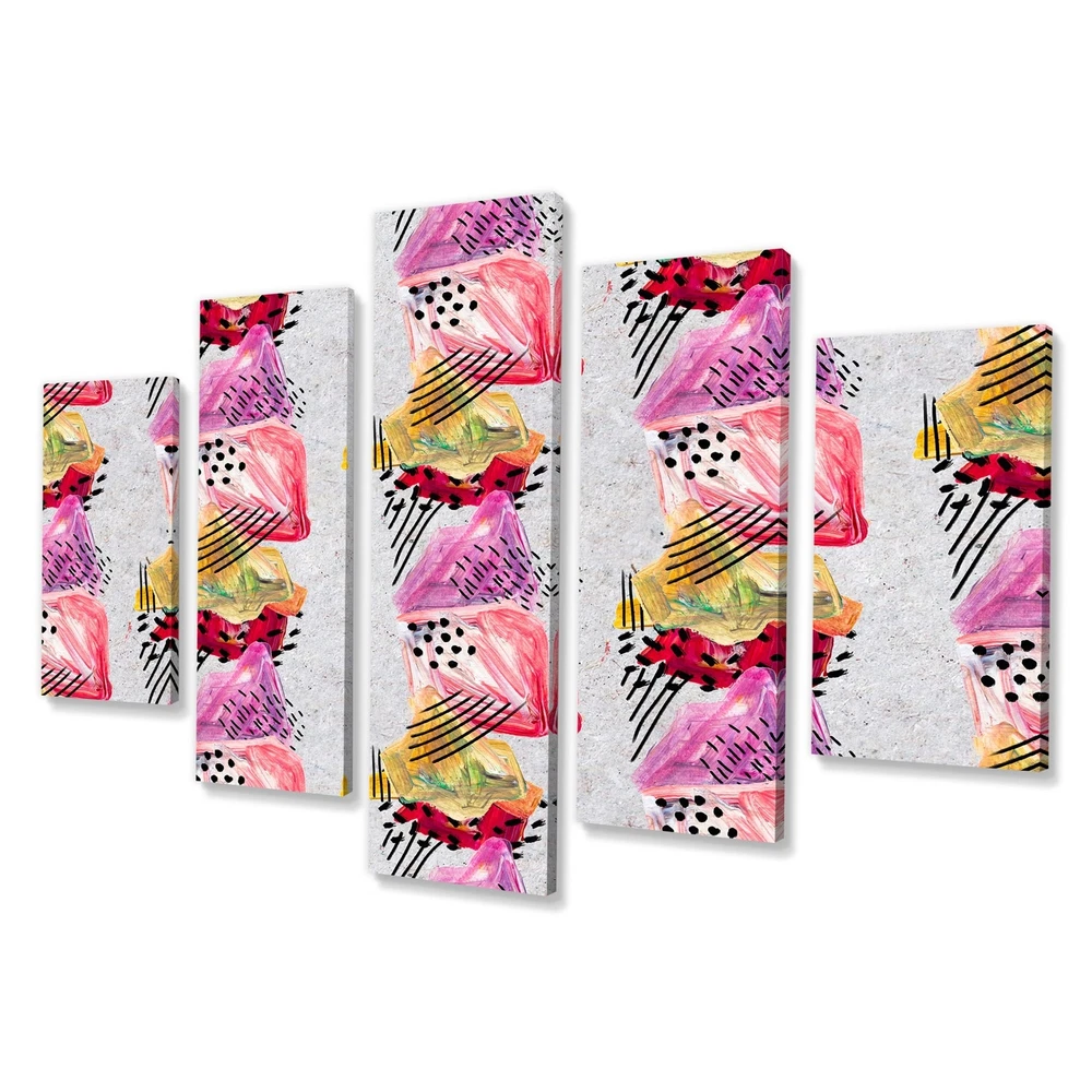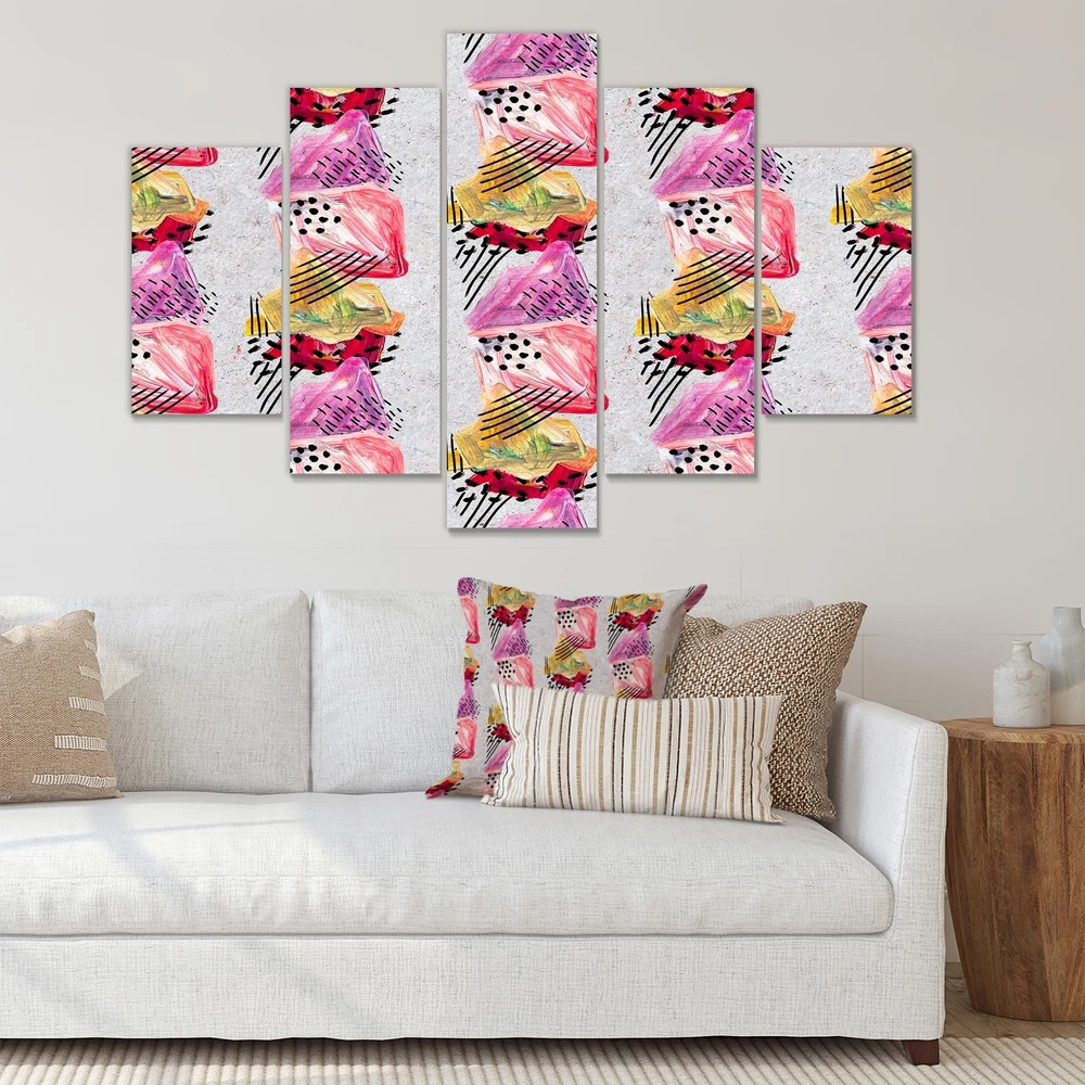 This beautiful Pink And Red Paint Strokes Multipanels canvas art is printed using the highest quality fade-resistant ink on canvas. Every one of our fine art giclee canvas prints is printed on premium quality cotton canvas, using the finest quality inks which will not fade over time. Each giclee print is stretched tightly over a 1-inch wood subframe ensuring the canvas is taught and does not buckle. This canvas art print is gallery-wrapped (the design continues on the sides), giving it a real art gallery feel. All of our canvas prints are carefully packaged with plastic protection, fragile labeling, and sturdy boxes to ensure safe delivery. Every canvas print arrives ready to hang on the wall, with the hanging kits included.- Style : Modern & Contemporary- Subject : Abstract, Geometric- Free Shipping Over $49.99* Details Designart "Pink And Red Paint Strokes" Modern Canvas Wall Art Print - 60x32 - 5 Product Description: This beautiful Pink And Red Paint Strokes Multipanels canvas art is printed using the highest quality fade-resistant ink on canvas. Every one of our fine art giclee canvas prints is printed on premium quality cotton canvas, using the finest quality inks which will not fade over time. Each giclee print is stretched tightly over a 1-inch wood subframe ensuring the canvas is taught and does not buckle. This canvas art print is gallery-wrapped (the design continues on the sides), giving it a real art gallery feel. All of our canvas prints are carefully packaged with plastic protection, fragile labeling, and sturdy boxes to ensure safe delivery. Every canvas print arrives ready to hang on the wall, with the hanging kits included. - Style Modern & Contemporary - Subject Abstract, Geometric - Color Pink - This canvas giclee print is gallery-wrapped (the design continues on the sides) , giving it a real art gallery feel. - Premium quality cotton canvas. - Arrives ready to hang on the wall - Easy to Hang
