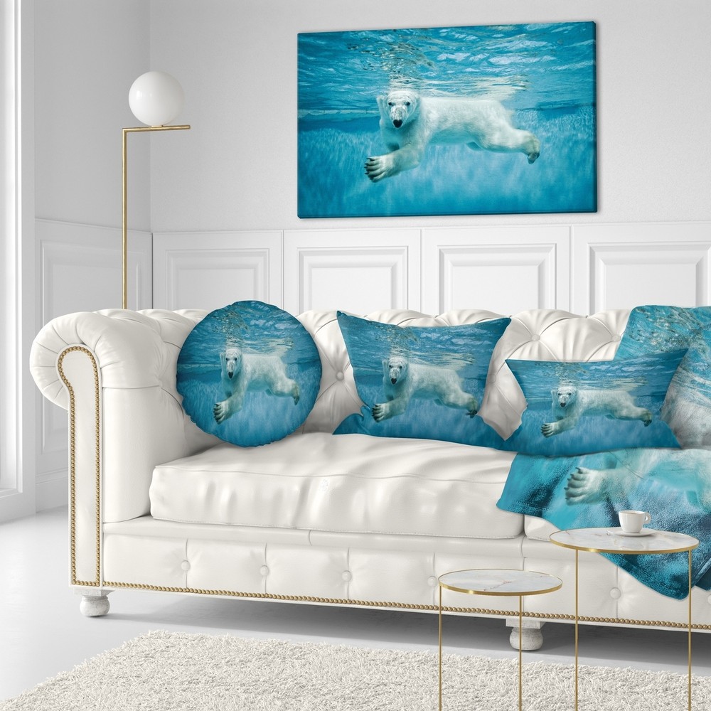 Decorative Throw Pillows for Couch Bed Sofa with Zip CoversAn easy, fun way to add a pop of color or bring new life to any room in your home or office is with these beautiful Animal throw pillows. Dress up your bed, sofa or lounger with this decorative design art pillows. Perfect as Traditional bedroom décor, lounge décor Modern living room décor. It adds a fun accent to any room. Throw pillows really do work wonders: they can transform any room from uninviting discomfort to warm and welcoming. And they really do go almost anywhere - arrange a couple on the couch or sofa, place one in your overstuffed chair for extra coziness, toss a couple on the bed and prop yourself up for a great read.These Animals pillow is printed using High Color Density Italian inks to create a vibrantly colored, Free Shipping Over $49.99* Details Designart 'Polar Bear Swimming under Water' Animal Throw Pillow Product Description: Decorative Throw Pillows for Couch Bed Sofa with Zip Covers An easy, fun way to add a pop of color or bring new life to any room in your home or office is with these beautiful Animal throw pillows. Dress up your bed, sofa or lounger with this decorative design art pillows. Perfect as Traditional bedroom décor, lounge décor Modern living room décor. It adds a fun accent to any room. Throw pillows really do work wondersthey can transform any room from uninviting discomfort to warm and welcoming. And they really do go almost anywhere - arrange a couple on the couch or sofa, place one in your overstuffed chair for extra coziness, toss a couple on the bed and prop yourself up for a great read. These Animals pillow is printed using High Color Density Italian inks to create a vibrantly colored, sharp artwork. Features: Perfect accent to any furniture piece Basic shapes with a modern graphic design twist Printed on ultra smooth and 100% light weight polyester Cushion filled with 100% polyester fill Wrinkle resistant fabric Zip Closure so you can remove the pillow from its' cover Down-like comfort - Odorless 100% Hypoallergenic Machine Wash Cold Separately, Gently Cycle Only, No bleach, hang to dry Print on Demand with High Density Italian Ink Available in Several sizes Attribute :Traditional, Modern, Contemporary Subject Animals, Country Charm, Photography