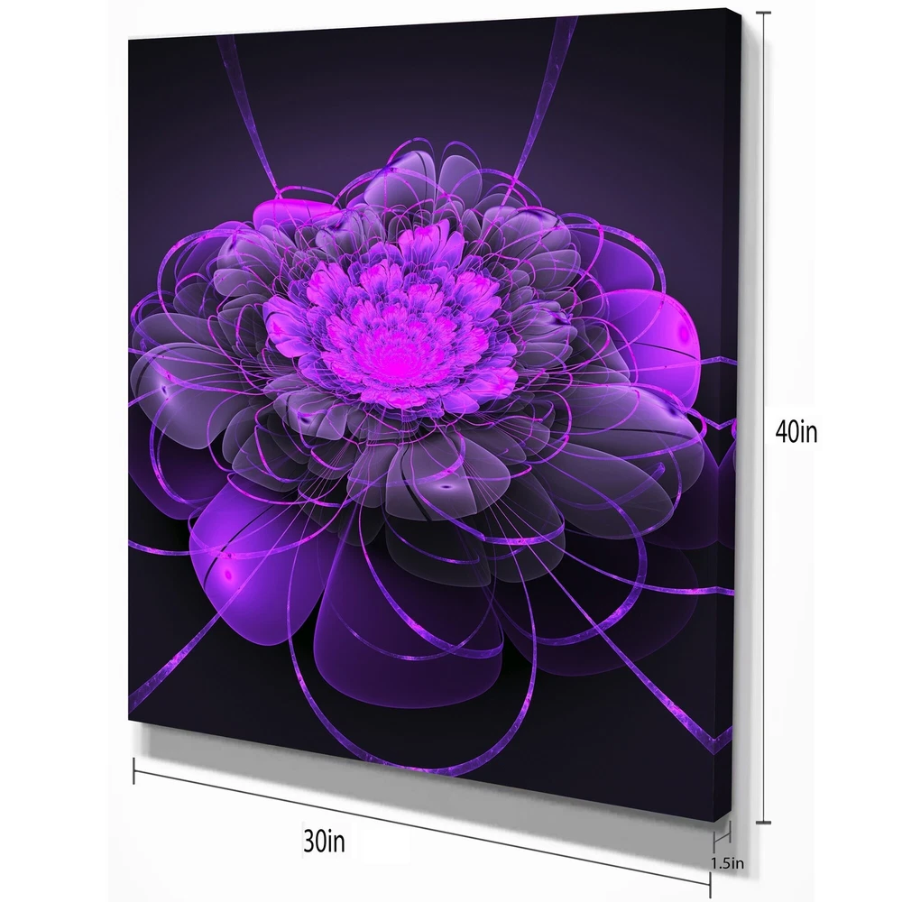 This beautiful art is printed using the highest quality fade resistant ink on canvas. Every one of our fine art giclee canvas prints is printed on premium quality cotton canvas, using the finest quality inks which will not fade over time. Each giclee print is stretched tightly over a 1 inch wood sub frame ensuring the canvas is taught and does not buckle. This canvas giclee print is gallery-wrapped (the design continues on the sides) , giving it a real art gallery feel. Premium quality cotton canvas. Arrives ready to hang on the wall Easy to Hang Free Shipping Over $49.99* Details Designart "Purple 3D Lotus Exotic Flower" Floral Contemporary Art on wrapped Product Description: This beautiful art is printed using the highest quality fade resistant ink on canvas. Every one of our fine art giclee canvas prints is printed on premium quality cotton canvas, using the finest quality inks which will not fade over time. Each giclee print is stretched tightly over a 1 inch wood sub frame ensuring the canvas is taught and does not buckle. This canvas giclee print is gallery-wrapped (the design continues on the sides) , giving it a real art gallery feel. Premium quality cotton canvas. Arrives ready to hang on the wall Easy to Hang