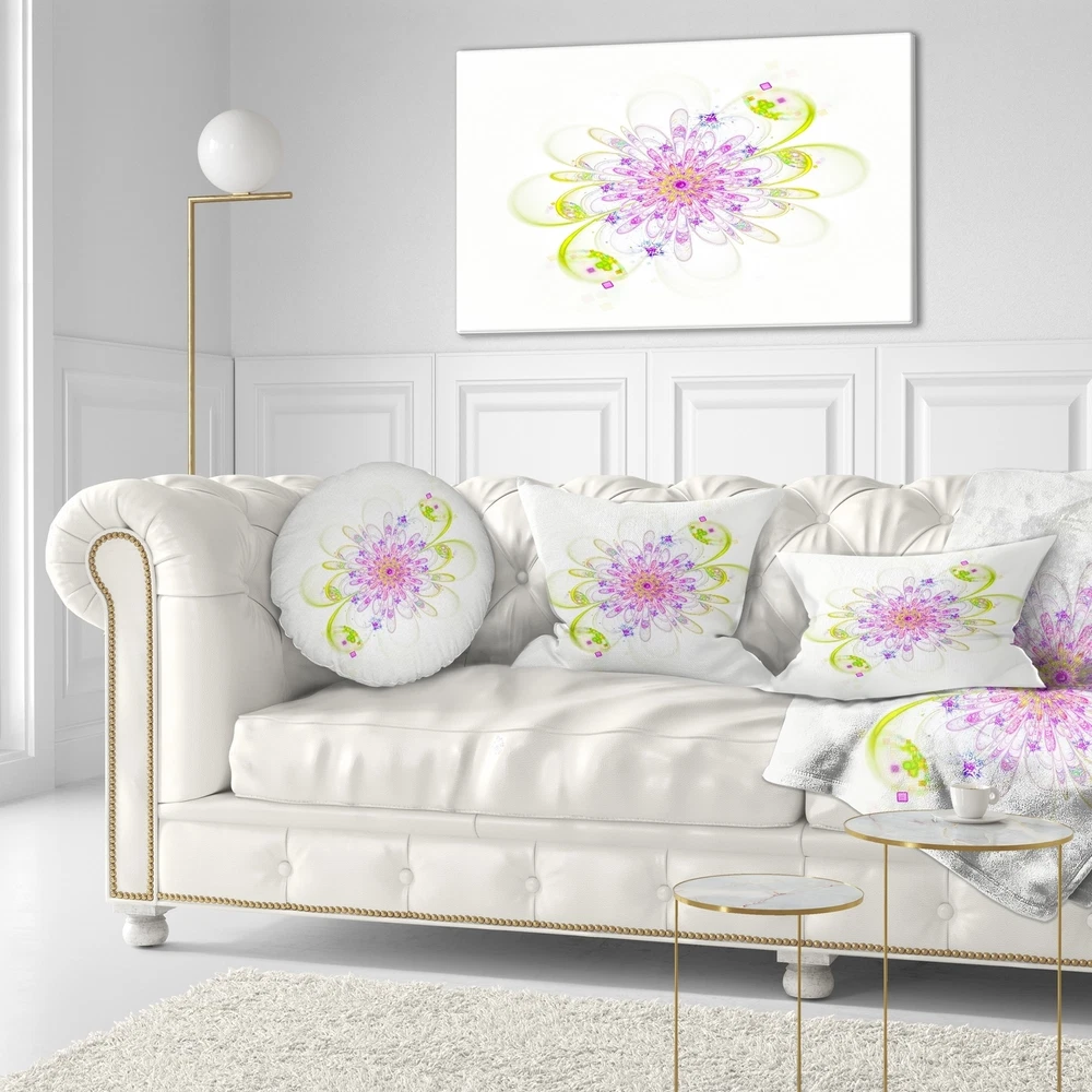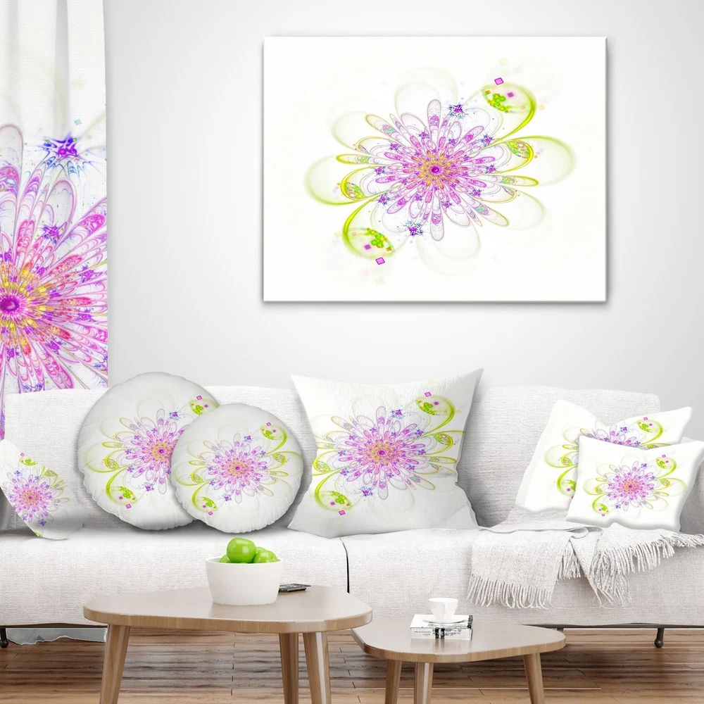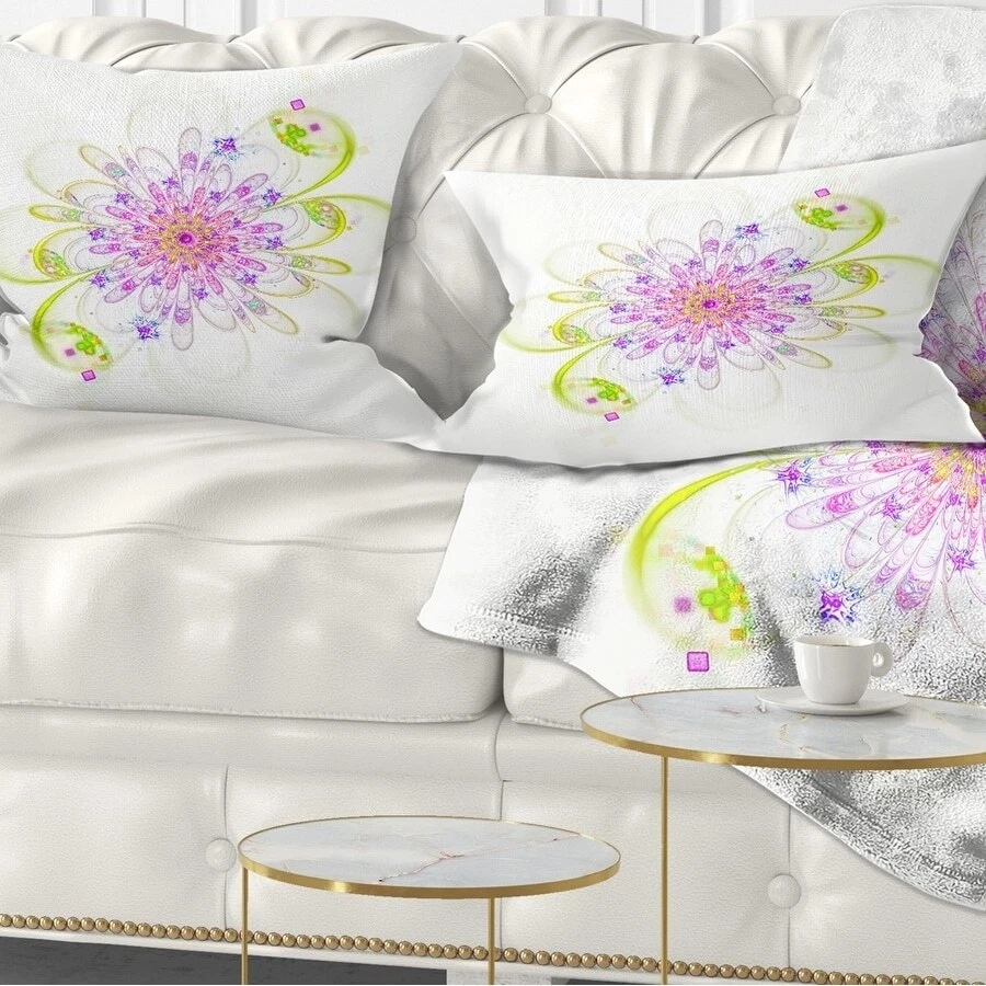 Decorative Throw Pillows for Couch Bed Sofa with Zip CoversAn easy, fun way to add a pop of color or bring new life to any room in your home or office is with these beautiful Floral throw pillows. Dress up your bed, sofa or lounger with this decorative design art pillows. Perfect as Farmhouse bedroom décor, lounge décor Traditional living room décor. It adds a fun accent to any room. Throw pillows really do work wonders: they can transform any room from uninviting discomfort to warm and welcoming. And they really do go almost anywhere - arrange a couple on the couch or sofa, place one in your overstuffed chair for extra coziness, toss a couple on the bed and prop yourself up for a great read.These Floral pillow is printed using High Color Density Italian inks to create a vibrantly colored, Free Shipping Over $49.99* Details Designart 'Purple Green Glowing Fractal Flower' Floral Throw Pillow Product Description: Decorative Throw Pillows for Couch Bed Sofa with Zip Covers An easy, fun way to add a pop of color or bring new life to any room in your home or office is with these beautiful Floral throw pillows. Dress up your bed, sofa or lounger with this decorative design art pillows. Perfect as Farmhouse bedroom décor, lounge décor Traditional living room décor. It adds a fun accent to any room. Throw pillows really do work wondersthey can transform any room from uninviting discomfort to warm and welcoming. And they really do go almost anywhere - arrange a couple on the couch or sofa, place one in your overstuffed chair for extra coziness, toss a couple on the bed and prop yourself up for a great read. These Floral pillow is printed using High Color Density Italian inks to create a vibrantly colored, sharp artwork. Features: Perfect accent to any furniture piece Basic shapes with a modern graphic design twist Printed on 100% light weight polyester Cushion filled with 100% polyester fill Wrinkle resistant fabric Zip Closure so you can remove the pillow from its' cover Down-like comfort - Odorless 100% Hypoallergenic Machine Wash Cold Separately, Gently Cycle Only, No bleach, hang to dry Print on Demand with High Density Italian Ink Available in Several sizes Attribute :Farmhouse, Traditional, Modern Subject Floral, Landscapes, Country Charm