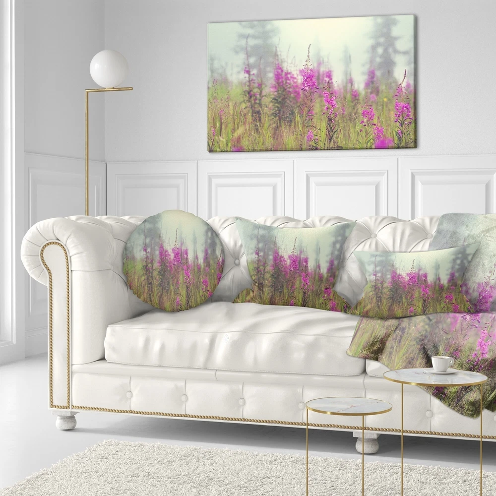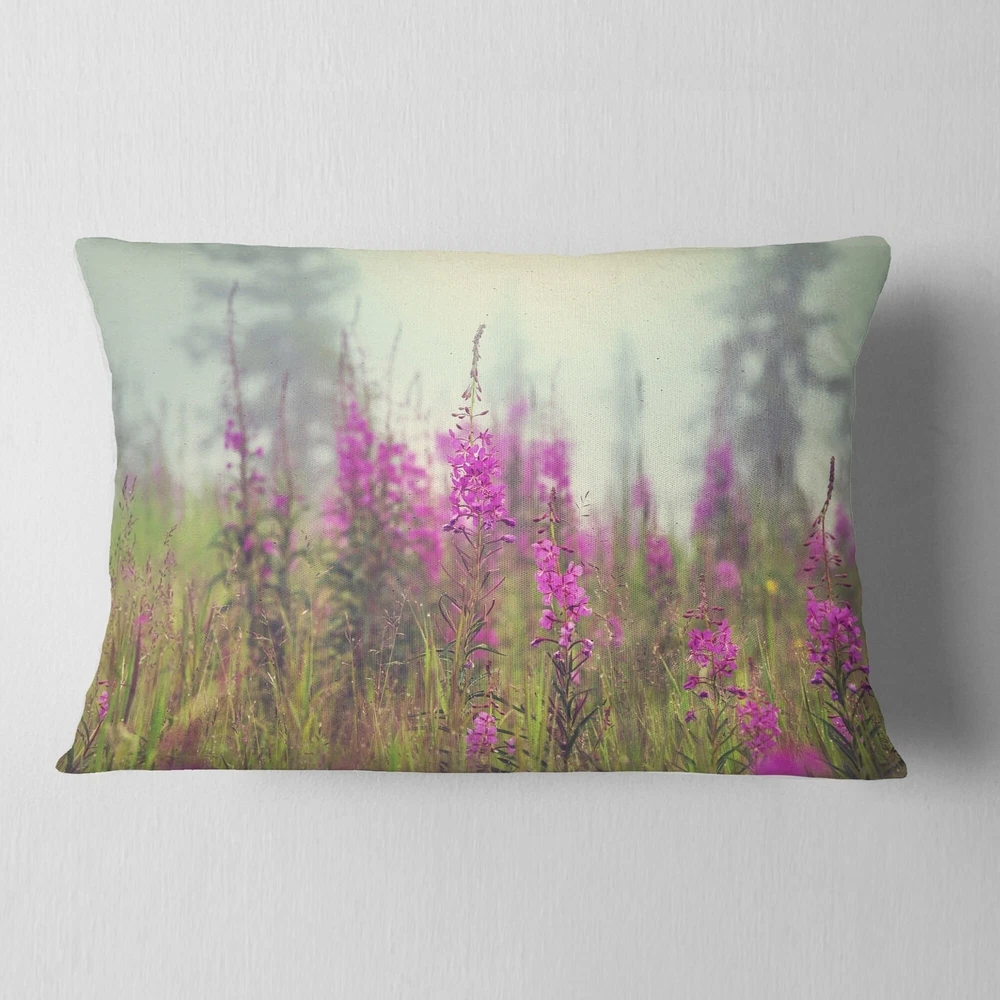 Decorative Throw Pillows for Couch Bed Sofa with Zip CoversAn easy, fun way to add a pop of color or bring new life to any room in your home or office is with these beautiful Floral throw pillows. Dress up your bed, sofa or lounger with this decorative design art pillows. Perfect as Farmhouse bedroom décor, lounge décor Traditional living room décor. It adds a fun accent to any room. Throw pillows really do work wonders: they can transform any room from uninviting discomfort to warm and welcoming. And they really do go almost anywhere - arrange a couple on the couch or sofa, place one in your overstuffed chair for extra coziness, toss a couple on the bed and prop yourself up for a great read.These Floral pillow is printed using High Color Density Italian inks to create a vibrantly colored, Free Shipping Over $49.99* Details Designart 'Purple Summer Flowers in Foggy Field' Floral Throw Pillow Product Description: Decorative Throw Pillows for Couch Bed Sofa with Zip Covers An easy, fun way to add a pop of color or bring new life to any room in your home or office is with these beautiful Floral throw pillows. Dress up your bed, sofa or lounger with this decorative design art pillows. Perfect as Farmhouse bedroom décor, lounge décor Traditional living room décor. It adds a fun accent to any room. Throw pillows really do work wondersthey can transform any room from uninviting discomfort to warm and welcoming. And they really do go almost anywhere - arrange a couple on the couch or sofa, place one in your overstuffed chair for extra coziness, toss a couple on the bed and prop yourself up for a great read. These Floral pillow is printed using High Color Density Italian inks to create a vibrantly colored, sharp artwork. Features: Perfect accent to any furniture piece Basic shapes with a modern graphic design twist Printed on 100% light weight polyester Cushion filled with 100% polyester fill Wrinkle resistant fabric Zip Closure so you can remove the pillow from its' cover Down-like comfort - Odorless 100% Hypoallergenic Machine Wash Cold Separately, Gently Cycle Only, No bleach, hang to dry Print on Demand with High Density Italian Ink Available in Several sizes Attribute :Farmhouse, Traditional, Modern Subject Floral, Landscapes, Country Charm