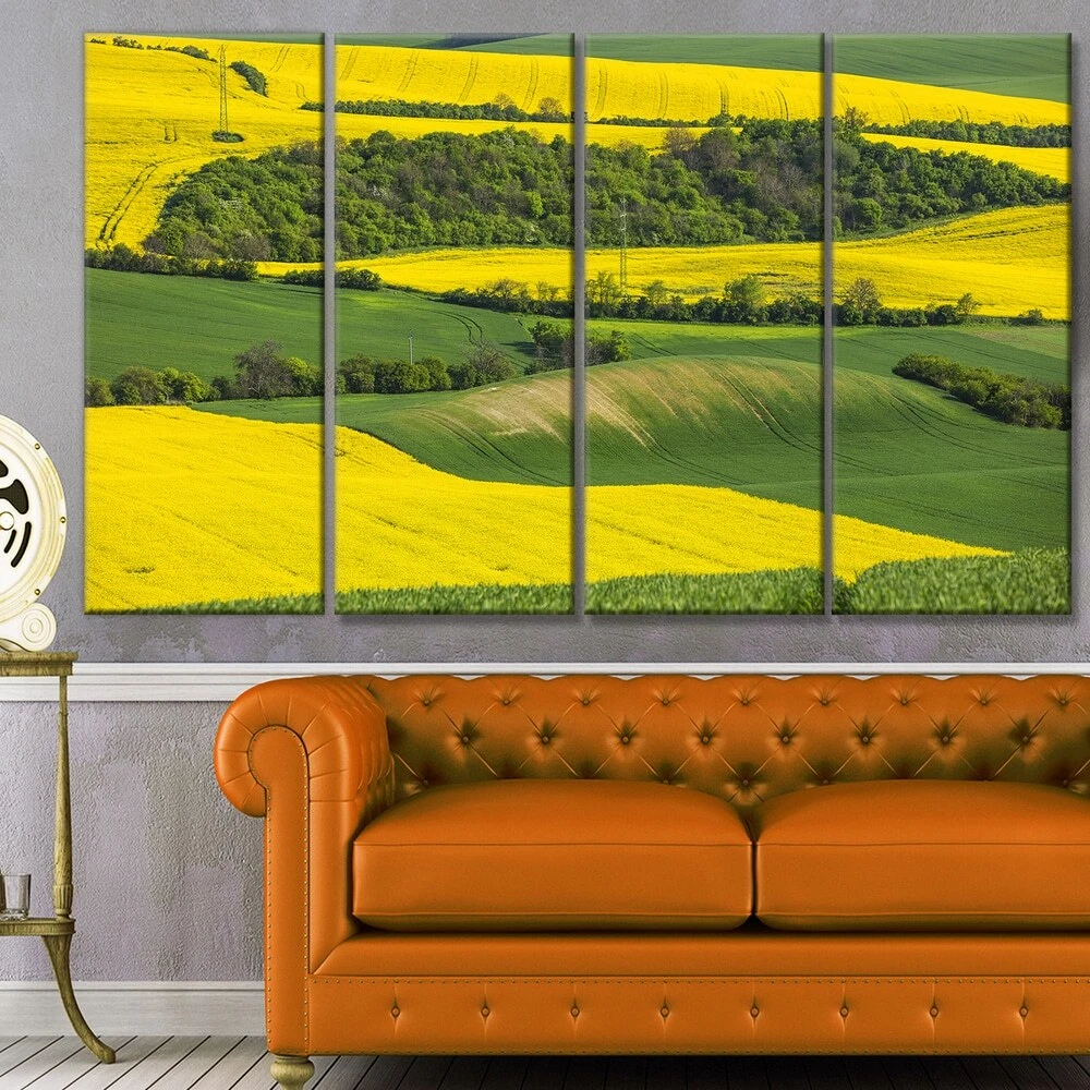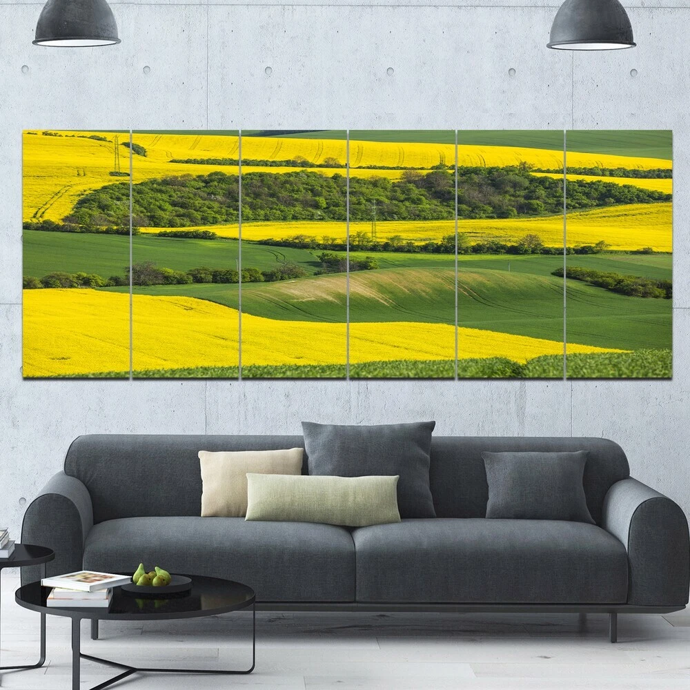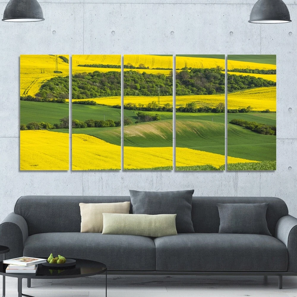 Designart "Rapeseed Fields and Green Wheat" Modern Landscpae Oversized