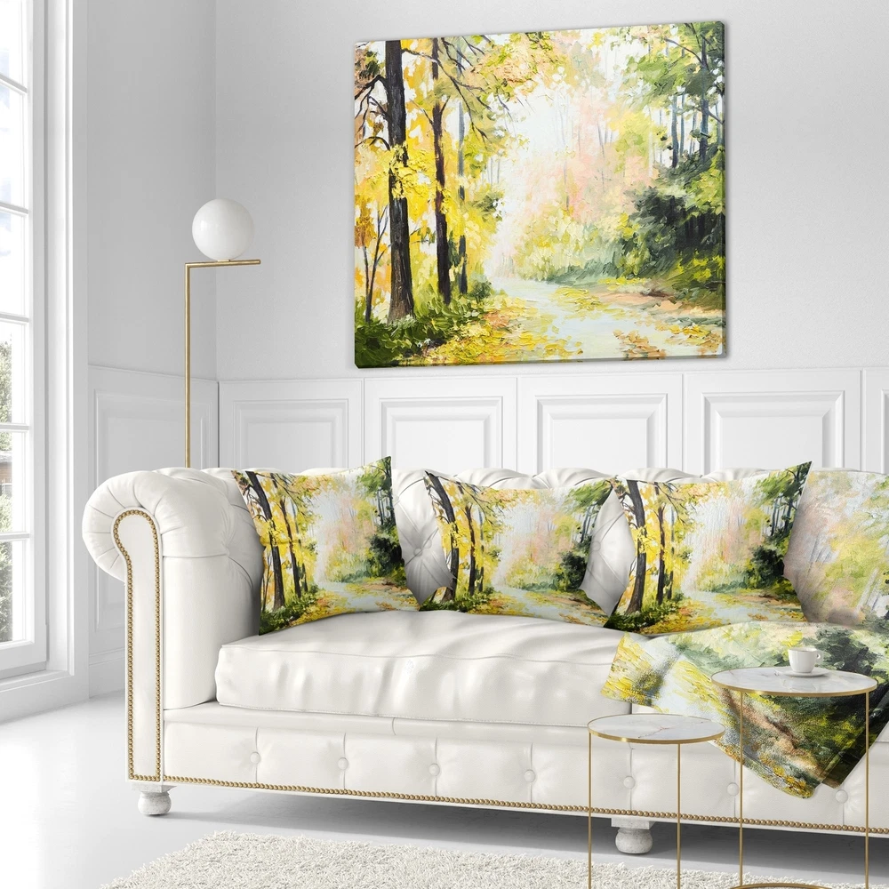 Decorative Throw Pillows for Couch Bed Sofa with Zip CoversAn easy, fun way to add a pop of color or bring new life to any room in your home or office is with these beautiful Landscape throw pillows. Dress up your bed, sofa or lounger with this decorative design art pillows. Perfect as Traditional bedroom décor, lounge décor Cottage living room décor. It adds a fun accent to any room. Throw pillows really do work wonders: they can transform any room from uninviting discomfort to warm and welcoming. And they really do go almost anywhere - arrange a couple on the couch or sofa, place one in your overstuffed chair for extra coziness, toss a couple on the bed and prop yourself up for a great read.These Landscapes pillow is printed using High Color Density Italian inks to create a vibrantly Free Shipping Over $49.99* Details Designart 'Road in Colorful Forest' Landscape Printed Throw Pillow Product Description: Decorative Throw Pillows for Couch Bed Sofa with Zip Covers An easy, fun way to add a pop of color or bring new life to any room in your home or office is with these beautiful Landscape throw pillows. Dress up your bed, sofa or lounger with this decorative design art pillows. Perfect as Traditional bedroom décor, lounge décor Cottage living room décor. It adds a fun accent to any room. Throw pillows really do work wondersthey can transform any room from uninviting discomfort to warm and welcoming. And they really do go almost anywhere - arrange a couple on the couch or sofa, place one in your overstuffed chair for extra coziness, toss a couple on the bed and prop yourself up for a great read. These Landscapes pillow is printed using High Color Density Italian inks to create a vibrantly colored, sharp artwork. Features: Perfect accent to any furniture piece Basic shapes with a modern graphic design twist Printed on 100% light weight polyester Cushion filled with 100% polyester fill Wrinkle resistant fabric Zip Closure so you can remove the pillow from its' cover Down-like comfort - Odorless 100% Hypoallergenic Machine Wash Cold Separately, Gently Cycle Only, No bleach, hang to dry Print on Demand with High Density Italian Ink Available in Several sizes Attribute :Traditional, Cottage, Fine Art Giclee Subject Landscapes, Country Charm,