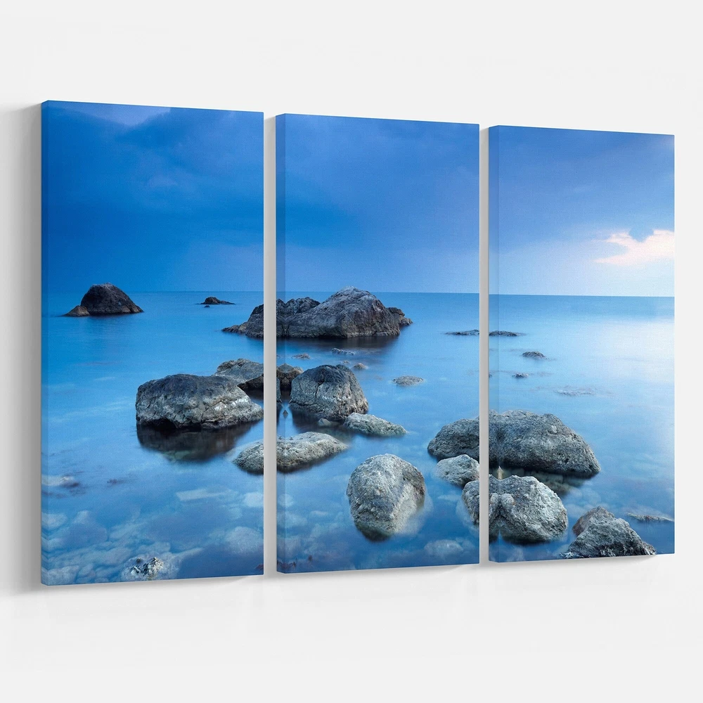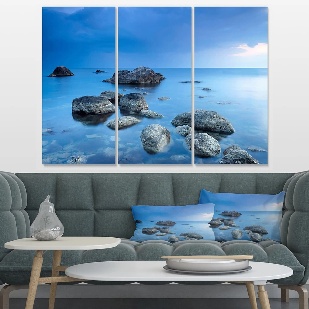 This beautiful Sea & Shore Canvas Art is printed using the highest quality fade resistant ink on canvas. Every one of our fine art giclee canvas prints is printed on premium quality cotton canvas, using the finest quality inks which will not fade over time. Each giclee print is stretched tightly over a 1 inch wood sub frame ensuring the canvas is taught and does not buckle. This canvas art print is gallery-wrapped (the design continues on the sides) , giving it a real art gallery feel. All of our canvas prints are carefully packaged with plastic protection, fragile labeling and sturdy boxes to ensure a safe delivery. Every canvas print arrives ready to hang on the wall, with the hanging kits included.- Style : Nautical & Coastal- Subject : Sea & Shore, Nautical- Color : Blue- This canvas Free Shipping Over $49.99* Details Designart "Rocky Blue Sea" Seascape Photography Canvas Art Print - 36x28 - 3 Product Description: This beautiful Sea & Shore Canvas Art is printed using the highest quality fade resistant ink on canvas. Every one of our fine art giclee canvas prints is printed on premium quality cotton canvas, using the finest quality inks which will not fade over time. Each giclee print is stretched tightly over a 1 inch wood sub frame ensuring the canvas is taught and does not buckle. This canvas art print is gallery-wrapped (the design continues on the sides) , giving it a real art gallery feel. All of our canvas prints are carefully packaged with plastic protection, fragile labeling and sturdy boxes to ensure a safe delivery. Every canvas print arrives ready to hang on the wall, with the hanging kits included. - Style Nautical & Coastal - Subject Sea & Shore, Nautical - Color Blue - This canvas giclee print is gallery-wrapped (the design continues on the sides) , giving it a real art gallery feel. - Premium quality cotton canvas. - Arrives ready to hang on the wall - Easy to Hang