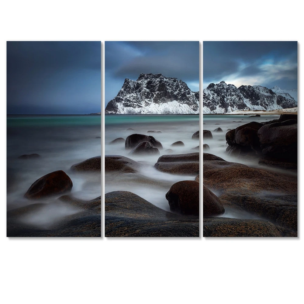 This beautiful Rocky Coast With Mountains Multipanels canvas art is printed using the highest quality fade-resistant ink on canvas. Every one of our fine art giclee canvas prints is printed on premium quality cotton canvas, using the finest quality inks which will not fade over time. Each giclee print is stretched tightly over a 1-inch wood subframe ensuring the canvas is taught and does not buckle. This canvas art print is gallery-wrapped (the design continues on the sides), giving it a real art gallery feel. All of our canvas prints are carefully packaged with plastic protection, fragile labeling, and sturdy boxes to ensure safe delivery. Every canvas print arrives ready to hang on the wall, with the hanging kits included.- Style : Nautical & Coastal- Subject : Beach, - Color : Blue- Free Shipping Over $49.99* Details Designart "Rocky Coast With Mountains" Nautical & Coastal Canvas Wall Art Print Product Description: This beautiful Rocky Coast With Mountains Multipanels canvas art is printed using the highest quality fade-resistant ink on canvas. Every one of our fine art giclee canvas prints is printed on premium quality cotton canvas, using the finest quality inks which will not fade over time. Each giclee print is stretched tightly over a 1-inch wood subframe ensuring the canvas is taught and does not buckle. This canvas art print is gallery-wrapped (the design continues on the sides), giving it a real art gallery feel. All of our canvas prints are carefully packaged with plastic protection, fragile labeling, and sturdy boxes to ensure safe delivery. Every canvas print arrives ready to hang on the wall, with the hanging kits included. - Style Nautical & Coastal - Subject Beach, - Color Blue - This canvas giclee print is gallery-wrapped (the design continues on the sides) , giving it a real art gallery feel. - Premium quality cotton canvas. - Arrives ready to hang on the wall - Easy to Hang