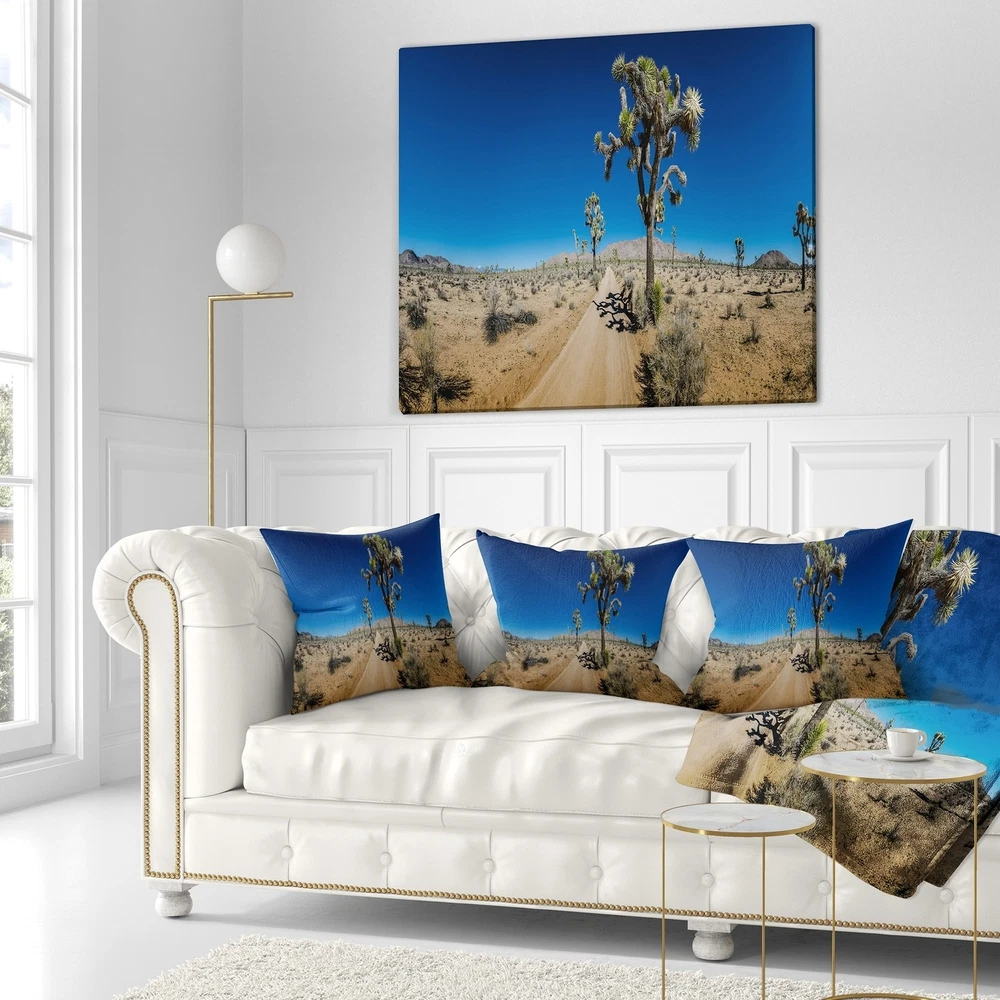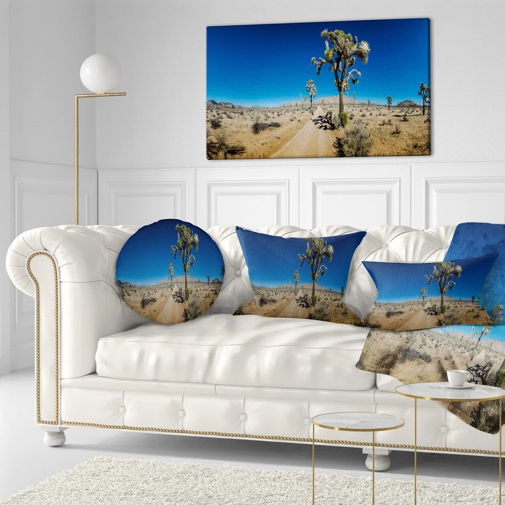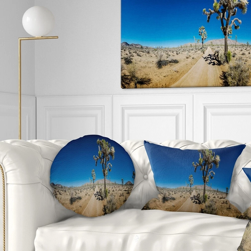 Decorative Throw Pillows for Couch Bed Sofa with Zip CoversAn easy, fun way to add a pop of color or bring new life to any room in your home or office is with these beautiful Landscape throw pillows. Dress up your bed, sofa or lounger with this decorative design art pillows. Perfect as Farmhouse bedroom décor, lounge décor Traditional living room décor. It adds a fun accent to any room. Throw pillows really do work wonders: they can transform any room from uninviting discomfort to warm and welcoming. And they really do go almost anywhere - arrange a couple on the couch or sofa, place one in your overstuffed chair for extra coziness, toss a couple on the bed and prop yourself up for a great read.These Landscapes pillow is printed using High Color Density Italian inks to create a vibrantly Free Shipping Over $49.99* Details Designart 'Sandy Desert Road Panorama' Landscape Wall Throw Pillow Product Description: Decorative Throw Pillows for Couch Bed Sofa with Zip Covers An easy, fun way to add a pop of color or bring new life to any room in your home or office is with these beautiful Landscape throw pillows. Dress up your bed, sofa or lounger with this decorative design art pillows. Perfect as Farmhouse bedroom décor, lounge décor Traditional living room décor. It adds a fun accent to any room. Throw pillows really do work wondersthey can transform any room from uninviting discomfort to warm and welcoming. And they really do go almost anywhere - arrange a couple on the couch or sofa, place one in your overstuffed chair for extra coziness, toss a couple on the bed and prop yourself up for a great read. These Landscapes pillow is printed using High Color Density Italian inks to create a vibrantly colored, sharp artwork. Features: Perfect accent to any furniture piece Basic shapes with a modern graphic design twist Printed on 100% light weight polyester Cushion filled with 100% polyester fill Wrinkle resistant fabric Zip Closure so you can remove the pillow from its' cover Down-like comfort - Odorless 100% Hypoallergenic Machine Wash Cold Separately, Gently Cycle Only, No bleach, hang to dry Print on Demand with High Density Italian Ink Available in Several sizes Attribute :Farmhouse, Traditional, Fine Art Giclee Subject Landscapes, Country Charrm, photography