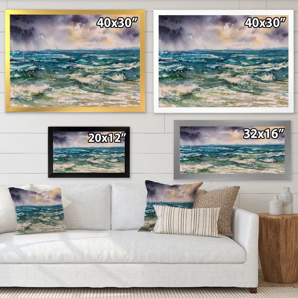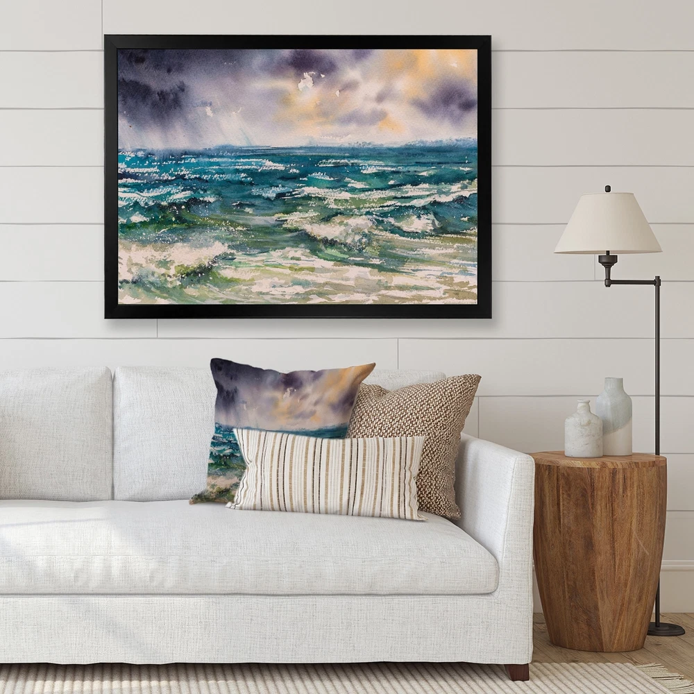 This beautiful Sea Waves And Dramatic Sky Framed wall Art is printed using the highest quality fade resistant ink on canvas. Every one of our Framed Giclee Prints is printed on premium quality canvas, using the finest quality inks which will not fade over time and then mounted and framed on a 1.5 inch wide frame.This framed art print is available in many different color frames. All of our framed art prints are carefully packaged with corner protectors, fragile labeling, and sturdy boxes to ensure a safe delivery. Every framed art arrives ready to hang on the wall, with the hanging kit included.Features:- Style : Nautical & Coastal- Subject : Beach- Color : Blue- Premium quality cotton canvas mounted.- Available in several frame colors. - Arrives with instructions and hanging kit Free Shipping Over $49.99* Details Designart "Sea Waves And Dramatic Sky" Nautical & Coastal Framed Art Print Product Description: This beautiful Sea Waves And Dramatic Sky Framed wall Art is printed using the highest quality fade resistant ink on canvas. Every one of our Framed Giclee Prints is printed on premium quality canvas, using the finest quality inks which will not fade over time and then mounted and framed on a 1.5 inch wide frame. This framed art print is available in many different color frames. All of our framed art prints are carefully packaged with corner protectors, fragile labeling, and sturdy boxes to ensure a safe delivery. Every framed art arrives ready to hang on the wall, with the hanging kit included. Features: - Style Nautical & Coastal - Subject Beach - Color Blue - Premium quality cotton canvas mounted. - Available in several frame colors. - Arrives with instructions and hanging kit