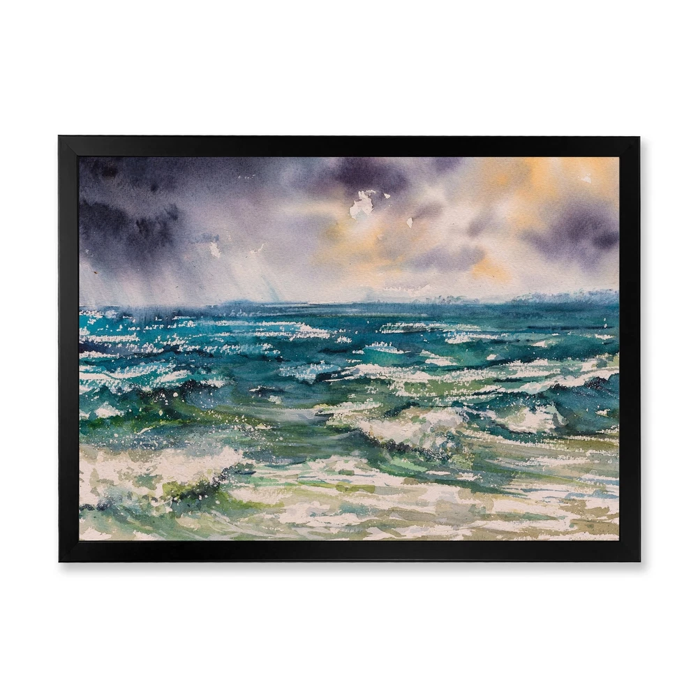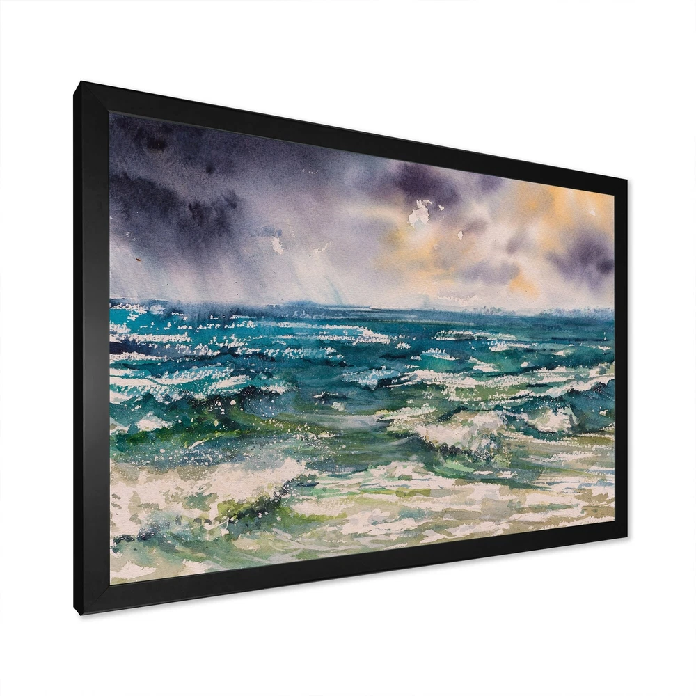 Designart "Sea Waves And Dramatic Sky" Nautical & Coastal Framed Art Print