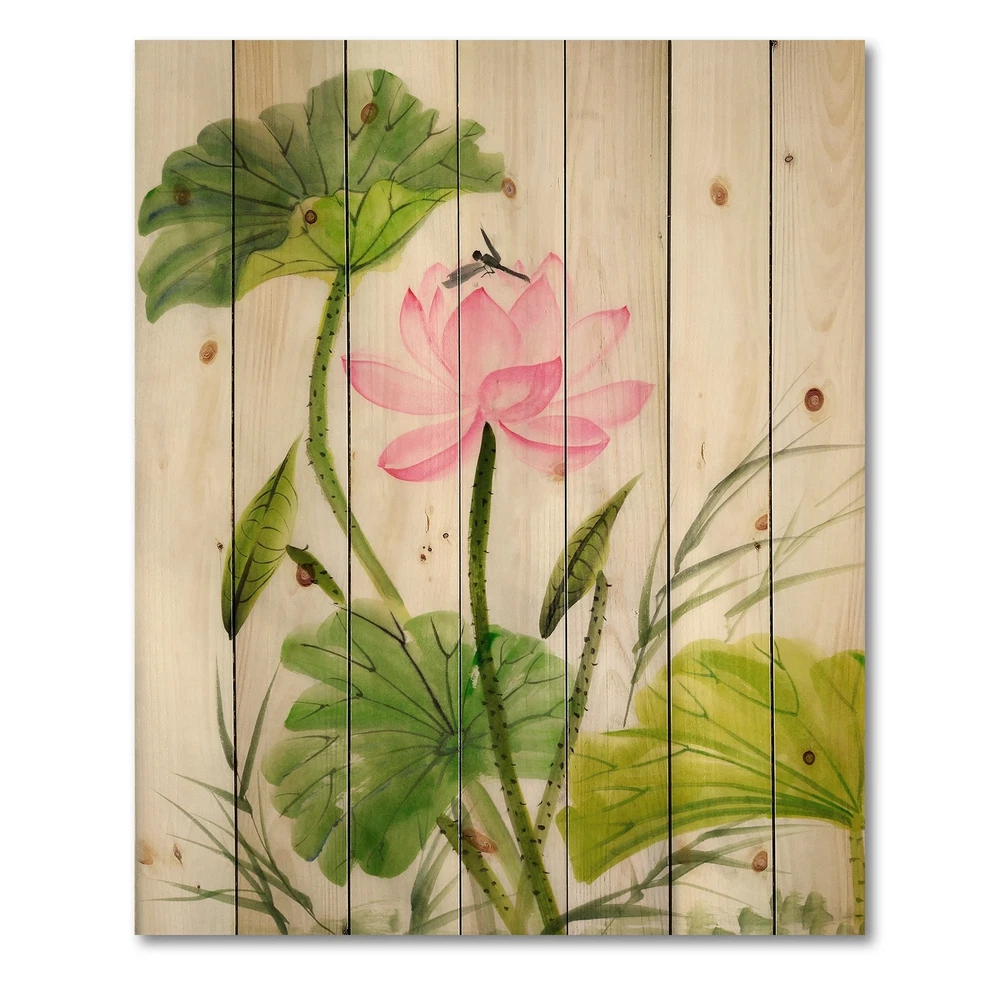 Alas, a modern take on wood wall art. Once typically a wall art piece found only in rustic or farmhouse style decor settings, this Floral wood wall art will easily fit into even the most contemporary of designs.Using the highest quality 6 Color Canon UV Ink, this Traditional wood wall art incorporates several aspects of fine design into one stunning piece. With its slightly visible wood grain appearing through the colors and sleekly finished edges, it is a wonderful choice for any room in your home or office, being it a traditional or modern space. As each piece of wood has natural grain differences from the next, each of these wood wall arts is a truly unique addition to your space.Each Wood wall art is 100% handmade in Canada on Natural pine wood, using the highest quality ink which will Free Shipping Over $49.99* Details Designart 'Single Vintage Lotus Flower With Green Leaves' Traditional Print on Product Description: Alas, a modern take on wood wall art. Once typically a wall art piece found only in rustic or farmhouse style decor settings, this Floral wood wall art will easily fit into even the most contemporary of designs. Using the highest quality 6 Color Canon UV Ink, this Traditional wood wall art incorporates several aspects of fine design into one stunning piece. With its slightly visible wood grain appearing through the colors and sleekly finished edges, it is a wonderful choice for any room in your home or office, being it a traditional or modern space. As each piece of wood has natural grain differences from the next, each of these wood wall arts is a truly unique addition to your space. Each Wood wall art is 100% handmade in Canada on Natural pine wood, using the highest quality ink which will not fade over time. Available in Differents sizes - OrientationVertical - SubjectFloral TypeWood Wall Art, Fine Art, Wood Fine Art, Print on Plaque - Arrives ready to hang on the wall with hanging kit included - MaterialMade with 100% natural pine wood - StyleTraditional - Number of Pieces1 - ColorPink