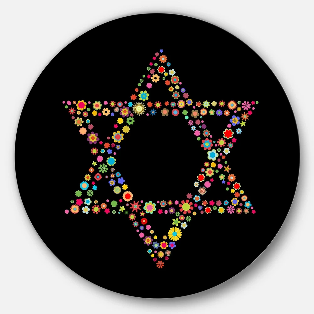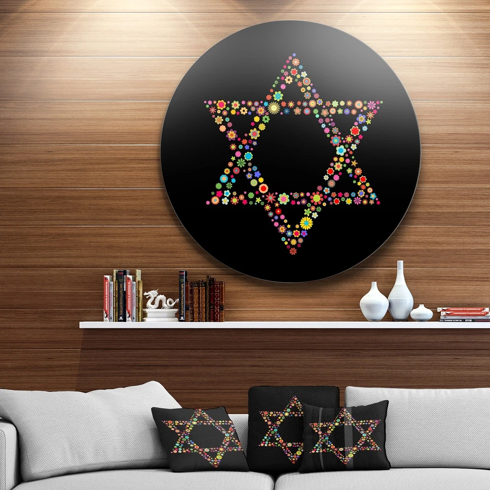 Bring Contemporary Abstraction to your home with this Circle metal wall art. Available in several size, this Modern Star of David Shape Metal Artwork makes it the focal point of any room or office. Features: White Gloss Coating ensures colors are extra vibrant with light reflection Aluminum grade sheet metal 1-inch mounting frame gives the illusion of artwork floating on the wall Mounting brackets and instructions are included High quality digital images are created directly into a glossy aluminum panel, producing a stunning and captivating print in the glossy finish of the metal Water, fire, and scratch resistant HD aluminum panels Looks better than any photo paper and guaranteed to last at least 20 years Easy to clean with a microfiber clothColors are far superior to regular canvas art Free Shipping Over $49.99* Details Designart 'Star of David Shape' Modern Digital Art Round Multi Product Description: Bring Contemporary Abstraction to your home with this Circle metal wall art. Available in several size, this Modern Star of David Shape Metal Artwork makes it the focal point of any room or office. Features: White Gloss Coating ensures colors are extra vibrant with light reflection Aluminum grade sheet metal 1-inch mounting frame gives the illusion of artwork floating on the wall Mounting brackets and instructions are included High quality digital images are created directly into a glossy aluminum panel, producing a stunning and captivating print in the glossy finish of the metal Water, fire, and scratch resistant HD aluminum panels Looks better than any photo paper and guaranteed to last at least 20 years Easy to clean with a microfiber cloth Colors are far superior to regular canvas art Easy to hang See Options drop down for available sizes
