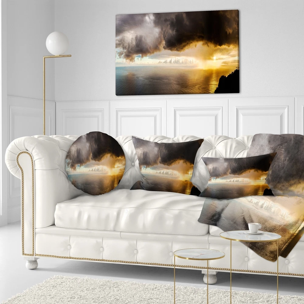 Decorative Throw Pillows for Couch Bed Sofa with Zip CoversAn easy, fun way to add a pop of color or bring new life to any room in your home or office is with these beautiful Landscape throw pillows. Dress up your bed, sofa or lounger with this decorative design art pillows. Perfect as Farmhouse bedroom décor, lounge décor Traditional living room décor. It adds a fun accent to any room. Throw pillows really do work wonders: they can transform any room from uninviting discomfort to warm and welcoming. And they really do go almost anywhere - arrange a couple on the couch or sofa, place one in your overstuffed chair for extra coziness, toss a couple on the bed and prop yourself up for a great read.These Landscapes pillow is printed using High Color Density Italian inks to create a vibrantly Free Shipping Over $49.99* Details Designart 'Storm Dark Could at Sunset' Landscape Photography Throw Pillow Product Description: Decorative Throw Pillows for Couch Bed Sofa with Zip Covers An easy, fun way to add a pop of color or bring new life to any room in your home or office is with these beautiful Landscape throw pillows. Dress up your bed, sofa or lounger with this decorative design art pillows. Perfect as Farmhouse bedroom décor, lounge décor Traditional living room décor. It adds a fun accent to any room. Throw pillows really do work wondersthey can transform any room from uninviting discomfort to warm and welcoming. And they really do go almost anywhere - arrange a couple on the couch or sofa, place one in your overstuffed chair for extra coziness, toss a couple on the bed and prop yourself up for a great read. These Landscapes pillow is printed using High Color Density Italian inks to create a vibrantly colored, sharp artwork. Features: Perfect accent to any furniture piece Basic shapes with a modern graphic design twist Printed on 100% light weight polyester Cushion filled with 100% polyester fill Wrinkle resistant fabric Zip Closure so you can remove the pillow from its' cover Down-like comfort - Odorless 100% Hypoallergenic Machine Wash Cold Separately, Gently Cycle Only, No bleach, hang to dry Print on Demand with High Density Italian Ink Available in Several sizes Attribute :Farmhouse, Traditional, Fine Art Giclee Subject Landscapes, Country Charrm, photography