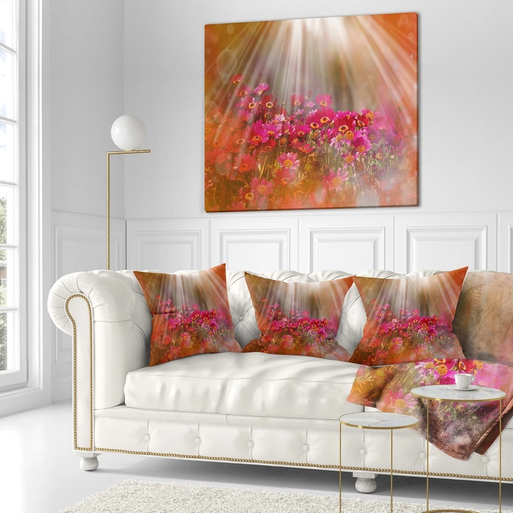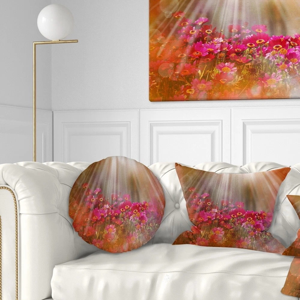 Decorative Throw Pillows for Couch Bed Sofa with Zip CoversAn easy, fun way to add a pop of color or bring new life to any room in your home or office is with these beautiful Floral throw pillows. Dress up your bed, sofa or lounger with this decorative design art pillows. Perfect as Farmhouse bedroom décor, lounge décor Traditional living room décor. It adds a fun accent to any room. Throw pillows really do work wonders: they can transform any room from uninviting discomfort to warm and welcoming. And they really do go almost anywhere - arrange a couple on the couch or sofa, place one in your overstuffed chair for extra coziness, toss a couple on the bed and prop yourself up for a great read.These Floral pillow is printed using High Color Density Italian inks to create a vibrantly colored, Free Shipping Over $49.99* Details Designart 'Sunrays over Little Red Flowers' Floral Throw Pillow Product Description: Decorative Throw Pillows for Couch Bed Sofa with Zip Covers An easy, fun way to add a pop of color or bring new life to any room in your home or office is with these beautiful Floral throw pillows. Dress up your bed, sofa or lounger with this decorative design art pillows. Perfect as Farmhouse bedroom décor, lounge décor Traditional living room décor. It adds a fun accent to any room. Throw pillows really do work wondersthey can transform any room from uninviting discomfort to warm and welcoming. And they really do go almost anywhere - arrange a couple on the couch or sofa, place one in your overstuffed chair for extra coziness, toss a couple on the bed and prop yourself up for a great read. These Floral pillow is printed using High Color Density Italian inks to create a vibrantly colored, sharp artwork. Features: Perfect accent to any furniture piece Basic shapes with a modern graphic design twist Printed on 100% light weight polyester Cushion filled with 100% polyester fill Wrinkle resistant fabric Zip Closure so you can remove the pillow from its' cover Down-like comfort - Odorless 100% Hypoallergenic Machine Wash Cold Separately, Gently Cycle Only, No bleach, hang to dry Print on Demand with High Density Italian Ink Available in Several sizes Attribute :Farmhouse, Traditional, Modern Subject Floral, Landscapes, Country Charm