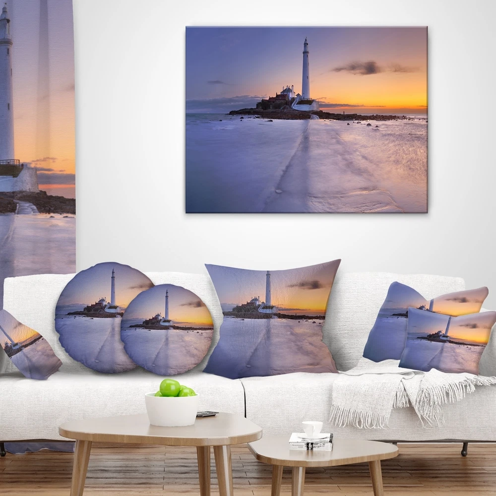 Decorative Throw Pillows for Couch Bed Sofa with Zip CoversAn easy, fun way to add a pop of color or bring new life to any room in your home or office is with these beautiful Sea & Shore throw pillows. Dress up your bed, sofa or lounger with this decorative design art pillows. Perfect as Coastal bedroom décor, lounge décor Beach living room décor. It adds a fun accent to any room. Throw pillows really do work wonders: they can transform any room from uninviting discomfort to warm and welcoming. And they really do go almost anywhere - arrange a couple on the couch or sofa, place one in your overstuffed chair for extra coziness, toss a couple on the bed and prop yourself up for a great read.These Sea & Shore pillow is printed using High Color Density Italian inks to create a vibrantly Free Shipping Over $49.99* Details Designart 'Sunrise Over St. Mary s Lighthouse' Modern Seascape Throw Pillow Product Description: Decorative Throw Pillows for Couch Bed Sofa with Zip Covers An easy, fun way to add a pop of color or bring new life to any room in your home or office is with these beautiful Sea & Shore throw pillows. Dress up your bed, sofa or lounger with this decorative design art pillows. Perfect as Coastal bedroom décor, lounge décor Beach living room décor. It adds a fun accent to any room. Throw pillows really do work wondersthey can transform any room from uninviting discomfort to warm and welcoming. And they really do go almost anywhere - arrange a couple on the couch or sofa, place one in your overstuffed chair for extra coziness, toss a couple on the bed and prop yourself up for a great read. These Sea & Shore pillow is printed using High Color Density Italian inks to create a vibrantly colored, sharp artwork. Features: Perfect accent to any furniture piece Basic shapes with a modern graphic design twist Printed on 100% light weight polyester Cushion filled with 100% polyester fill Wrinkle resistant fabric Zip Closure so you can remove the pillow from its' cover Down-like comfort - Odorless 100% Hypoallergenic Machine Wash Cold Separately, Gently Cycle Only, No bleach, hang to dry Print on Demand with High Density Italian Ink Available in Several sizes Attribute :Coastal, Beach, Tropical Subject Sea & Shore, Nautical, Landscapes