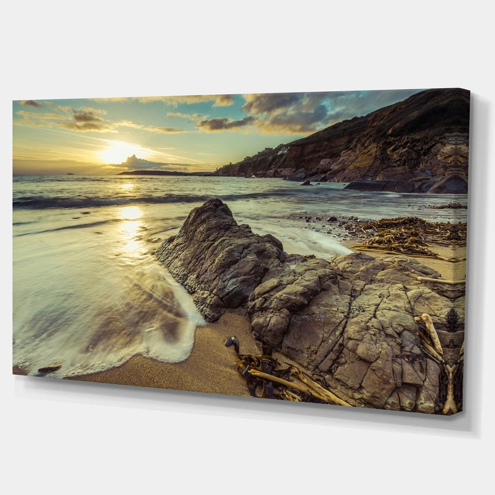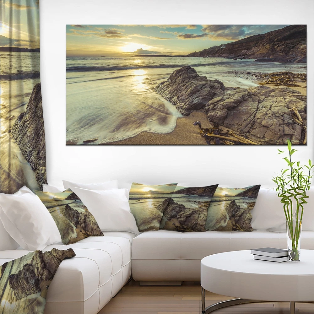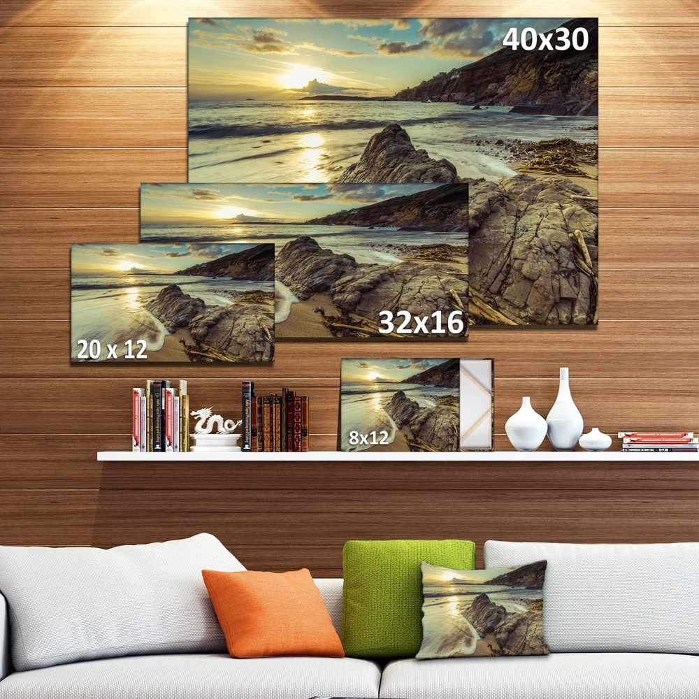 This beautiful Sea & Shore Canvas Art is printed using the highest quality fade resistant ink on canvas. Every one of our fine art giclee canvas prints is printed on premium quality cotton canvas, using the finest quality inks which will not fade over time. Each giclee print is stretched tightly over a 1 inch wood sub frame for small size prints or a 1.5 inch wood sub frame for large size prints (40x30 60x28 ...) ensuring the canvas is taught and does not buckle. This canvas art print is gallery-wrapped (the design continues on the sides) , giving it a real art gallery feel. All of our canvas prints are carefully packaged with plastic protection, fragile labeling and sturdy boxes to ensure a safe delivery. Every canvas print arrives ready to hang on the wall, with the hanging kits Free Shipping Over $49.99* Details Designart "Sunset at Beach Vintage Style" Modern Seascape Canvas Artwork Product Description: This beautiful Sea & Shore Canvas Art is printed using the highest quality fade resistant ink on canvas. Every one of our fine art giclee canvas prints is printed on premium quality cotton canvas, using the finest quality inks which will not fade over time. Each giclee print is stretched tightly over a 1 inch wood sub frame for small size prints or a 1.5 inch wood sub frame for large size prints (40x30 60x28 ...) ensuring the canvas is taught and does not buckle. This canvas art print is gallery-wrapped (the design continues on the sides) , giving it a real art gallery feel. All of our canvas prints are carefully packaged with plastic protection, fragile labeling and sturdy boxes to ensure a safe delivery. Every canvas print arrives ready to hang on the wall, with the hanging kits included. - Style Nautical & Coastal - Subject Sea & Shore, Nautical - Color Multi-Color - This canvas giclee print is gallery-wrapped (the design continues on the sides) , giving it a real art gallery feel. - Premium quality cotton canvas. - Arrives ready to hang on the wall - Easy to Hang