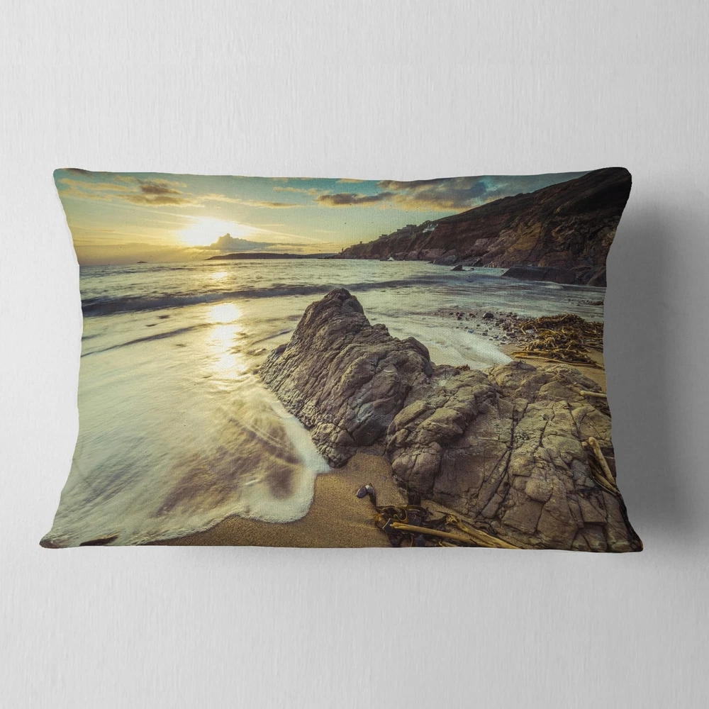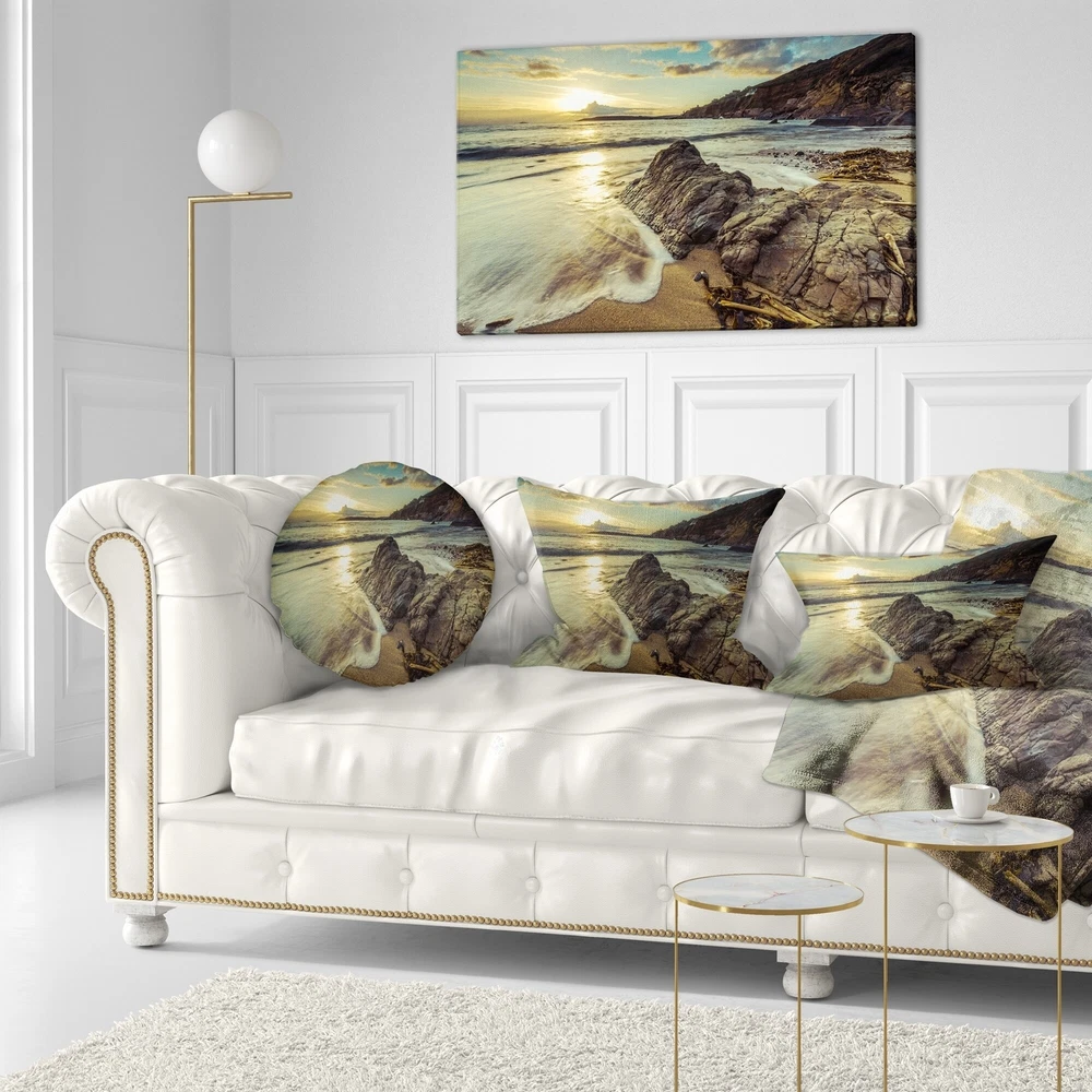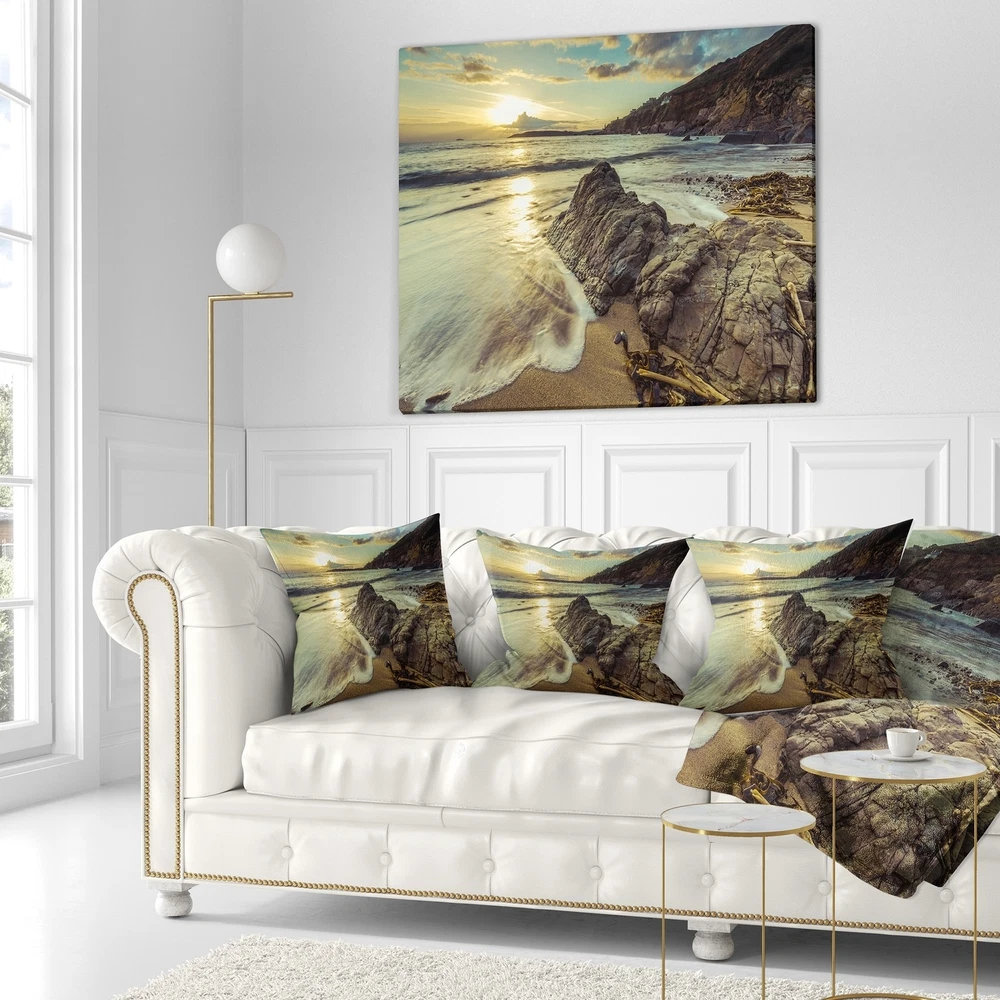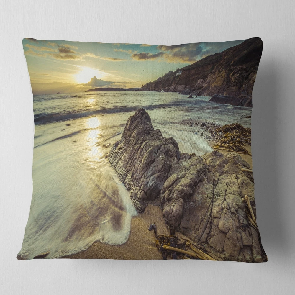 Decorative Throw Pillows for Couch Bed Sofa with Zip CoversAn easy, fun way to add a pop of color or bring new life to any room in your home or office is with these beautiful Sea & Shore throw pillows. Dress up your bed, sofa or lounger with this decorative design art pillows. Perfect as Coastal bedroom décor, lounge décor Beach living room décor. It adds a fun accent to any room. Throw pillows really do work wonders: they can transform any room from uninviting discomfort to warm and welcoming. And they really do go almost anywhere - arrange a couple on the couch or sofa, place one in your overstuffed chair for extra coziness, toss a couple on the bed and prop yourself up for a great read.These Sea & Shore pillow is printed using High Color Density Italian inks to create a vibrantly Free Shipping Over $49.99* Details Designart 'Sunset at Beach Vintage Style' Modern Seascape Throw Pillow Product Description: Decorative Throw Pillows for Couch Bed Sofa with Zip Covers An easy, fun way to add a pop of color or bring new life to any room in your home or office is with these beautiful Sea & Shore throw pillows. Dress up your bed, sofa or lounger with this decorative design art pillows. Perfect as Coastal bedroom décor, lounge décor Beach living room décor. It adds a fun accent to any room. Throw pillows really do work wondersthey can transform any room from uninviting discomfort to warm and welcoming. And they really do go almost anywhere - arrange a couple on the couch or sofa, place one in your overstuffed chair for extra coziness, toss a couple on the bed and prop yourself up for a great read. These Sea & Shore pillow is printed using High Color Density Italian inks to create a vibrantly colored, sharp artwork. Features: Perfect accent to any furniture piece Basic shapes with a modern graphic design twist Printed on ultra smooth and 100% light weight polyester Cushion filled with 100% polyester fill Wrinkle resistant fabric Zip Closure so you can remove the pillow from its' cover Down-like comfort - Odorless 100% Hypoallergenic Machine Wash Cold Separately, Gently Cycle Only, No bleach, hang to dry Print on Demand with High Density Italian Ink Available in Several sizes Attribute :Coastal, Beach, Tropical Subject Sea & Shore, Nautical, Landscapes