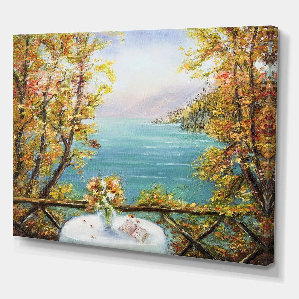 Designart "Terrace VIew By The Blue Ocean" Nautical &