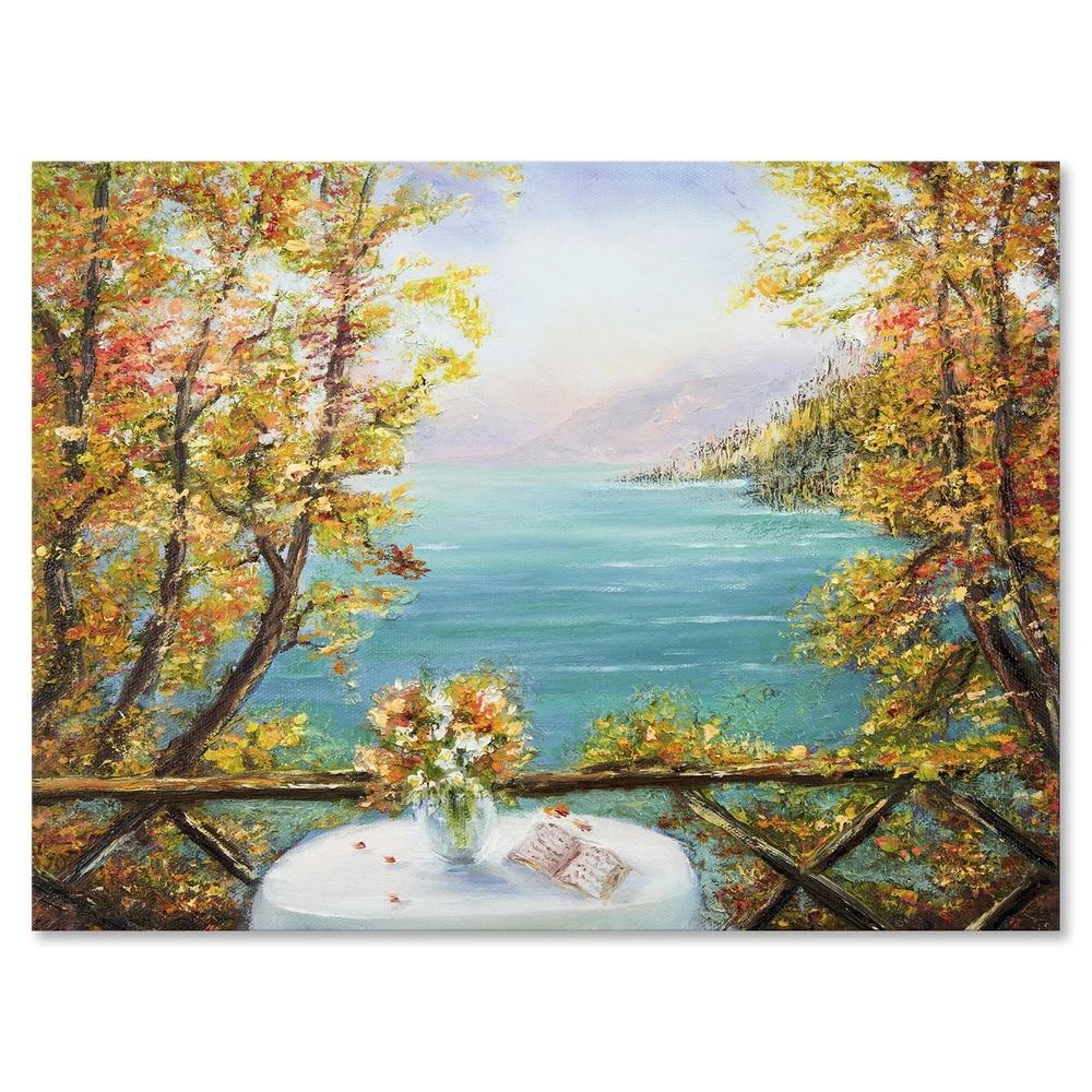 This beautiful Nautical & Coastal Canvas Art is printed using the highest quality fade resistant ink on canvas. Every one of our fine art giclee canvas prints is printed on premium quality cotton canvas, using the finest quality inks which will not fade over time. Each giclee print is stretched tightly over a 1 inch wood sub frame for small size prints or a 1.5 inch wood sub frame for large size prints (40x30 36x36 ...) ensuring the canvas is taught and does not buckle. This canvas art print is gallery-wrapped (the design continues on the sides) , giving it a real art gallery feel. All of our canvas prints are carefully packaged with plastic protection, fragile labeling and sturdy boxes to ensure a safe delivery. Every canvas print arrives ready to hang on the wall, with the hanging kits Free Shipping Over $49.99* Details Designart "Terrace VIew By The Blue Ocean" Nautical & Coastal Canvas Wall Art Product Description: This beautiful Nautical & Coastal Canvas Art is printed using the highest quality fade resistant ink on canvas. Every one of our fine art giclee canvas prints is printed on premium quality cotton canvas, using the finest quality inks which will not fade over time. Each giclee print is stretched tightly over a 1 inch wood sub frame for small size prints or a 1.5 inch wood sub frame for large size prints (40x30 36x36 ...) ensuring the canvas is taught and does not buckle. This canvas art print is gallery-wrapped (the design continues on the sides) , giving it a real art gallery feel. All of our canvas prints are carefully packaged with plastic protection, fragile labeling and sturdy boxes to ensure a safe delivery. Every canvas print arrives ready to hang on the wall, with the hanging kits included. - Style Nautical & Coastal,Tropical - Subject Beach, Landscapes - Color Blue, - This canvas giclee print is gallery-wrapped (the design continues on the sides) , giving it a real art gallery feel. - Premium quality cotton canvas. - Arrives ready to hang on the wall - Easy to Hang