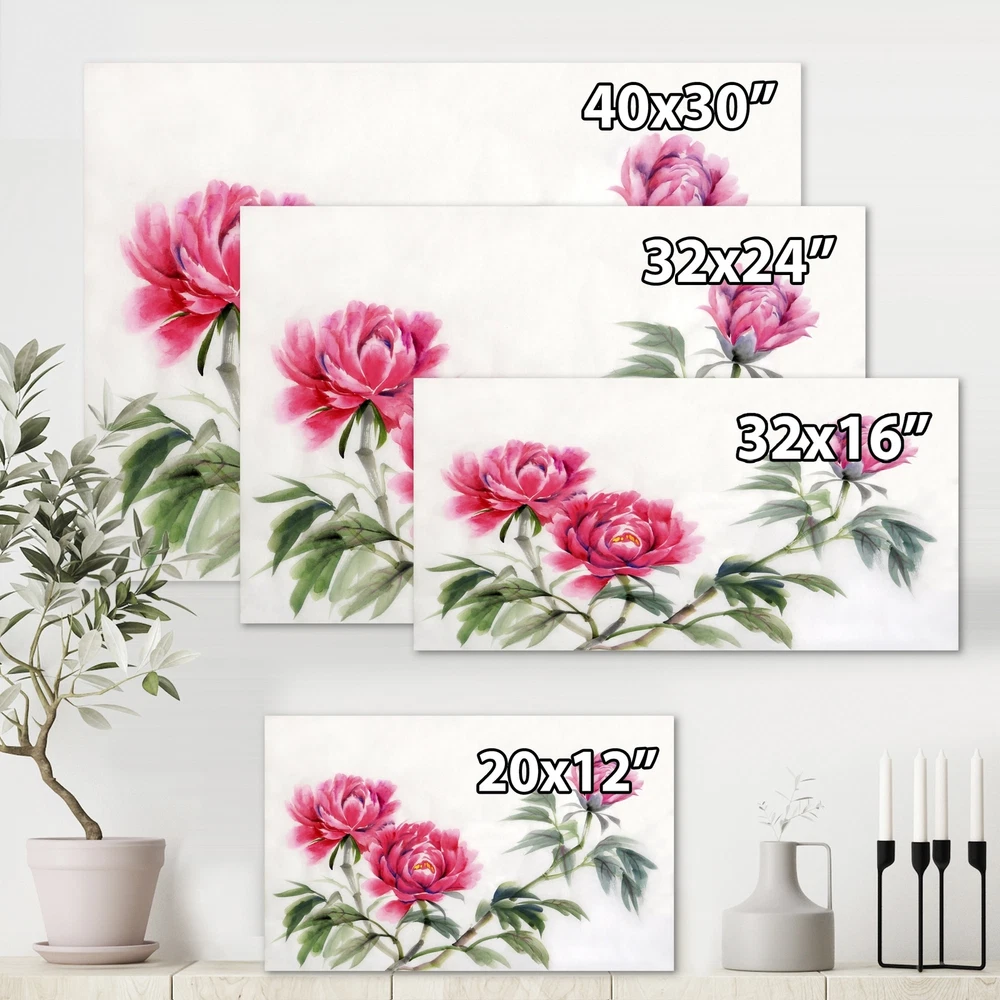 This beautiful Traditional Canvas Art is printed using the highest quality fade resistant ink on canvas. Every one of our fine art giclee canvas prints is printed on premium quality cotton canvas, using the finest quality inks which will not fade over time. Each giclee print is stretched tightly over a 1 inch wood sub frame for small size prints or a 1.5 inch wood sub frame for large size prints (40x30 36x36 ...) ensuring the canvas is taught and does not buckle. This canvas art print is gallery-wrapped (the design continues on the sides) , giving it a real art gallery feel. All of our canvas prints are carefully packaged with plastic protection, fragile labeling and sturdy boxes to ensure a safe delivery. Every canvas print arrives ready to hang on the wall, with the hanging kits Free Shipping Over $49.99* Details Designart "Three Vintage Peonies Flowers" Traditional Canvas Wall Art Print Product Description: This beautiful Traditional Canvas Art is printed using the highest quality fade resistant ink on canvas. Every one of our fine art giclee canvas prints is printed on premium quality cotton canvas, using the finest quality inks which will not fade over time. Each giclee print is stretched tightly over a 1 inch wood sub frame for small size prints or a 1.5 inch wood sub frame for large size prints (40x30 36x36 ...) ensuring the canvas is taught and does not buckle. This canvas art print is gallery-wrapped (the design continues on the sides) , giving it a real art gallery feel. All of our canvas prints are carefully packaged with plastic protection, fragile labeling and sturdy boxes to ensure a safe delivery. Every canvas print arrives ready to hang on the wall, with the hanging kits included. - Style Traditional,Traditional - Subject Floral, Photography - Color Pink, - This canvas giclee print is gallery-wrapped (the design continues on the sides) , giving it a real art gallery feel. - Premium quality cotton canvas. - Arrives ready to hang on the wall - Easy to Hang