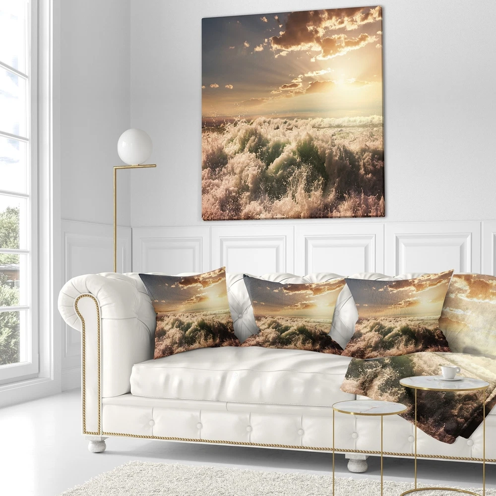 Decorative Throw Pillows for Couch Bed Sofa with Zip CoversAn easy, fun way to add a pop of color or bring new life to any room in your home or office is with these beautiful Sea & Shore throw pillows. Dress up your bed, sofa or lounger with this decorative design art pillows. Perfect as Coastal bedroom décor, lounge décor Beach living room décor. It adds a fun accent to any room. Throw pillows really do work wonders: they can transform any room from uninviting discomfort to warm and welcoming. And they really do go almost anywhere - arrange a couple on the couch or sofa, place one in your overstuffed chair for extra coziness, toss a couple on the bed and prop yourself up for a great read.These Sea & Shore pillow is printed using High Color Density Italian inks to create a vibrantly Free Shipping Over $49.99* Details Designart 'Troubled White Waves on Beach' Seascape Throw Pillow Product Description: Decorative Throw Pillows for Couch Bed Sofa with Zip Covers An easy, fun way to add a pop of color or bring new life to any room in your home or office is with these beautiful Sea & Shore throw pillows. Dress up your bed, sofa or lounger with this decorative design art pillows. Perfect as Coastal bedroom décor, lounge décor Beach living room décor. It adds a fun accent to any room. Throw pillows really do work wondersthey can transform any room from uninviting discomfort to warm and welcoming. And they really do go almost anywhere - arrange a couple on the couch or sofa, place one in your overstuffed chair for extra coziness, toss a couple on the bed and prop yourself up for a great read. These Sea & Shore pillow is printed using High Color Density Italian inks to create a vibrantly colored, sharp artwork. Features: Perfect accent to any furniture piece Basic shapes with a modern graphic design twist Printed on 100% light weight polyester Cushion filled with 100% polyester fill Wrinkle resistant fabric Zip Closure so you can remove the pillow from its' cover Down-like comfort - Odorless 100% Hypoallergenic Machine Wash Cold Separately, Gently Cycle Only, No bleach, hang to dry Print on Demand with High Density Italian Ink Available in Several sizes Attribute :Coastal, Beach, Tropical Subject Sea & Shore, Nautical, Landscapes