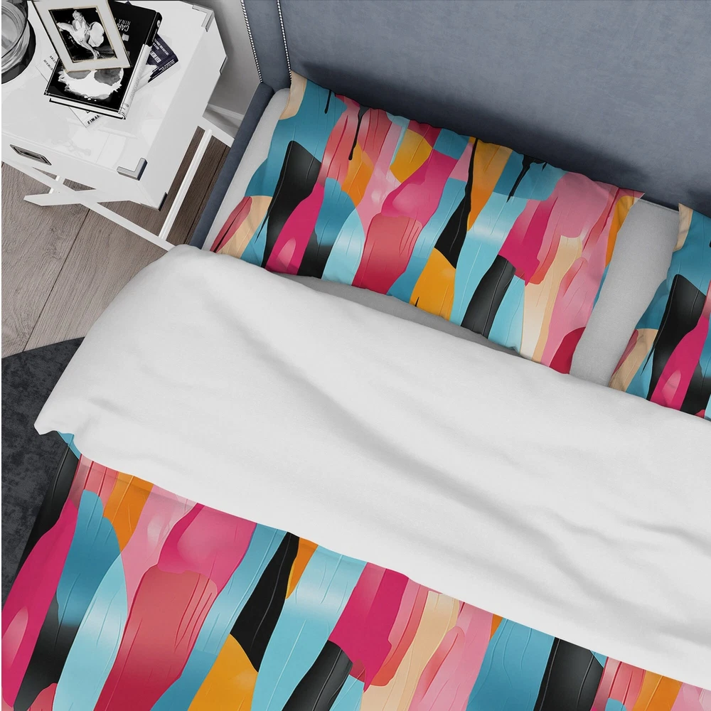 There is just nothing better than a beautiful, inviting comfortable bed after a long day. This Striped, Abstract bed set is created using the richest colors stemming from high density Italian ink and the softest fabrics making it the perfect way to spruce up your bedroom, while keeping it ultra-comfortable. This luxurious Vibrant Serenity Blue And Pink Lines Pattern II bed design is made with 100% microfiber polyester, making it ultra-soft to ensure you sleep comfortably all night long. This Modern & Contemporary set includes 1 Bed Cover and 2 Shams and is available in twin, queen and king sizes.This Bedding Set is easily integrated into your already decorated space.What's Included? - Duvet Cover - Shams - Pillow Cases not included but can be buy separately - Comforter Free Shipping Over $49.99* Details Designart "Vibrant Serenity Blue And Pink Lines Pattern II" Pink Modern Bed Product Description: There is just nothing better than a beautiful, inviting comfortable bed after a long day. This Striped, Abstract bed set is created using the richest colors stemming from high density Italian ink and the softest fabrics making it the perfect way to spruce up your bedroom, while keeping it ultra-comfortable. This luxurious Vibrant Serenity Blue And Pink Lines Pattern II bed design is made with 100% microfiber polyester, making it ultra-soft to ensure you sleep comfortably all night long. This Modern & Contemporary set includes 1 Bed Cover and 2 Shams and is available in twin, queen and king sizes. This Bedding Set is easily integrated into your already decorated space. What's Included? - Duvet Cover - Shams - Pillow Cases not included but can be buy separately - Comforter Insert NOT INCLUDED Features - Printed using High Density Italian Ink making the colors extra vibrant. - Made from ultra-soft, lightweight 100% microfiber polyester. Wrinkle resistant fabric. Down-like comfort, odorless. - The Modern & Contemporary bed set includes one bed cover and two standard pillow shams to create a complete and stylish look. - The elegant and soft colors are both trendy and fun to brighten and update your bedroom. - Made in Canada - Decorative Wall Art and throw pillows to match this set are available but sold separately. - Actual comforter inserts and pillow inserts are not included. This set includes the two pillow shams and comforter cover only. King Dimensions: - 1 Duvet Cover104 inches wide x 88 inches long - 2 King Shams20 inches wide x 36 inches long Queen Dimensions: - 1 Duvet Cover88 inches wide x 88 inches long - 2 Standard Shams16 inches wide x 26 inches long Twin Dimensions: - 1 Duvet Cover68 inches wide x 88 inches long - 1 Standard Sham16 inches wide x 26 inches long Product Details - MaterialPolyester. - PatternStriped; Abstract - ColorBlue; Pink - StyleModern & Contemporary - ReversibleNo Directions: Fabric Care InstructionsMachine wash on cold gentle cycle. Wash separately on first wash. Use only non- chlorine bleach when needed. Tumble dry low. Remove promptly.