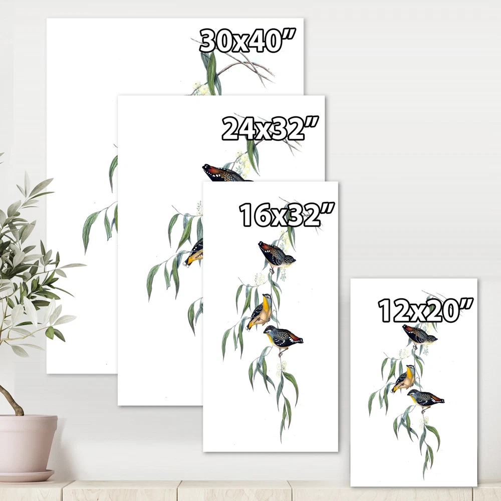 This beautiful Traditional Canvas Art is printed using the highest quality fade resistant ink on canvas. Every one of our fine art giclee canvas prints is printed on premium quality cotton canvas, using the finest quality inks which will not fade over time. Each giclee print is stretched tightly over a 1 inch wood sub frame for small size prints or a 1.5 inch wood sub frame for large size prints (40x30 36x36 ...) ensuring the canvas is taught and does not buckle. This canvas art print is gallery-wrapped (the design continues on the sides) , giving it a real art gallery feel. All of our canvas prints are carefully packaged with plastic protection, fragile labeling and sturdy boxes to ensure a safe delivery. Every canvas print arrives ready to hang on the wall, with the hanging kits Free Shipping Over $49.99* Details Designart "Vintage Bird Life III" Traditional Canvas Wall Art Print Product Description: This beautiful Traditional Canvas Art is printed using the highest quality fade resistant ink on canvas. Every one of our fine art giclee canvas prints is printed on premium quality cotton canvas, using the finest quality inks which will not fade over time. Each giclee print is stretched tightly over a 1 inch wood sub frame for small size prints or a 1.5 inch wood sub frame for large size prints (40x30 36x36 ...) ensuring the canvas is taught and does not buckle. This canvas art print is gallery-wrapped (the design continues on the sides) , giving it a real art gallery feel. All of our canvas prints are carefully packaged with plastic protection, fragile labeling and sturdy boxes to ensure a safe delivery. Every canvas print arrives ready to hang on the wall, with the hanging kits included. - Style Traditional, - Subject Animals, Floral - Color Green, - This canvas giclee print is gallery-wrapped (the design continues on the sides) , giving it a real art gallery feel. - Premium quality cotton canvas. - Arrives ready to hang on the wall - Easy to Hang