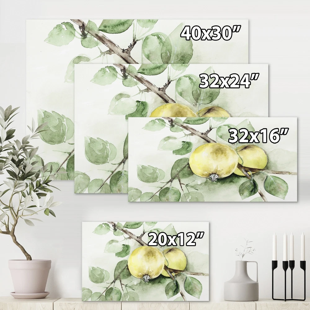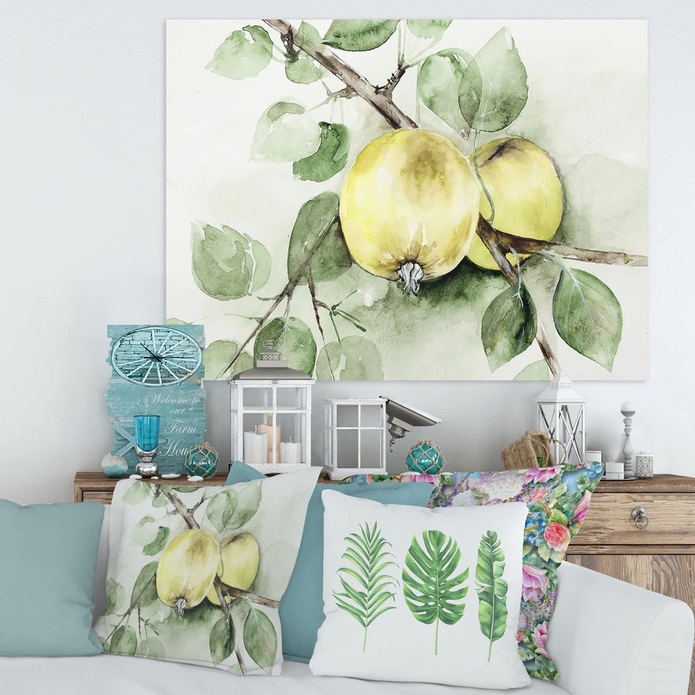 This beautiful Farmhouse Canvas Art is printed using the highest quality fade resistant ink on canvas. Every one of our fine art giclee canvas prints is printed on premium quality cotton canvas, using the finest quality inks which will not fade over time. Each giclee print is stretched tightly over a 1 inch wood sub frame for small size prints or a 1.5 inch wood sub frame for large size prints (40x30 36x36 ...) ensuring the canvas is taught and does not buckle. This canvas art print is gallery-wrapped (the design continues on the sides) , giving it a real art gallery feel. All of our canvas prints are carefully packaged with plastic protection, fragile labeling and sturdy boxes to ensure a safe delivery. Every canvas print arrives ready to hang on the wall, with the hanging kits included.- Free Shipping Over $49.99* Details Designart "Vintage Green Appels" Farmhouse Canvas Wall Art Print Product Description: This beautiful Farmhouse Canvas Art is printed using the highest quality fade resistant ink on canvas. Every one of our fine art giclee canvas prints is printed on premium quality cotton canvas, using the finest quality inks which will not fade over time. Each giclee print is stretched tightly over a 1 inch wood sub frame for small size prints or a 1.5 inch wood sub frame for large size prints (40x30 36x36 ...) ensuring the canvas is taught and does not buckle. This canvas art print is gallery-wrapped (the design continues on the sides) , giving it a real art gallery feel. All of our canvas prints are carefully packaged with plastic protection, fragile labeling and sturdy boxes to ensure a safe delivery. Every canvas print arrives ready to hang on the wall, with the hanging kits included. - Style Farmhouse, - Subject Food & Beverage, Food & Beverage - Color Green,Yellow - This canvas giclee print is gallery-wrapped (the design continues on the sides) , giving it a real art gallery feel. - Premium quality cotton canvas. - Arrives ready to hang on the wall - Easy to Hang