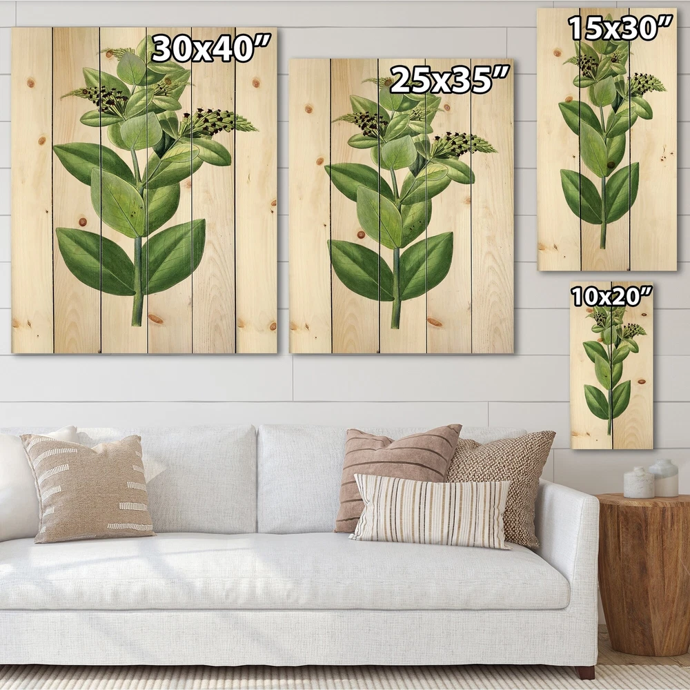 Alas, a modern take on wood wall art. Once typically a wall art piece found only in rustic or farmhouse style decor settings, this Floral wood wall art will easily fit into even the most contemporary of designs.Using the highest quality 6 Color Canon UV Ink, this Traditional wood wall art incorporates several aspects of fine design into one stunning piece. With its slightly visible wood grain appearing through the colors and sleekly finished edges, it is a wonderful choice for any room in your home or office, being it a traditional or modern space. As each piece of wood has natural grain differences from the next, each of these wood wall arts is a truly unique addition to your space.Each Wood wall art is 100% handmade in Canada on Natural pine wood, using the highest quality ink which will Free Shipping Over $49.99* Details Designart 'Vintage Green Leaves Plants VI' Traditional Print on Natural Pine Product Description: Alas, a modern take on wood wall art. Once typically a wall art piece found only in rustic or farmhouse style decor settings, this Floral wood wall art will easily fit into even the most contemporary of designs. Using the highest quality 6 Color Canon UV Ink, this Traditional wood wall art incorporates several aspects of fine design into one stunning piece. With its slightly visible wood grain appearing through the colors and sleekly finished edges, it is a wonderful choice for any room in your home or office, being it a traditional or modern space. As each piece of wood has natural grain differences from the next, each of these wood wall arts is a truly unique addition to your space. Each Wood wall art is 100% handmade in Canada on Natural pine wood, using the highest quality ink which will not fade over time. Available in Differents sizes - OrientationVertical - SubjectFloral TypeWood Wall Art, Fine Art, Wood Fine Art, Print on Plaque - Arrives ready to hang on the wall with hanging kit included - MaterialMade with 100% natural pine wood - StyleTraditional - Number of Pieces1 - ColorGreen