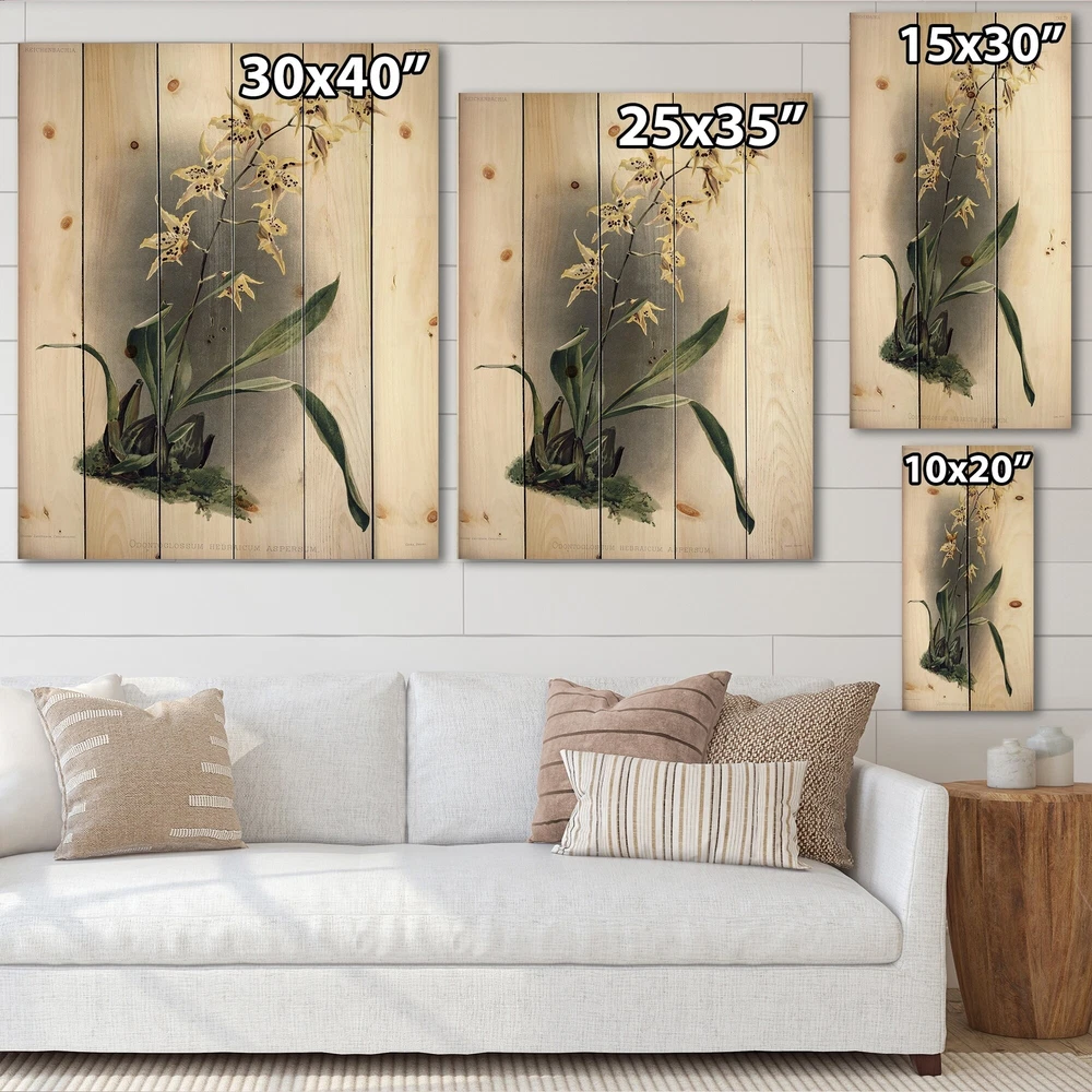 Alas, a modern take on wood wall art. Once typically a wall art piece found only in rustic or farmhouse style decor settings, this Floral wood wall art will easily fit into even the most contemporary of designs.Using the highest quality 6 Color Canon UV Ink, this Traditional wood wall art incorporates several aspects of fine design into one stunning piece. With its slightly visible wood grain appearing through the colors and sleekly finished edges, it is a wonderful choice for any room in your home or office, being it a traditional or modern space. As each piece of wood has natural grain differences from the next, each of these wood wall arts is a truly unique addition to your space.Each Wood wall art is 100% handmade in Canada on Natural pine wood, using the highest quality ink which will Free Shipping Over $49.99* Details Designart 'Vintage Orchid Flower' Traditional Print on Natural Pine Wood Product Description: Alas, a modern take on wood wall art. Once typically a wall art piece found only in rustic or farmhouse style decor settings, this Floral wood wall art will easily fit into even the most contemporary of designs. Using the highest quality 6 Color Canon UV Ink, this Traditional wood wall art incorporates several aspects of fine design into one stunning piece. With its slightly visible wood grain appearing through the colors and sleekly finished edges, it is a wonderful choice for any room in your home or office, being it a traditional or modern space. As each piece of wood has natural grain differences from the next, each of these wood wall arts is a truly unique addition to your space. Each Wood wall art is 100% handmade in Canada on Natural pine wood, using the highest quality ink which will not fade over time. Available in Differents sizes - OrientationVertical - SubjectFloral TypeWood Wall Art, Fine Art, Wood Fine Art, Print on Plaque - Arrives ready to hang on the wall with hanging kit included - MaterialMade with 100% natural pine wood - StyleTraditional - Number of Pieces1 - ColorGreen