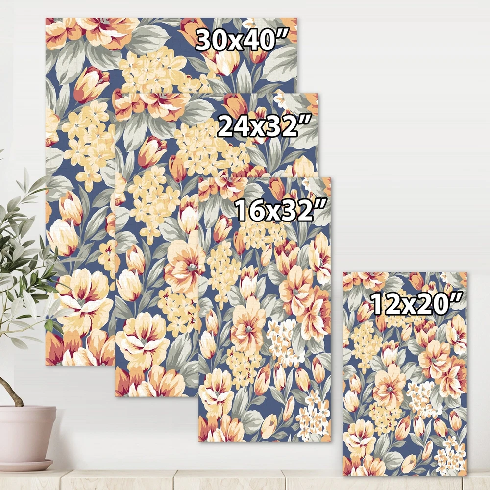 This beautiful Traditional Canvas Art is printed using the highest quality fade resistant ink on canvas. Every one of our fine art giclee canvas prints is printed on premium quality cotton canvas, using the finest quality inks which will not fade over time. Each giclee print is stretched tightly over a 1 inch wood sub frame for small size prints or a 1.5 inch wood sub frame for large size prints (40x30 36x36 ...) ensuring the canvas is taught and does not buckle. This canvas art print is gallery-wrapped (the design continues on the sides) , giving it a real art gallery feel. All of our canvas prints are carefully packaged with plastic protection, fragile labeling and sturdy boxes to ensure a safe delivery. Every canvas print arrives ready to hang on the wall, with the hanging kits Free Shipping Over $49.99* Details Designart "Vintage Yellow and Orange Flowers" Traditional Canvas Wall Art Print Product Description: This beautiful Traditional Canvas Art is printed using the highest quality fade resistant ink on canvas. Every one of our fine art giclee canvas prints is printed on premium quality cotton canvas, using the finest quality inks which will not fade over time. Each giclee print is stretched tightly over a 1 inch wood sub frame for small size prints or a 1.5 inch wood sub frame for large size prints (40x30 36x36 ...) ensuring the canvas is taught and does not buckle. This canvas art print is gallery-wrapped (the design continues on the sides) , giving it a real art gallery feel. All of our canvas prints are carefully packaged with plastic protection, fragile labeling and sturdy boxes to ensure a safe delivery. Every canvas print arrives ready to hang on the wall, with the hanging kits included. - Style Traditional,Farmhouse - Subject Floral, Country Charm - Color Beige, - This canvas giclee print is gallery-wrapped (the design continues on the sides) , giving it a real art gallery feel. - Premium quality cotton canvas. - Arrives ready to hang on the wall - Easy to Hang