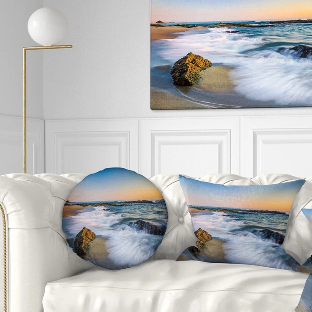 Decorative Throw Pillows for Couch Bed Sofa with Zip CoversAn easy, fun way to add a pop of color or bring new life to any room in your home or office is with these beautiful Sea & Shore throw pillows. Dress up your bed, sofa or lounger with this decorative design art pillows. Perfect as Coastal bedroom décor, lounge décor Beach living room décor. It adds a fun accent to any room. Throw pillows really do work wonders: they can transform any room from uninviting discomfort to warm and welcoming. And they really do go almost anywhere - arrange a couple on the couch or sofa, place one in your overstuffed chair for extra coziness, toss a couple on the bed and prop yourself up for a great read.These Sea & Shore pillow is printed using High Color Density Italian inks to create a vibrantly Free Shipping Over $49.99* Details Designart 'White Waves Crashing on Rocks' Seascape Throw Pillow Product Description: Decorative Throw Pillows for Couch Bed Sofa with Zip Covers An easy, fun way to add a pop of color or bring new life to any room in your home or office is with these beautiful Sea & Shore throw pillows. Dress up your bed, sofa or lounger with this decorative design art pillows. Perfect as Coastal bedroom décor, lounge décor Beach living room décor. It adds a fun accent to any room. Throw pillows really do work wondersthey can transform any room from uninviting discomfort to warm and welcoming. And they really do go almost anywhere - arrange a couple on the couch or sofa, place one in your overstuffed chair for extra coziness, toss a couple on the bed and prop yourself up for a great read. These Sea & Shore pillow is printed using High Color Density Italian inks to create a vibrantly colored, sharp artwork. Features: Perfect accent to any furniture piece Basic shapes with a modern graphic design twist Printed on 100% light weight polyester Cushion filled with 100% polyester fill Wrinkle resistant fabric Zip Closure so you can remove the pillow from its' cover Down-like comfort - Odorless 100% Hypoallergenic Machine Wash Cold Separately, Gently Cycle Only, No bleach, hang to dry Print on Demand with High Density Italian Ink Available in Several sizes Attribute :Coastal, Beach, Tropical Subject Sea & Shore, Nautical, Landscapes