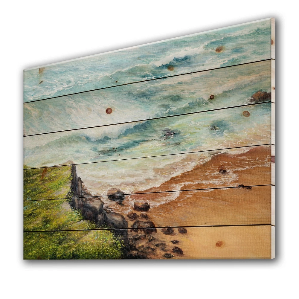 Alas, a modern take on wood wall art. Once typically a wall art piece found only in rustic or farmhouse style decor settings, this Beach wood wall art will easily fit into even the most contemporary of designs.Using the highest quality 6 Color Canon UV Ink, this Nautical & Coastal wood wall art incorporates several aspects of fine design into one stunning piece. With its slightly visible wood grain appearing through the colors and sleekly finished edges, it is a wonderful choice for any room in your home or office, being it a traditional or modern space. As each piece of wood has natural grain differences from the next, each of these wood wall arts is a truly unique addition to your space.Each Wood wall art is 100% handmade in Canada on Natural pine wood, using the highest quality ink Free Shipping Over $49.99* Details Designart 'Wild Blue Ocean Waves IV' Nautical & Coastal Print on Natural Pine Product Description: Alas, a modern take on wood wall art. Once typically a wall art piece found only in rustic or farmhouse style decor settings, this Beach wood wall art will easily fit into even the most contemporary of designs. Using the highest quality 6 Color Canon UV Ink, this Nautical & Coastal wood wall art incorporates several aspects of fine design into one stunning piece. With its slightly visible wood grain appearing through the colors and sleekly finished edges, it is a wonderful choice for any room in your home or office, being it a traditional or modern space. As each piece of wood has natural grain differences from the next, each of these wood wall arts is a truly unique addition to your space. Each Wood wall art is 100% handmade in Canada on Natural pine wood, using the highest quality ink which will not fade over time. Available in Differents sizes - OrientationHorizontal - SubjectBeach TypeWood Wall Art, Fine Art, Wood Fine Art, Print on Plaque - Arrives ready to hang on the wall with hanging kit included - MaterialMade with 100% natural pine wood - StyleNautical & Coastal - Number of Pieces1 - ColorBlue