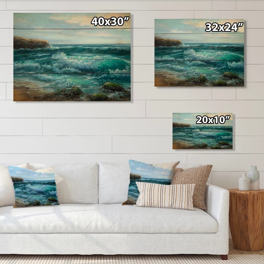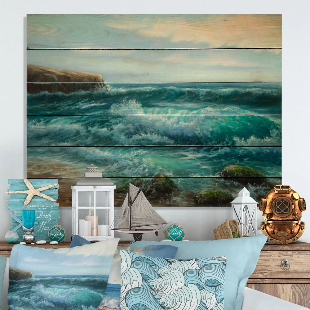 Alas, a modern take on wood wall art. Once typically a wall art piece found only in rustic or farmhouse style decor settings, this sea & Shore wood wall art will easily fit into even the most contemporary of designs.Using the highest quality 6 Color Canon UV Ink, this Nautical & Coastal wood wall art incorporates several aspects of fine design into one stunning piece. With its slightly visible wood grain appearing through the colors and sleekly finished edges, it is a wonderful choice for any room in your home or office, being it a traditional or modern space. As each piece of wood has natural grain differences from the next, each of these wood wall arts is a truly unique addition to your space.Each Wood wall art is 100% handmade in Canada on Natural pine wood, using the highest quality Free Shipping Over $49.99* Details Designart 'Wild Blue Ocean Waves XIII' Nautical & Coastal Wood Wall Art - Product Description: Alas, a modern take on wood wall art. Once typically a wall art piece found only in rustic or farmhouse style decor settings, this sea & Shore wood wall art will easily fit into even the most contemporary of designs. Using the highest quality 6 Color Canon UV Ink, this Nautical & Coastal wood wall art incorporates several aspects of fine design into one stunning piece. With its slightly visible wood grain appearing through the colors and sleekly finished edges, it is a wonderful choice for any room in your home or office, being it a traditional or modern space. As each piece of wood has natural grain differences from the next, each of these wood wall arts is a truly unique addition to your space. Each Wood wall art is 100% handmade in Canada on Natural pine wood, using the highest quality ink which will not fade over time. Available in Differents sizes - OrientationHorizontal - Subjectsea & Shore TypeWood Wall Art, Fine Art, Wood Fine Art, Print on Plaque - Arrives ready to hang on the wall with hanging kit included - MaterialMade with 100% natural pine wood - StyleNautical & Coastal - Number of Pieces1 - ColorBlue