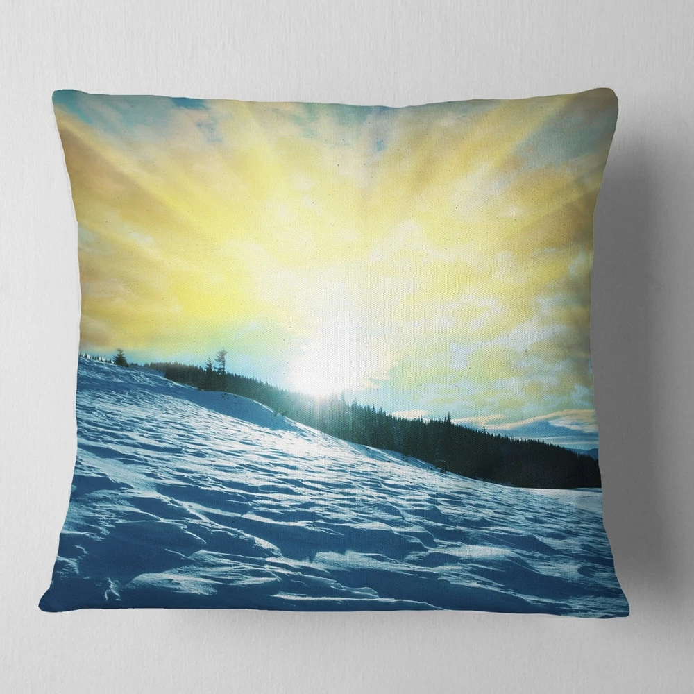 Decorative Throw Pillows for Couch Bed Sofa with Zip CoversAn easy, fun way to add a pop of color or bring new life to any room in your home or office is with these beautiful Sea & Shore throw pillows. Dress up your bed, sofa or lounger with this decorative design art pillows. Perfect as Coastal bedroom décor, lounge décor Beach living room décor. It adds a fun accent to any room. Throw pillows really do work wonders: they can transform any room from uninviting discomfort to warm and welcoming. And they really do go almost anywhere - arrange a couple on the couch or sofa, place one in your overstuffed chair for extra coziness, toss a couple on the bed and prop yourself up for a great read.These Sea & Shore pillow is printed using High Color Density Italian inks to create a vibrantly Free Shipping Over $49.99* Details Designart 'Winter with Blue Waters At Sunset' Seashore Throw Pillow Product Description: Decorative Throw Pillows for Couch Bed Sofa with Zip Covers An easy, fun way to add a pop of color or bring new life to any room in your home or office is with these beautiful Sea & Shore throw pillows. Dress up your bed, sofa or lounger with this decorative design art pillows. Perfect as Coastal bedroom décor, lounge décor Beach living room décor. It adds a fun accent to any room. Throw pillows really do work wondersthey can transform any room from uninviting discomfort to warm and welcoming. And they really do go almost anywhere - arrange a couple on the couch or sofa, place one in your overstuffed chair for extra coziness, toss a couple on the bed and prop yourself up for a great read. These Sea & Shore pillow is printed using High Color Density Italian inks to create a vibrantly colored, sharp artwork. Features: Perfect accent to any furniture piece Basic shapes with a modern graphic design twist Printed on 100% light weight polyester Cushion filled with 100% polyester fill Wrinkle resistant fabric Zip Closure so you can remove the pillow from its' cover Down-like comfort - Odorless 100% Hypoallergenic Machine Wash Cold Separately, Gently Cycle Only, No bleach, hang to dry Print on Demand with High Density Italian Ink Available in Several sizes Attribute :Coastal, Beach, Tropical Subject Sea & Shore, Nautical, Landscapes