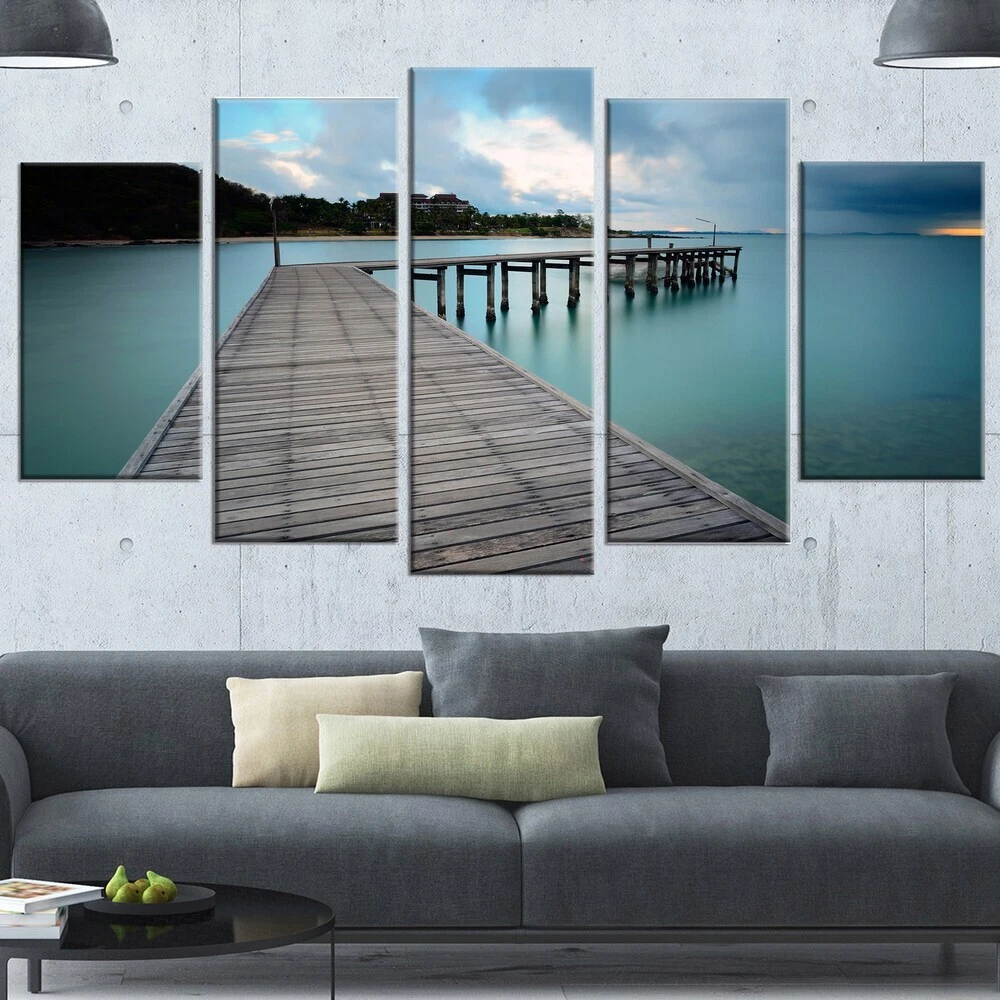This beautiful Cityscapes Canvas Art is printed using the highest quality fade resistant ink on canvas. Every one of our fine art giclee canvas prints is printed on premium quality cotton canvas, using the finest quality inks which will not fade over time. Each giclee print is stretched tightly over a 1 inch wood sub frame ensuring the canvas is taught and does not buckle. This canvas art print is gallery-wrapped (the design continues on the sides) , giving it a real art gallery feel. All of our canvas prints are carefully packaged with plastic protection, fragile labeling and sturdy boxes to ensure a safe delivery. Every canvas print arrives ready to hang on the wall, with the hanging kits includedShape: RectangleOrientation: HorizontalSubject: Photography, Architecture, CityscapesStyle: Free Shipping Over $49.99* Details Designart "Wooden Bridge to Calm Ocean" Modern Bridge Canvas Wall Art Product Description: This beautiful Cityscapes Canvas Art is printed using the highest quality fade resistant ink on canvas. Every one of our fine art giclee canvas prints is printed on premium quality cotton canvas, using the finest quality inks which will not fade over time. Each giclee print is stretched tightly over a 1 inch wood sub frame ensuring the canvas is taught and does not buckle. This canvas art print is gallery-wrapped (the design continues on the sides) , giving it a real art gallery feel. All of our canvas prints are carefully packaged with plastic protection, fragile labeling and sturdy boxes to ensure a safe delivery. Every canvas print arrives ready to hang on the wall, with the hanging kits included ShapeRectangle OrientationHorizontal SubjectPhotography, Architecture, Cityscapes StyleContemporary, Fine Art Giclee, Modern SizeOversized
