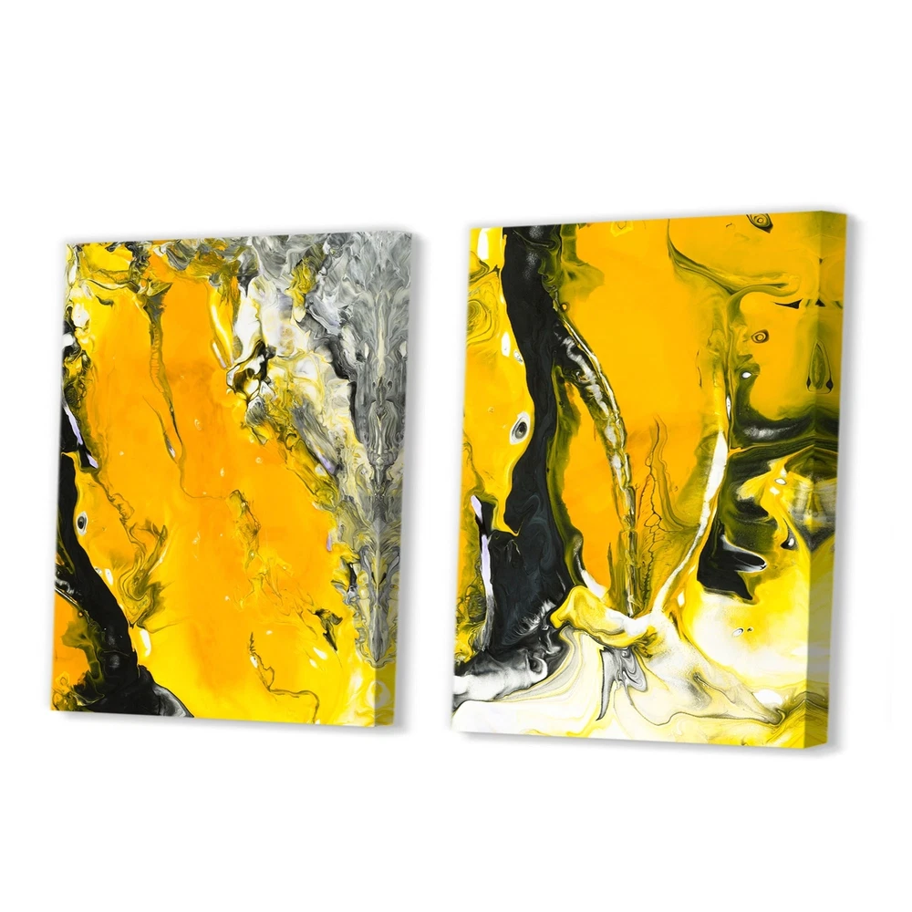 This Abstract Collage is a Collection of 2 Canvas Art printed using the highest quality fade resistant ink on canvas. Every one of our fine art giclee canvas prints is printed on premium quality cotton canvas, using the finest quality inks which will not fade over time. Each giclee print is stretched tightly over a 1 inch wood sub frame ensuring the canvas is taught and does not buckle. This canvas art print is gallery-wrapped (the design continues on the sides) , giving it a real art gallery feel. All of our canvas prints are carefully packaged with plastic protection, fragile labeling and sturdy boxes to ensure a safe delivery. Every canvas print arrives ready to hang on the wall, with the hanging kits included.- Set Include: 12"x20" / 16"x32" / 24"x36" / 30"x40"- Overall Dimensions: Free Shipping Over $49.99* Details Designart 'Yellow Black And White Liquid Art VI' Modern Art Set of 2 Pieces Product Description: This Abstract Collage is a Collection of 2 Canvas Art printed using the highest quality fade resistant ink on canvas. Every one of our fine art giclee canvas prints is printed on premium quality cotton canvas, using the finest quality inks which will not fade over time. Each giclee print is stretched tightly over a 1 inch wood sub frame ensuring the canvas is taught and does not buckle. This canvas art print is gallery-wrapped (the design continues on the sides) , giving it a real art gallery feel. All of our canvas prints are carefully packaged with plastic protection, fragile labeling and sturdy boxes to ensure a safe delivery. Every canvas print arrives ready to hang on the wall, with the hanging kits included. - Set Include12"x20" / 16"x32" / 24"x36" / 30"x40" - Overall Dimensions24"x20" / 32"x32" / 48"x36" / 60"x40" - Style Modern & Contemporary - Subject Abstract - Color Black; Yellow - This canvas giclee print is gallery-wrapped (the design continues on the sides) , giving it a real art gallery feel. - Premium quality cotton canvas. - Arrives ready to hang on the wall - Easy to Hang
