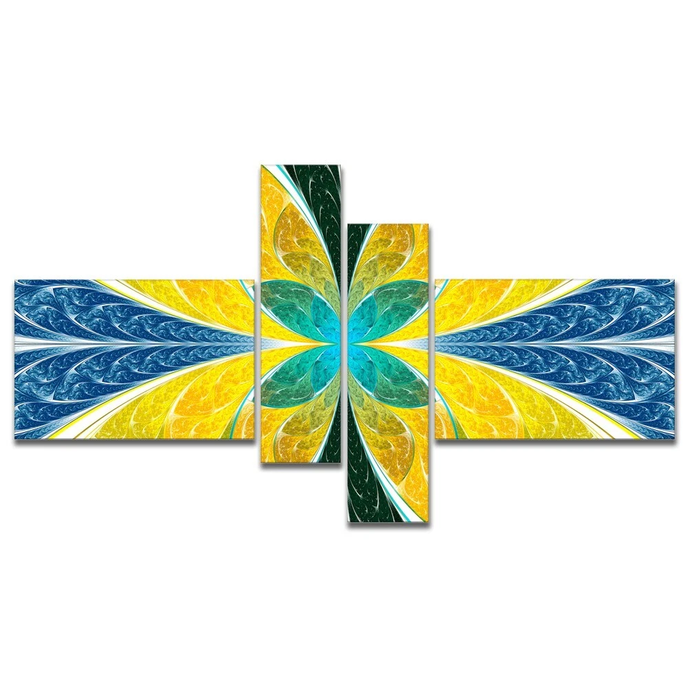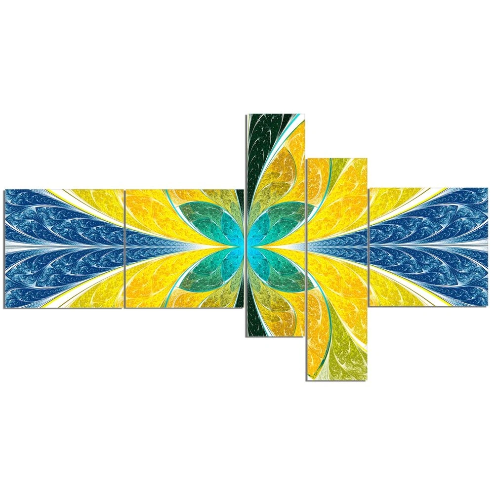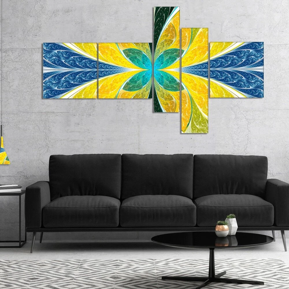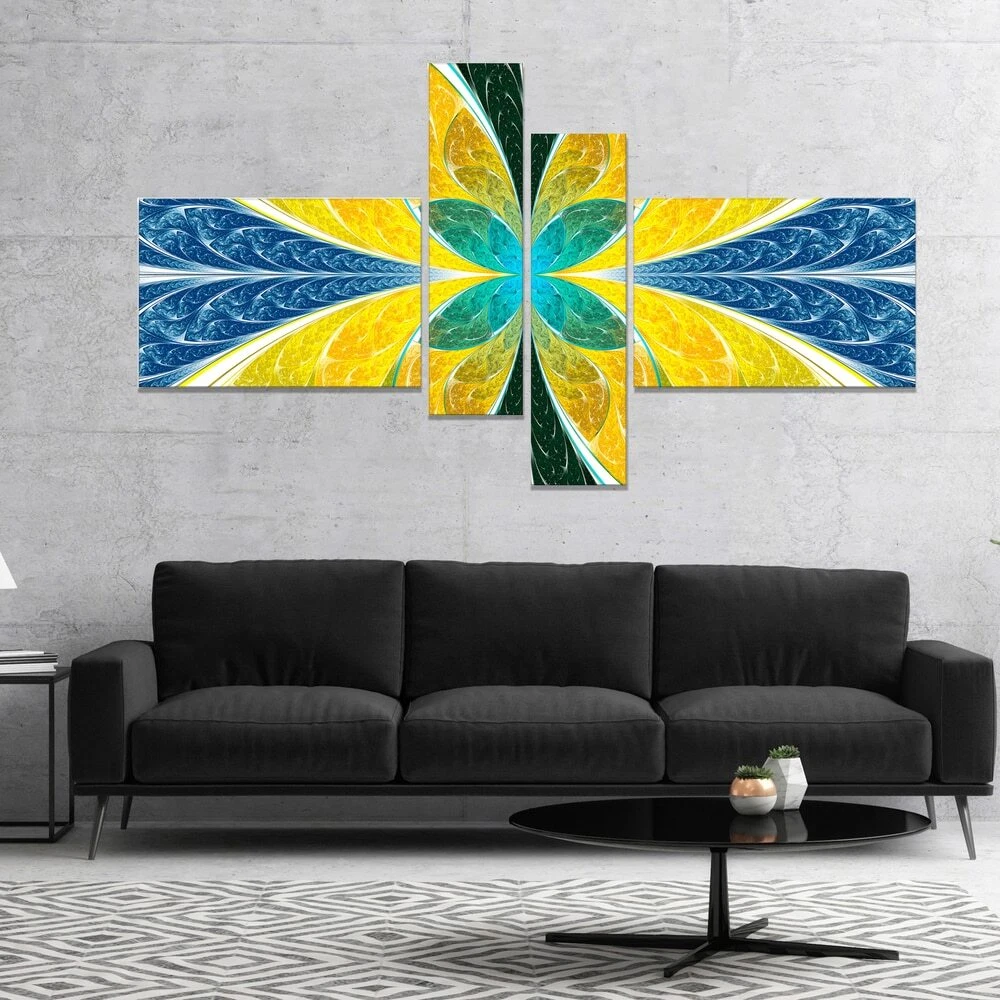This beautiful Abstract Canvas Art is printed using the highest quality fade resistant ink on canvas. Every one of our fine art giclee canvas prints is printed on premium quality cotton canvas, using the finest quality inks which will not fade over time. Each giclee print is stretched tightly over a 1 inch wood sub frame ensuring the canvas is taught and does not buckle. This canvas art print is gallery-wrapped (the design continues on the sides) , giving it a real art gallery feel. All of our canvas prints are carefully packaged in inflated cushion wrap, fragile labeling and sturdy boxes to ensure a safe delivery. Every canvas print arrives ready to hang on the wall, with the hanging kits included. Shape: RectangleOrientation: HorizontalSubject: AbstractStyle: Contemporary, Fine Art Free Shipping Over $49.99* Details Designart "Yellow Fractal Stained Glass" Abstract Wall Art Canvas Product Description: This beautiful Abstract Canvas Art is printed using the highest quality fade resistant ink on canvas. Every one of our fine art giclee canvas prints is printed on premium quality cotton canvas, using the finest quality inks which will not fade over time. Each giclee print is stretched tightly over a 1 inch wood sub frame ensuring the canvas is taught and does not buckle. This canvas art print is gallery-wrapped (the design continues on the sides) , giving it a real art gallery feel. All of our canvas prints are carefully packaged in inflated cushion wrap, fragile labeling and sturdy boxes to ensure a safe delivery. Every canvas print arrives ready to hang on the wall, with the hanging kits included. ShapeRectangle OrientationHorizontal SubjectAbstract StyleContemporary, Fine Art Giclee, Modern Size32 inches high x 60 inches wide x 1 inch long