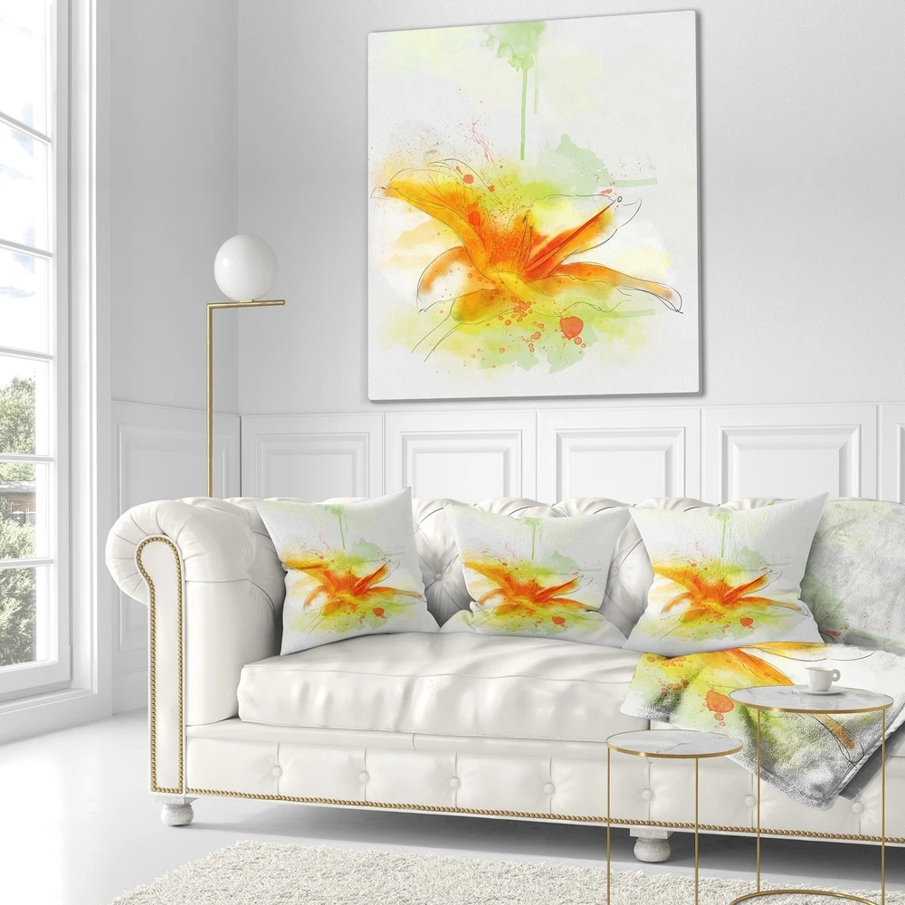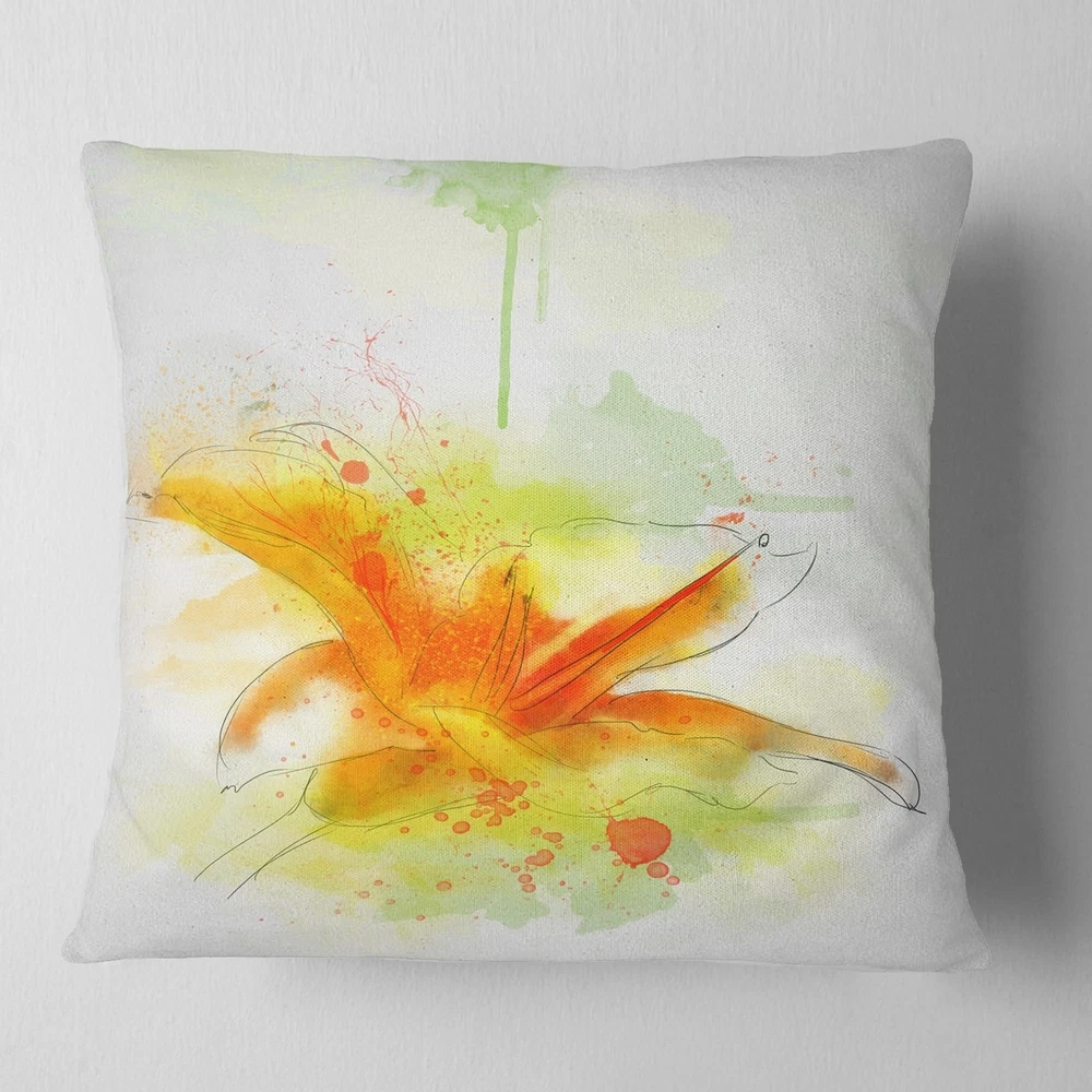 Decorative Throw Pillows for Couch Bed Sofa with Zip CoversAn easy, fun way to add a pop of color or bring new life to any room in your home or office is with these beautiful Floral throw pillows. Dress up your bed, sofa or lounger with this decorative design art pillows. Perfect as Farmhouse bedroom décor, lounge décor Traditional living room décor. It adds a fun accent to any room. Throw pillows really do work wonders: they can transform any room from uninviting discomfort to warm and welcoming. And they really do go almost anywhere - arrange a couple on the couch or sofa, place one in your overstuffed chair for extra coziness, toss a couple on the bed and prop yourself up for a great read.These Floral pillow is printed using High Color Density Italian inks to create a vibrantly colored, Free Shipping Over $49.99* Details Designart 'Yellow Red Flower with Color Splashes' Floral Throw Pillow Product Description: Decorative Throw Pillows for Couch Bed Sofa with Zip Covers An easy, fun way to add a pop of color or bring new life to any room in your home or office is with these beautiful Floral throw pillows. Dress up your bed, sofa or lounger with this decorative design art pillows. Perfect as Farmhouse bedroom décor, lounge décor Traditional living room décor. It adds a fun accent to any room. Throw pillows really do work wondersthey can transform any room from uninviting discomfort to warm and welcoming. And they really do go almost anywhere - arrange a couple on the couch or sofa, place one in your overstuffed chair for extra coziness, toss a couple on the bed and prop yourself up for a great read. These Floral pillow is printed using High Color Density Italian inks to create a vibrantly colored, sharp artwork. Features: Perfect accent to any furniture piece Basic shapes with a modern graphic design twist Printed on 100% light weight polyester Cushion filled with 100% polyester fill Wrinkle resistant fabric Zip Closure so you can remove the pillow from its' cover Down-like comfort - Odorless 100% Hypoallergenic Machine Wash Cold Separately, Gently Cycle Only, No bleach, hang to dry Print on Demand with High Density Italian Ink Available in Several sizes Attribute :Farmhouse, Traditional, Modern Subject Floral, Landscapes, Country Charm