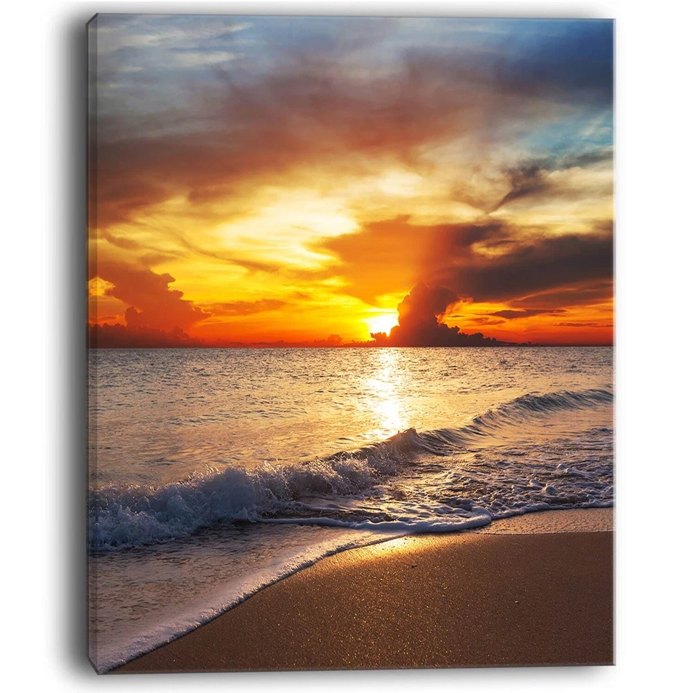 This beautiful Sea & Shore Canvas Art is printed using the highest quality fade resistant ink on canvas. Every one of our fine art giclee canvas prints is printed on premium quality cotton canvas, using the finest quality inks which will not fade over time. Each giclee print is stretched tightly over a 1 inch wood sub frame for small size prints or a 1.5 inch wood sub frame for large size prints (40x30 60x28 ...) ensuring the canvas is taught and does not buckle. This canvas art print is gallery-wrapped (the design continues on the sides) , giving it a real art gallery feel. All of our canvas prints are carefully packaged with plastic protection, fragile labeling and sturdy boxes to ensure a safe delivery. Every canvas print arrives ready to hang on the wall, with the hanging kits Free Shipping Over $49.99* Details Designart "Yellow Sunset over Gloomy Beach" Modern Beach Canvas Art Print Product Description: This beautiful Sea & Shore Canvas Art is printed using the highest quality fade resistant ink on canvas. Every one of our fine art giclee canvas prints is printed on premium quality cotton canvas, using the finest quality inks which will not fade over time. Each giclee print is stretched tightly over a 1 inch wood sub frame for small size prints or a 1.5 inch wood sub frame for large size prints (40x30 60x28 ...) ensuring the canvas is taught and does not buckle. This canvas art print is gallery-wrapped (the design continues on the sides) , giving it a real art gallery feel. All of our canvas prints are carefully packaged with plastic protection, fragile labeling and sturdy boxes to ensure a safe delivery. Every canvas print arrives ready to hang on the wall, with the hanging kits included. - Style Nautical & Coastal - Subject Sea & Shore, Nautical - Color Yellow - This canvas giclee print is gallery-wrapped (the design continues on the sides) , giving it a real art gallery feel. - Premium quality cotton canvas. - Arrives ready to hang on the wall - Easy to Hang