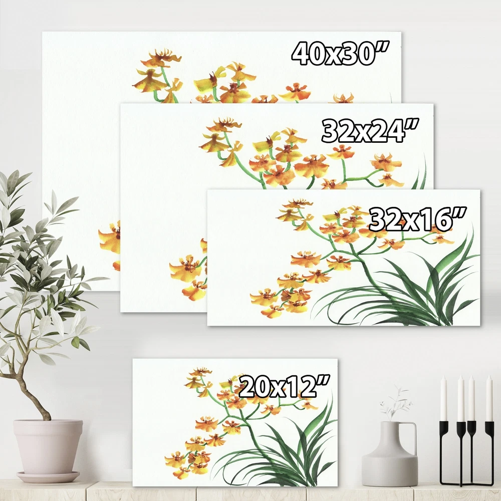 This beautiful Traditional Canvas Art is printed using the highest quality fade resistant ink on canvas. Every one of our fine art giclee canvas prints is printed on premium quality cotton canvas, using the finest quality inks which will not fade over time. Each giclee print is stretched tightly over a 1 inch wood sub frame for small size prints or a 1.5 inch wood sub frame for large size prints (40x30 36x36 ...) ensuring the canvas is taught and does not buckle. This canvas art print is gallery-wrapped (the design continues on the sides) , giving it a real art gallery feel. All of our canvas prints are carefully packaged with plastic protection, fragile labeling and sturdy boxes to ensure a safe delivery. Every canvas print arrives ready to hang on the wall, with the hanging kits Free Shipping Over $49.99* Details Designart "Yellow VIntage Orchids" Traditional Canvas Wall Art Print Product Description: This beautiful Traditional Canvas Art is printed using the highest quality fade resistant ink on canvas. Every one of our fine art giclee canvas prints is printed on premium quality cotton canvas, using the finest quality inks which will not fade over time. Each giclee print is stretched tightly over a 1 inch wood sub frame for small size prints or a 1.5 inch wood sub frame for large size prints (40x30 36x36 ...) ensuring the canvas is taught and does not buckle. This canvas art print is gallery-wrapped (the design continues on the sides) , giving it a real art gallery feel. All of our canvas prints are carefully packaged with plastic protection, fragile labeling and sturdy boxes to ensure a safe delivery. Every canvas print arrives ready to hang on the wall, with the hanging kits included. - Style Traditional,Farmhouse - Subject Floral, - Color Yellow, - This canvas giclee print is gallery-wrapped (the design continues on the sides) , giving it a real art gallery feel. - Premium quality cotton canvas. - Arrives ready to hang on the wall - Easy to Hang